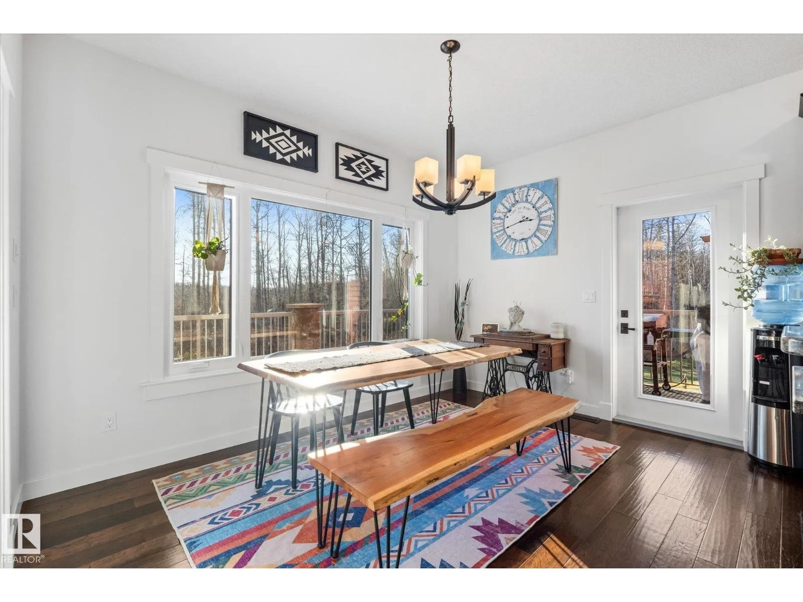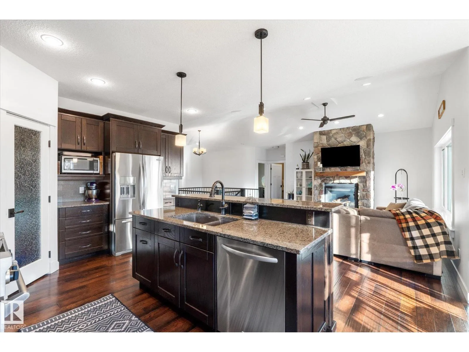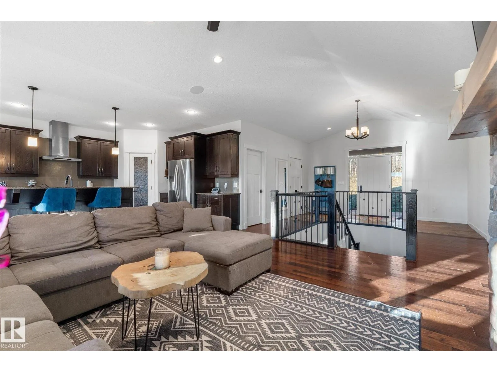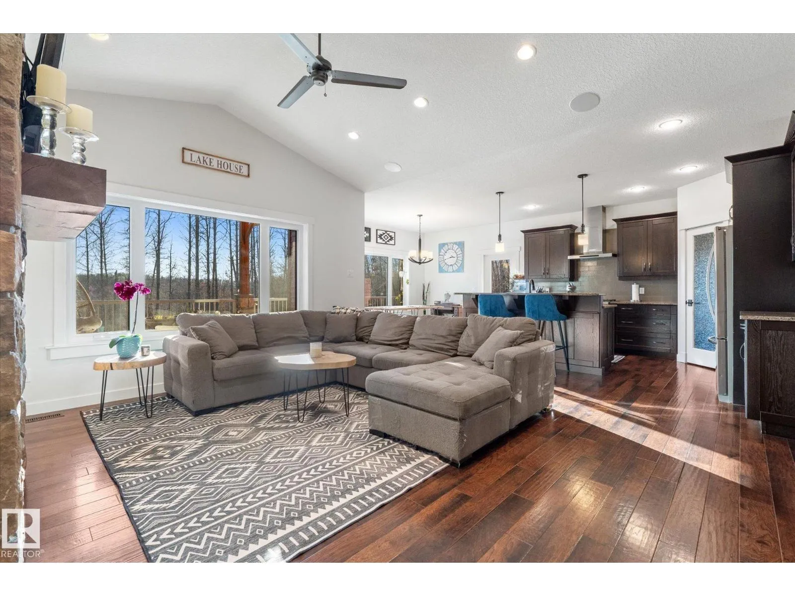 Welcome to year-round lake living on beautiful Mayatan Lake! This custom walkout bungalow offers over 3,000 sq ft of finished space with private direct lake accessâperfect for fishing, kayaking, paddle-boarding, & embracing nature steps from your back door. Enjoy a stunning vaulted covered deck with timber beams & stone pillars overlooking the waterâan ideal spot for morning coffee, peaceful evenings, & gathering with friends. Inside, soaring ceilings, triple-pane windows, a floor-to-ceiling stone gas fireplace, granite counters, engineered hardwood, and premium appliances create a warm and luxurious atmosphere. With 2 bedrooms up & 2 down, there's plenty of room for family and guests. The walkout level features a stylish wet bar and large windows framing lake views. Th oversized heated triple garage includes a floor drain & hot and cold water lines. All this tucked on 1.6 acres, just 25 min to Stony Plain and a comfortable commute to Edmonton. Live the lake lifestyle without sacrificing convenience! (id:27476)