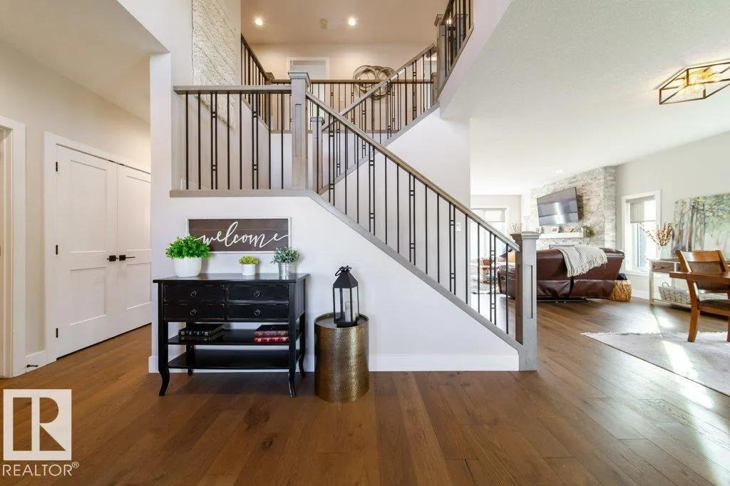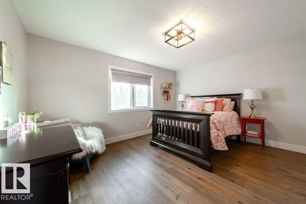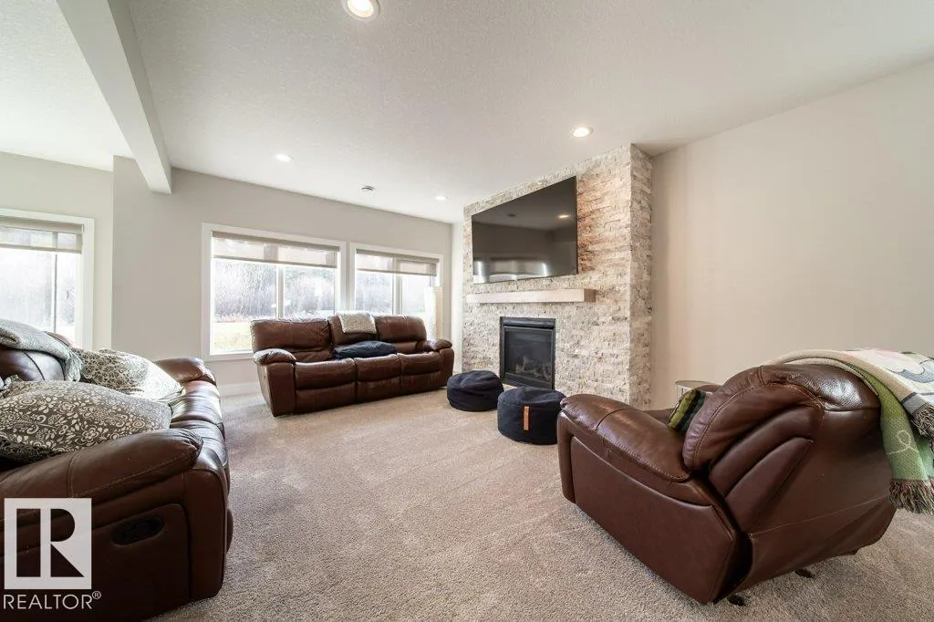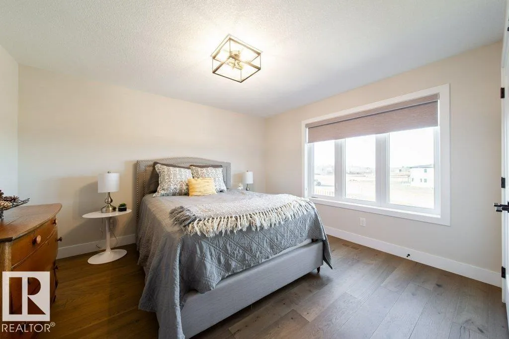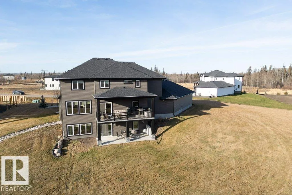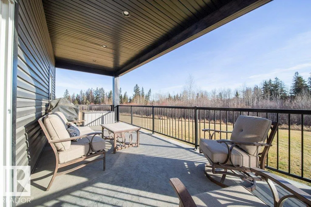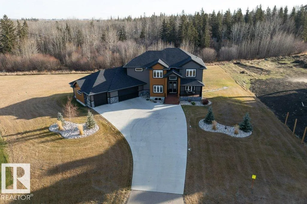 10 minutes to Edmonton. Spring Meadow Estates. Shows like new! Close to golf course. Modern Luxury Acreage on 1 acre lot with full city service. Backing southeast and onto trees, with plenty of sunshine and space. Gorgeous 2 story 3,107sf plus 1,358sf fully finished walkout basement. 4+1 Bedrooms and 5 Baths. Central Air Conditioned. Triple garage that can park 4 cars, fully heated and with epoxy flooring and drain. Professionally finished from top to bottom. Exquisite entry way next to Den. Gorgeous upgraded hardwood and marble tile flooring. Quartz countertops throughout. Huge gourmet island kitchen with top of the line appliances, and walk-in pantry room. Great Room with fireplace. Eating nook open to Covered deck, with gas line. Upstairs with private Master suite and walk-in dressing room. Second bedroom with full ensuite bath, next to two more spacious Bedroom. Large laundry room with cabinets and sink. Basement fully finished with fireplace, Recreational Room and a Gym. Loads of storage and closets. (id:27476)