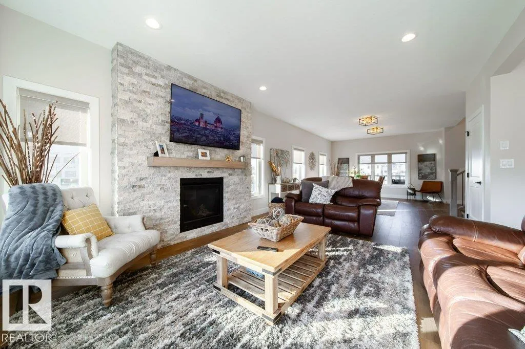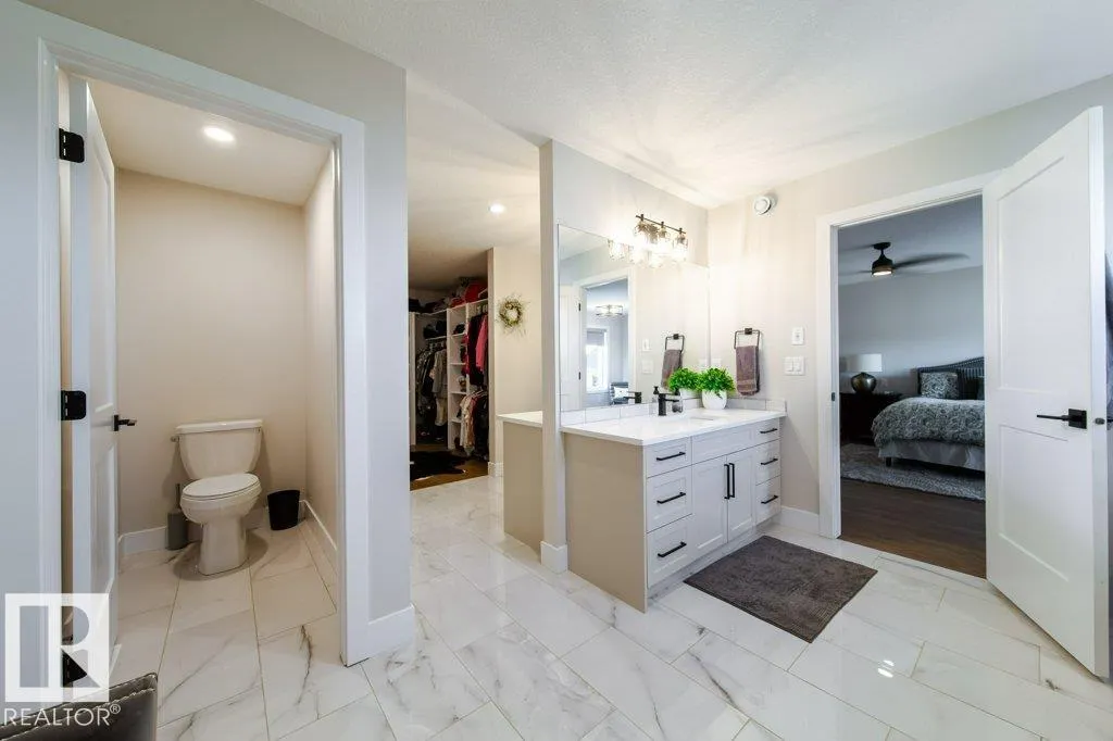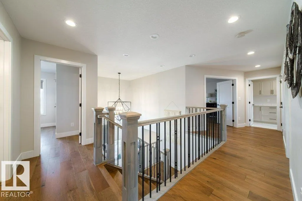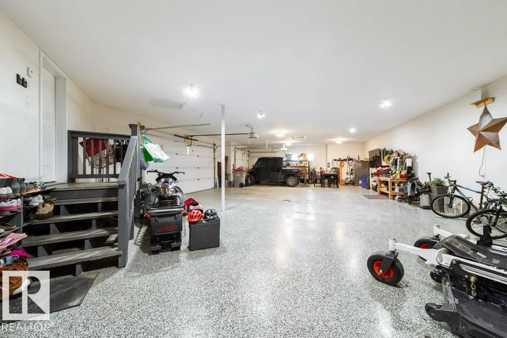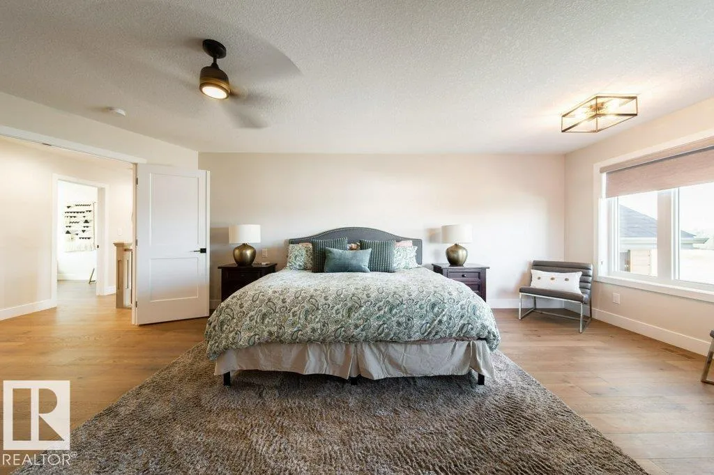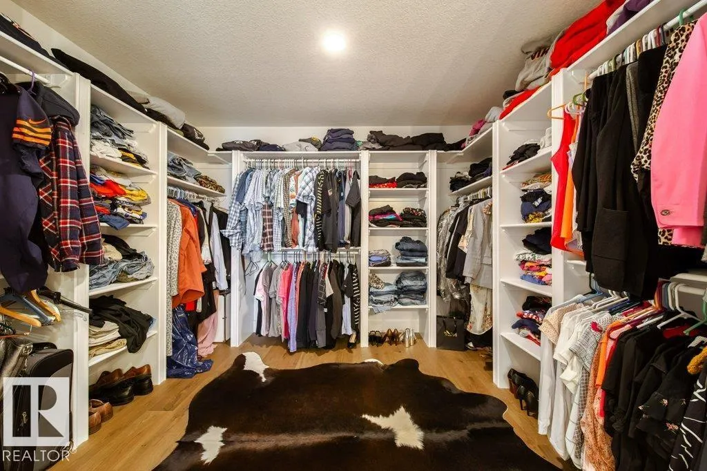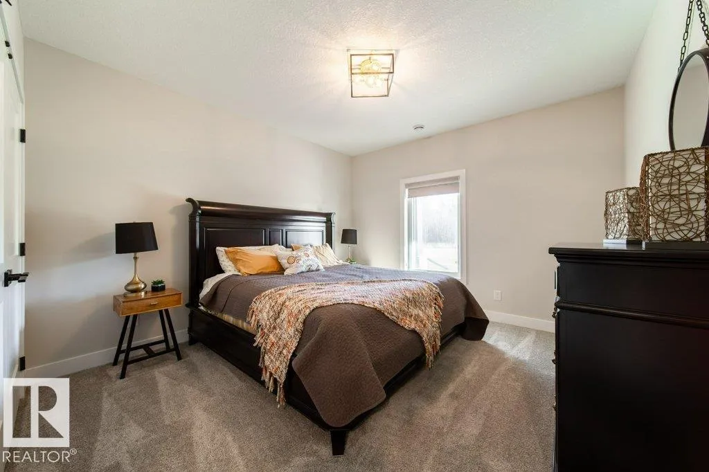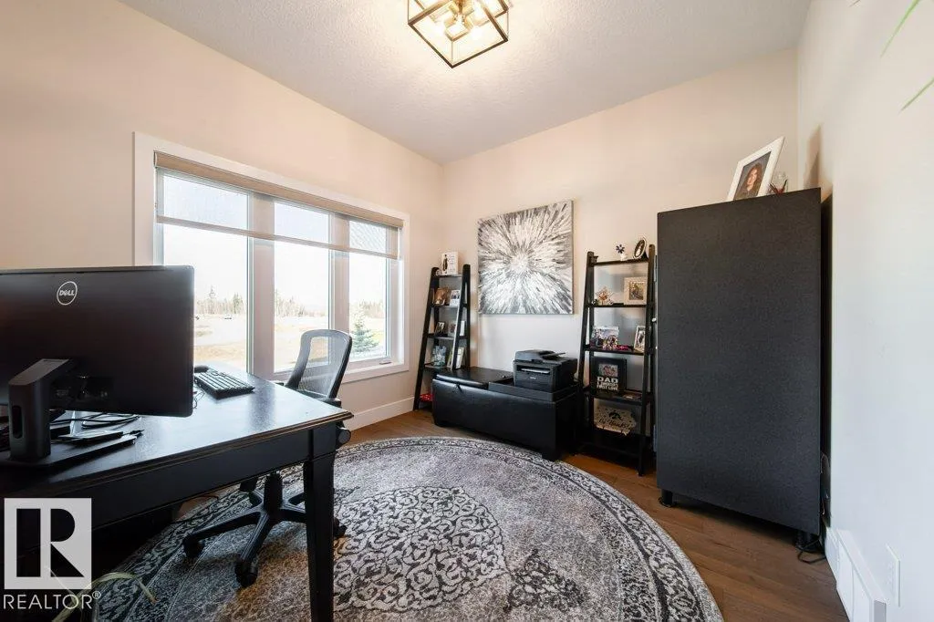10 minutes to Edmonton. Spring Meadow Estates. Shows like new! Close to golf course. Modern Luxury Acreage on 1 acre lot with full city service. Backing southeast and onto trees, with plenty of sunshine and space. Gorgeous 2 story 3,107sf plus 1,358sf fully finished walkout basement. 4+1 Bedrooms and 5 Baths. Central Air Conditioned. Triple garage that can park 4 cars, fully heated and with epoxy flooring and drain. Professionally finished from top to bottom. Exquisite entry way next to Den. Gorgeous upgraded hardwood and marble tile flooring. Quartz countertops throughout. Huge gourmet island kitchen with top of the line appliances, and walk-in pantry room. Great Room with fireplace. Eating nook open to Covered deck, with gas line. Upstairs with private Master suite and walk-in dressing room. Second bedroom with full ensuite bath, next to two more spacious Bedroom. Large laundry room with cabinets and sink. Basement fully finished with fireplace, Recreational Room and a Gym. Loads of storage and closets. (id:27476)