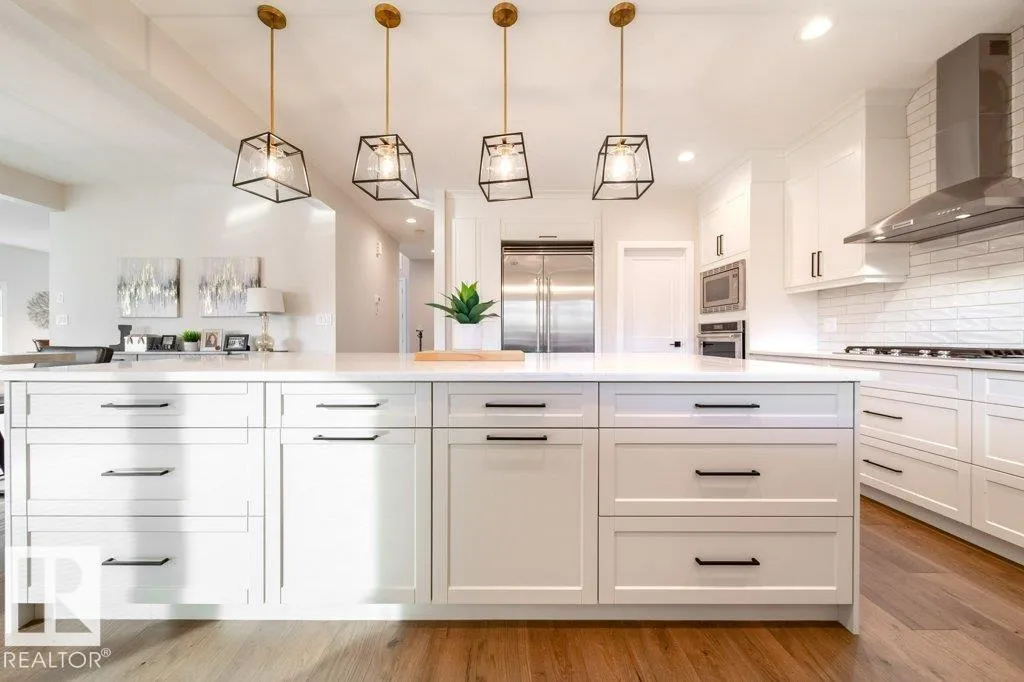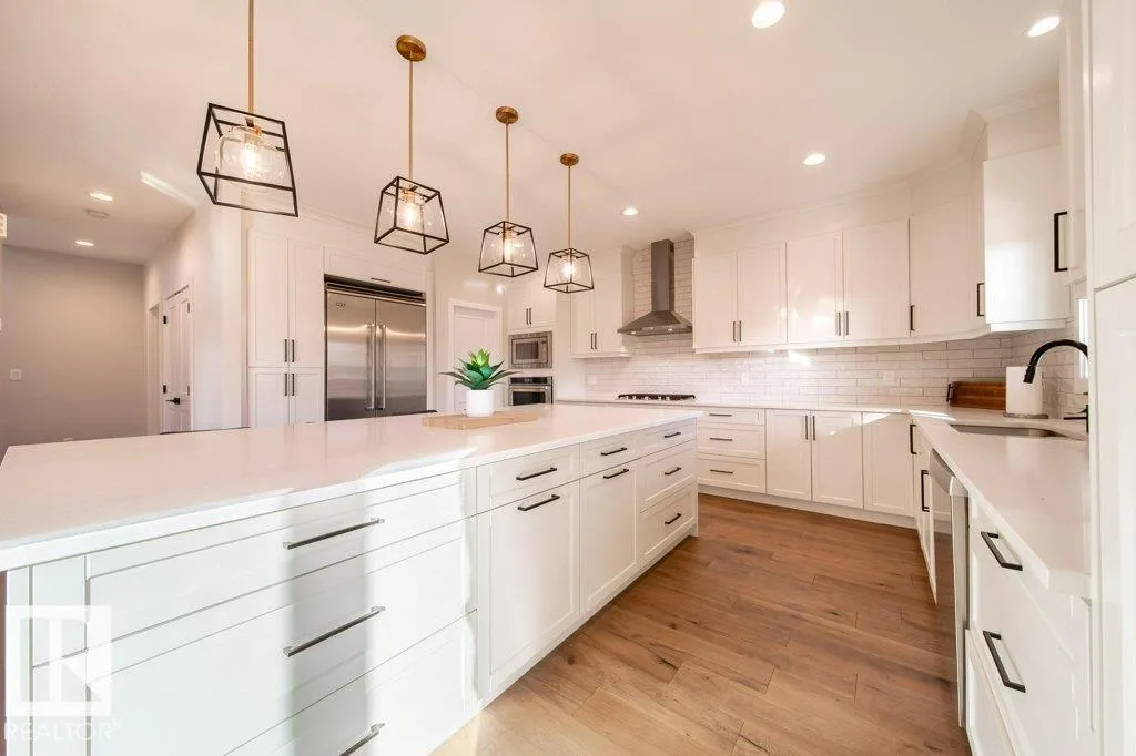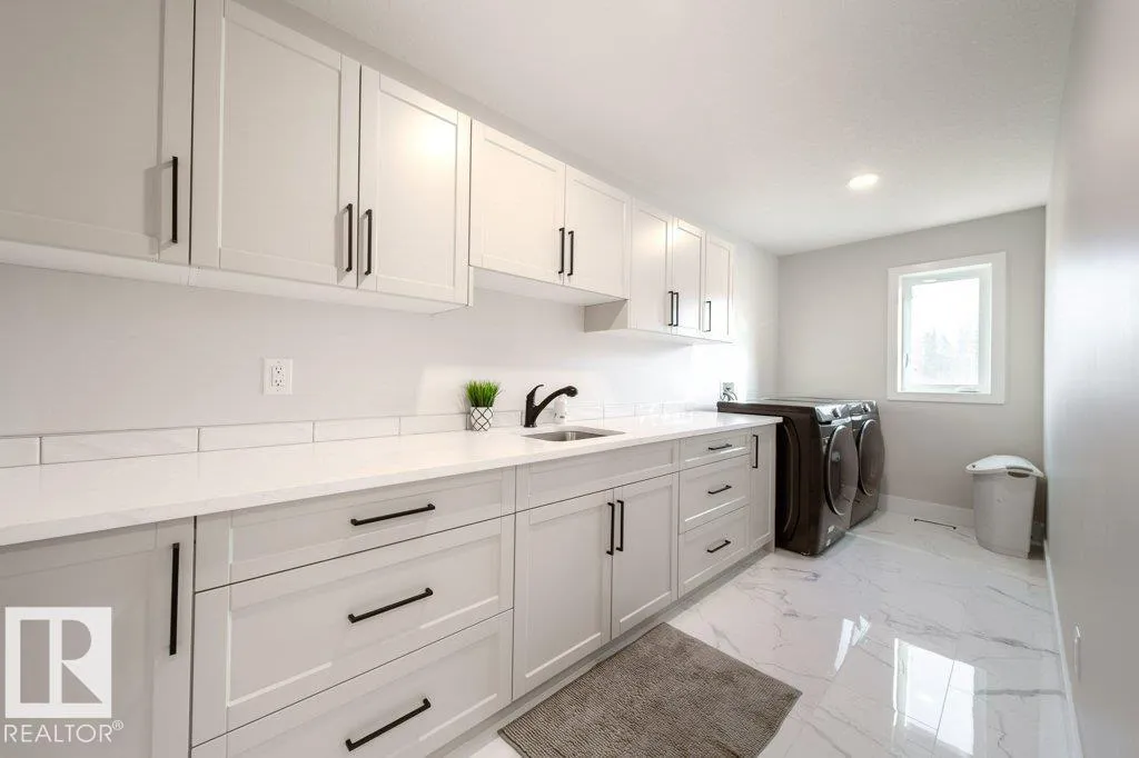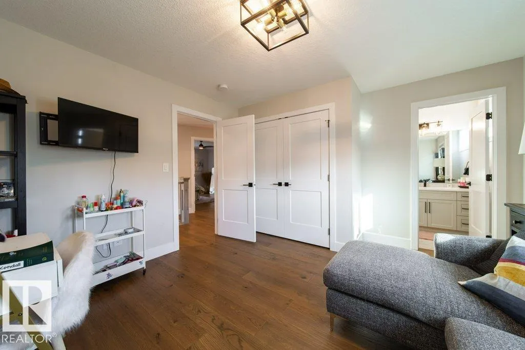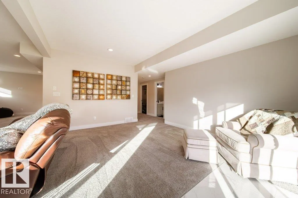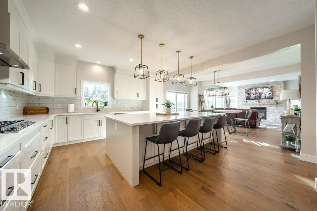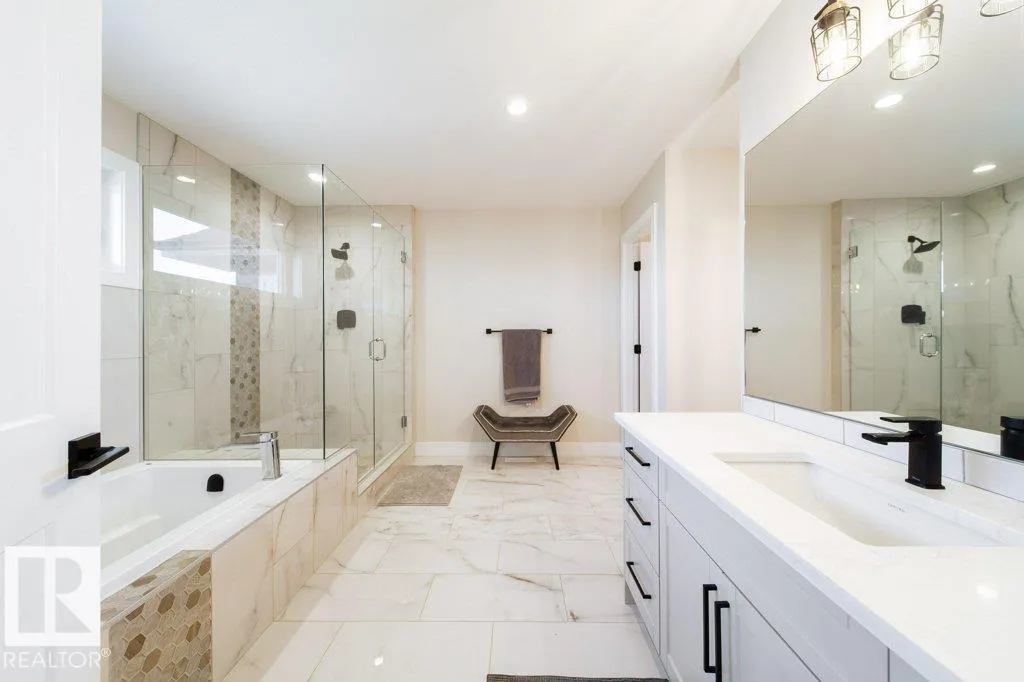 10 minutes to Edmonton. Spring Meadow Estates. Shows like new! Close to golf course. Modern Luxury Acreage on 1 acre lot with full city service. Backing southeast and onto trees, with plenty of sunshine and space. Gorgeous 2 story 3,107sf plus 1,358sf fully finished walkout basement. 4+1 Bedrooms and 5 Baths. Central Air Conditioned. Triple garage that can park 4 cars, fully heated and with epoxy flooring and drain. Professionally finished from top to bottom. Exquisite entry way next to Den. Gorgeous upgraded hardwood and marble tile flooring. Quartz countertops throughout. Huge gourmet island kitchen with top of the line appliances, and walk-in pantry room. Great Room with fireplace. Eating nook open to Covered deck, with gas line. Upstairs with private Master suite and walk-in dressing room. Second bedroom with full ensuite bath, next to two more spacious Bedroom. Large laundry room with cabinets and sink. Basement fully finished with fireplace, Recreational Room and a Gym. Loads of storage and closets. (id:27476)