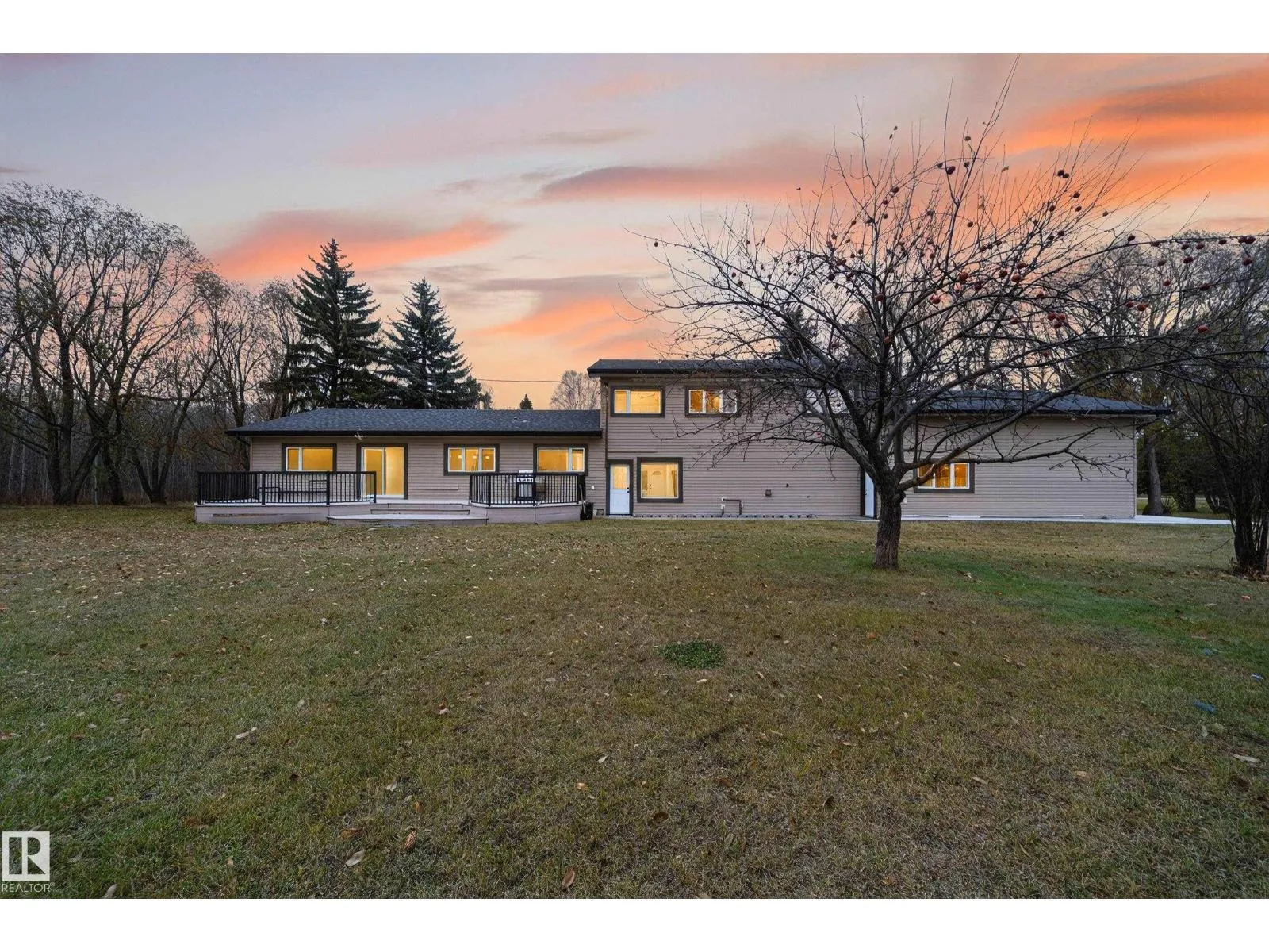 Premium 3.4 acre acerage with numerous upgrades, quiet location in the wonderful subdivision of Sunset View Acres which is just off the 627 and Willow Dale road. This home is only 15 min Edmonton, 15 min to Spruce Grove, 10 min Devon. Mature landscaping with huge trees. This renovated home has 3 bedrooms newer flooring and trim 4 pce ensuite off master bedroom. Large open island kitchen with newer cabinets, countertops, lighting and fixtures, newer furnace, Newer furnace, shingles energy efficient crank out vinyl windows. Newer siding and doors. A wonderful highlight of this property is the oversized heated 4 car garage and shop. The garage has an attic storage and extra high ceilings. Brand new Concrete Driveway over 80,000$ spent. A gem you don't want to miss. (id:27476)