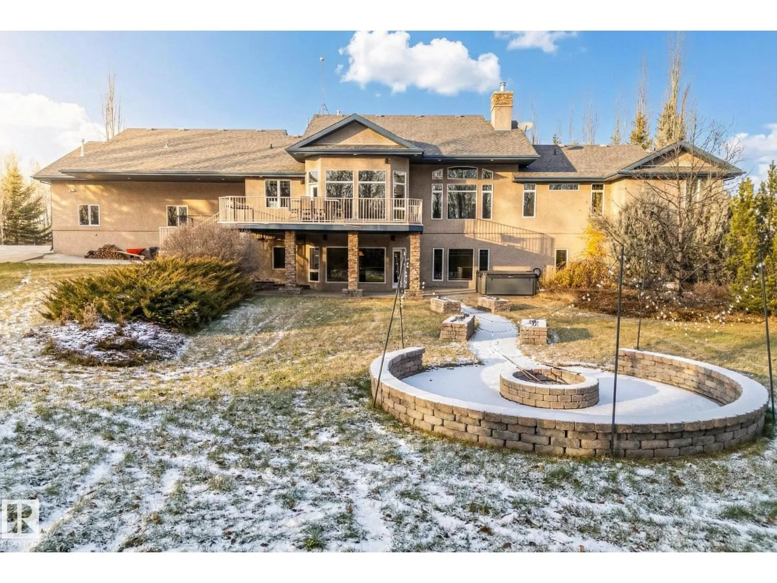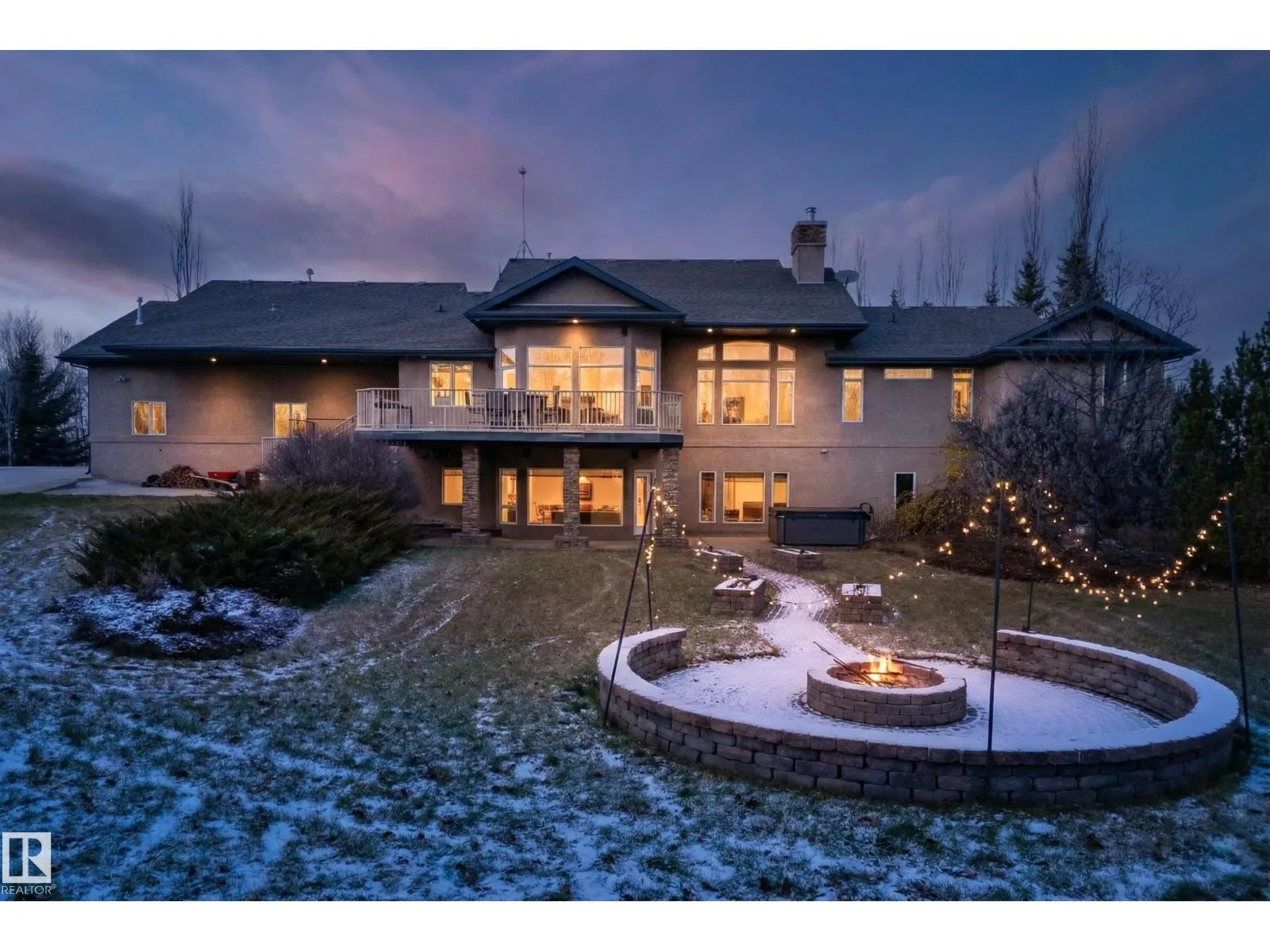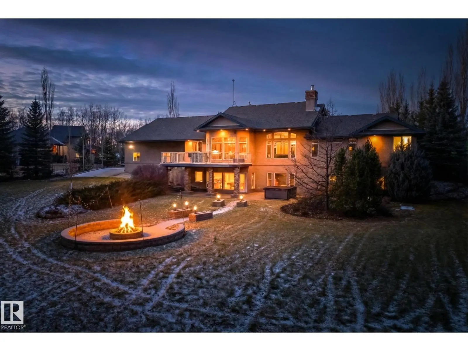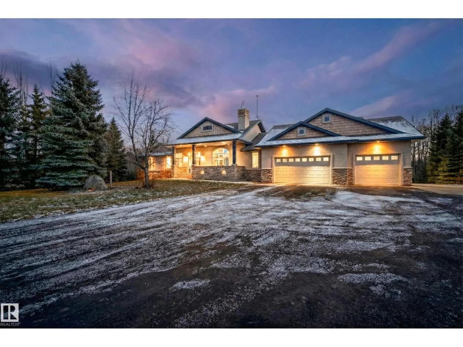 Welcome to Muir Ridge Estates, where luxury meets cozy lakeside living. This executive walkout bungalow offers just under 5,000 sq ft of refined space on a fenced and gated 2-acre treed lot at the end of a quiet cul-de-sac by the lake. Inside, enjoy the open concept chef's kitchen, breakfast nook, 4 bedrooms, 3.5 baths, a formal dining room, dedicated office/den, upstairs laundry, and an inviting fireplace that sets the tone for warm winter gatherings in the main living room. The walkout basement hosts a spacious rec room, wet bar, gym, and ample storage. Step outside to the elevated patio, hot tub, fire pit, and serene views. The oversized heated triple garage includes workshop space, storage, and an attached dog run. A home generator adds peace of mind. With RV/Boat/ATV parking, direct access to canoeing, fishing, trails, and winter recreation, and minutes to Spruce Grove and 30 minutes to Edmonton, this is refined rural living at its most welcoming. (id:27476)