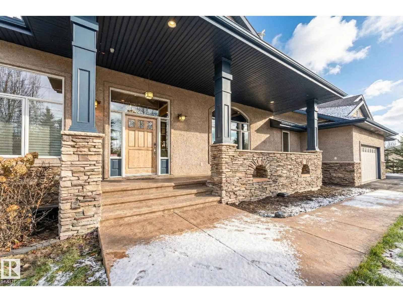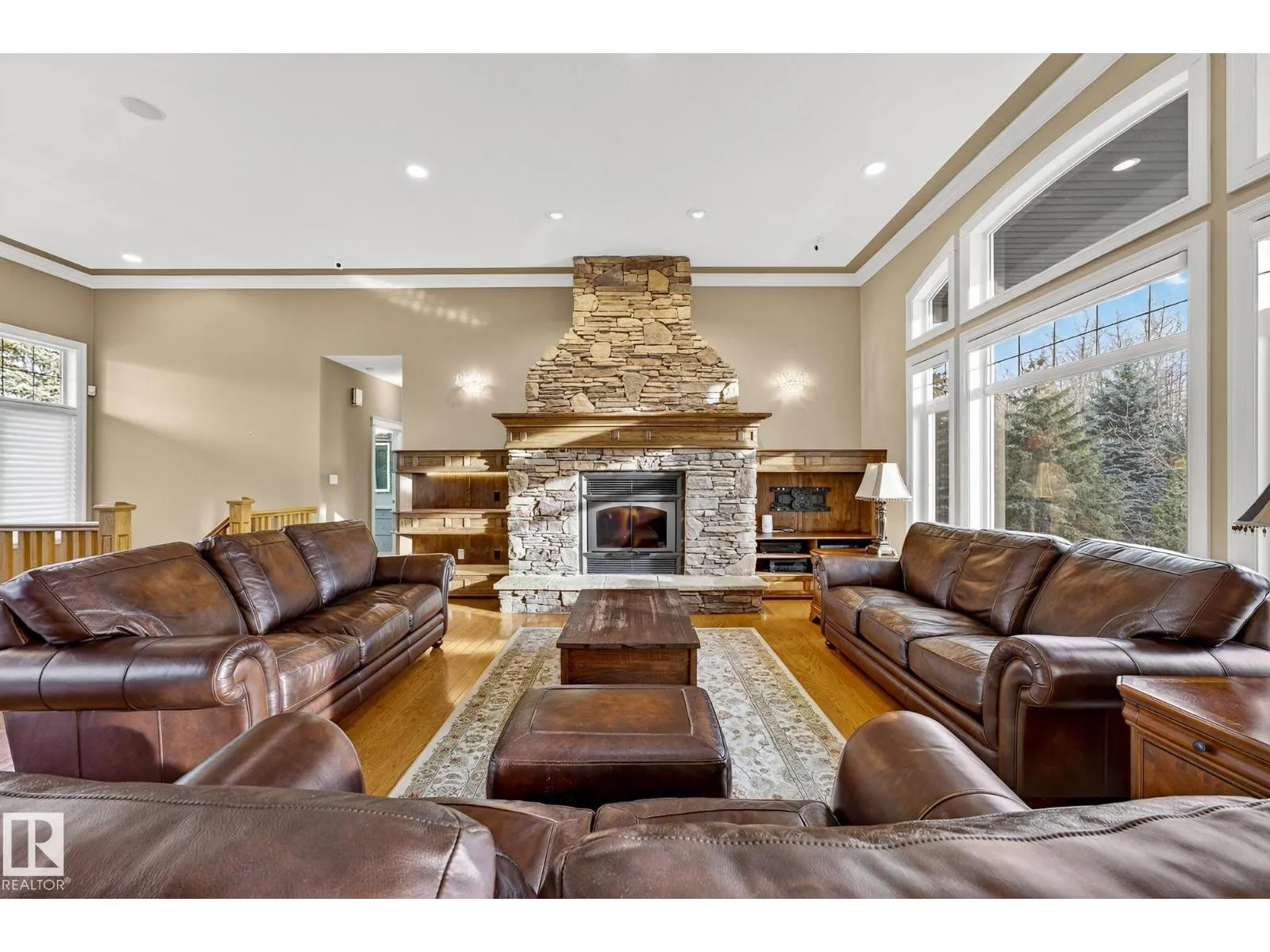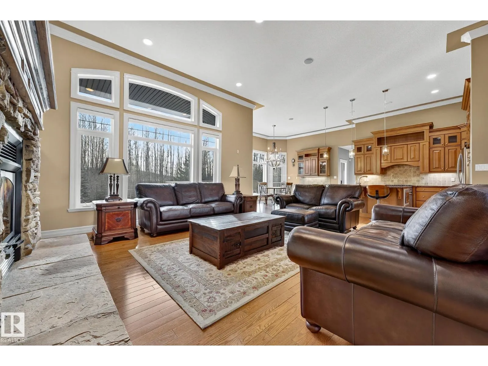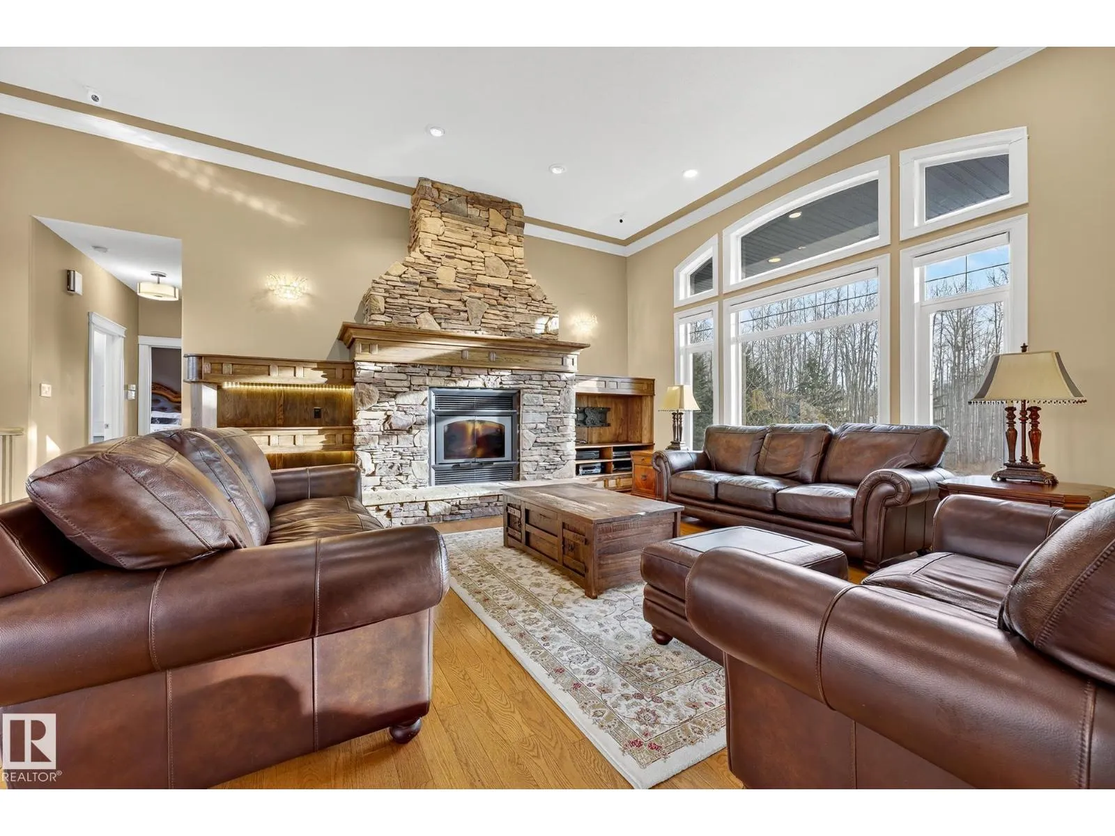 Welcome to Muir Ridge Estates, where luxury meets cozy lakeside living. This executive walkout bungalow offers just under 5,000 sq ft of refined space on a fenced and gated 2-acre treed lot at the end of a quiet cul-de-sac by the lake. Inside, enjoy the open concept chef's kitchen, breakfast nook, 4 bedrooms, 3.5 baths, a formal dining room, dedicated office/den, upstairs laundry, and an inviting fireplace that sets the tone for warm winter gatherings in the main living room. The walkout basement hosts a spacious rec room, wet bar, gym, and ample storage. Step outside to the elevated patio, hot tub, fire pit, and serene views. The oversized heated triple garage includes workshop space, storage, and an attached dog run. A home generator adds peace of mind. With RV/Boat/ATV parking, direct access to canoeing, fishing, trails, and winter recreation, and minutes to Spruce Grove and 30 minutes to Edmonton, this is refined rural living at its most welcoming. (id:27476)