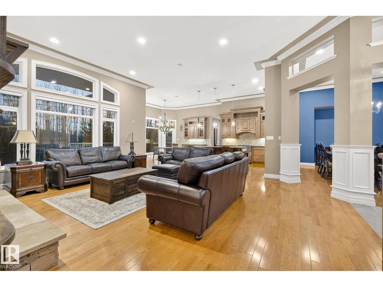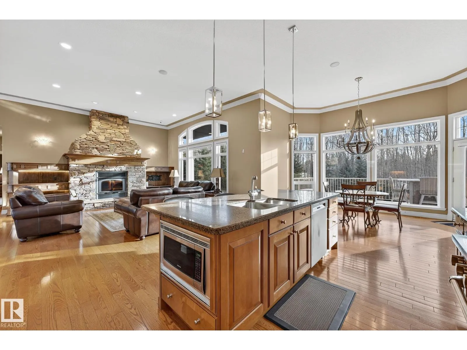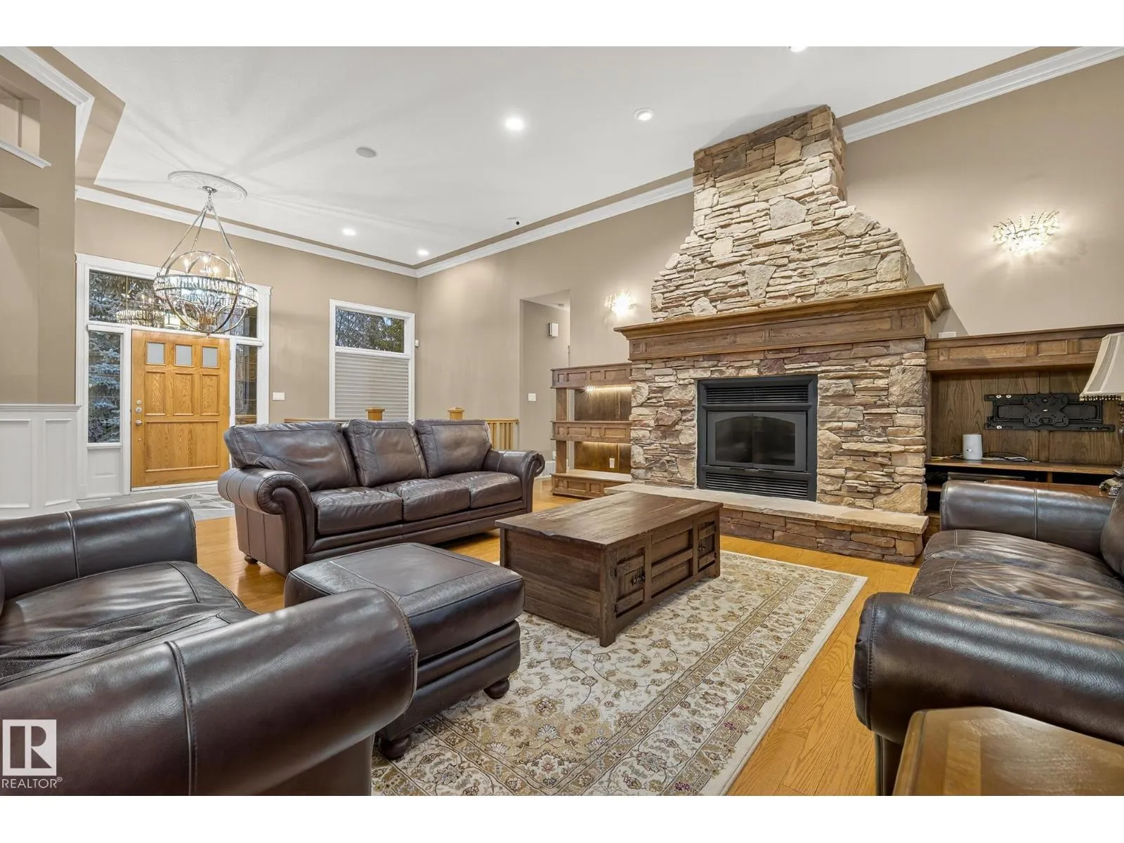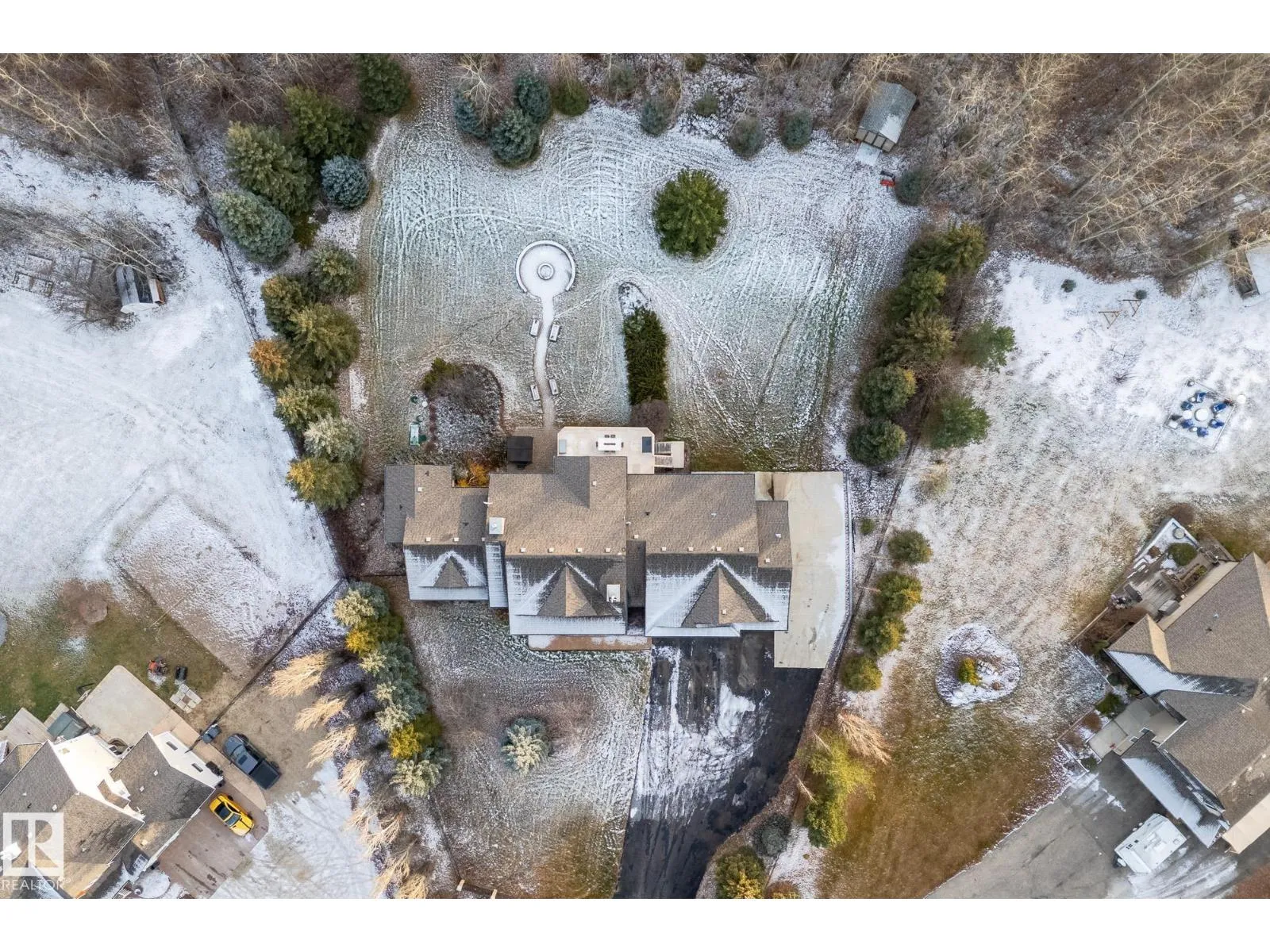 Welcome to Muir Ridge Estates, where luxury meets cozy lakeside living. This executive walkout bungalow offers just under 5,000 sq ft of refined space on a fenced and gated 2-acre treed lot at the end of a quiet cul-de-sac by the lake. Inside, enjoy the open concept chef's kitchen, breakfast nook, 4 bedrooms, 3.5 baths, a formal dining room, dedicated office/den, upstairs laundry, and an inviting fireplace that sets the tone for warm winter gatherings in the main living room. The walkout basement hosts a spacious rec room, wet bar, gym, and ample storage. Step outside to the elevated patio, hot tub, fire pit, and serene views. The oversized heated triple garage includes workshop space, storage, and an attached dog run. A home generator adds peace of mind. With RV/Boat/ATV parking, direct access to canoeing, fishing, trails, and winter recreation, and minutes to Spruce Grove and 30 minutes to Edmonton, this is refined rural living at its most welcoming. (id:27476)