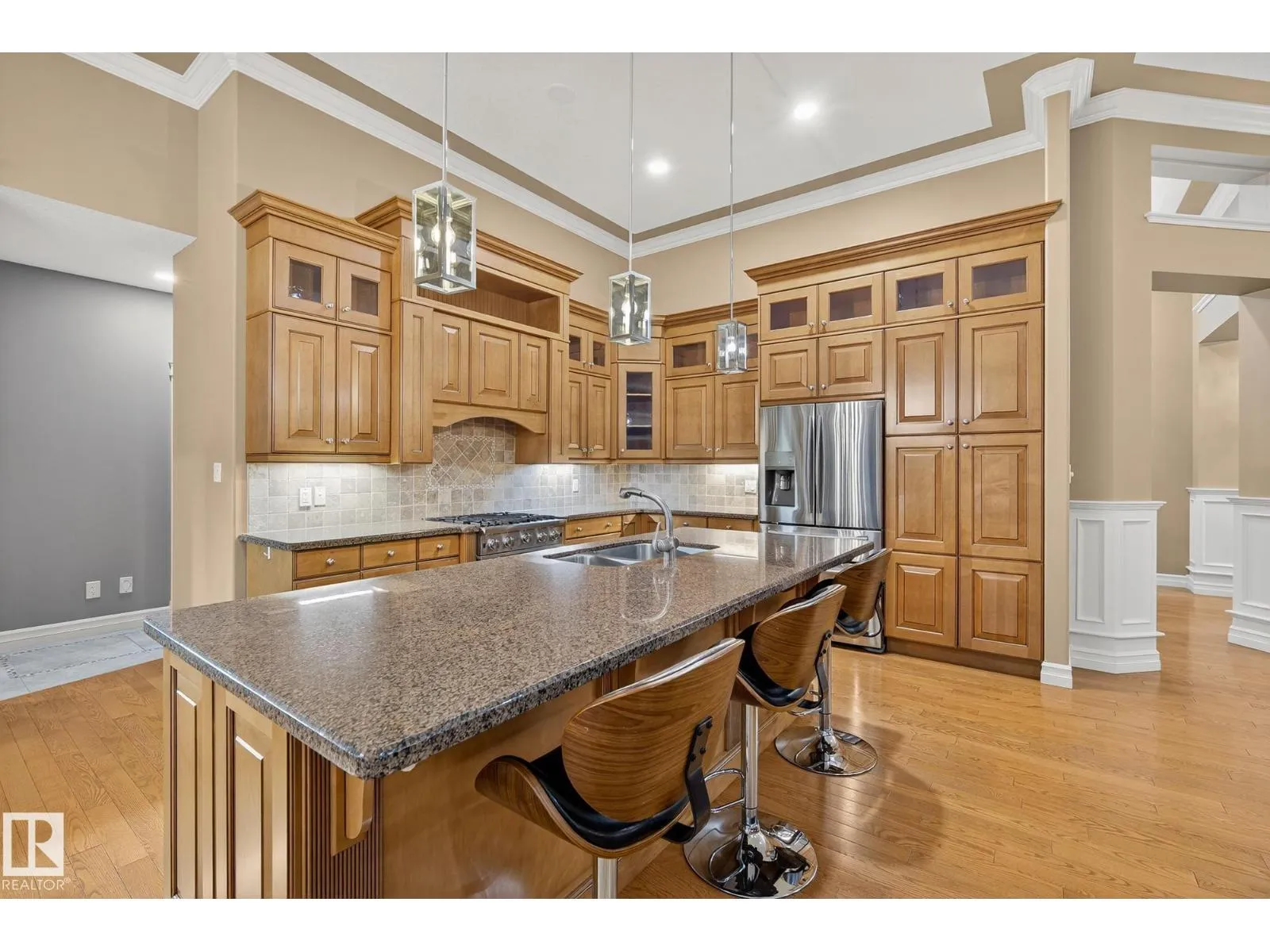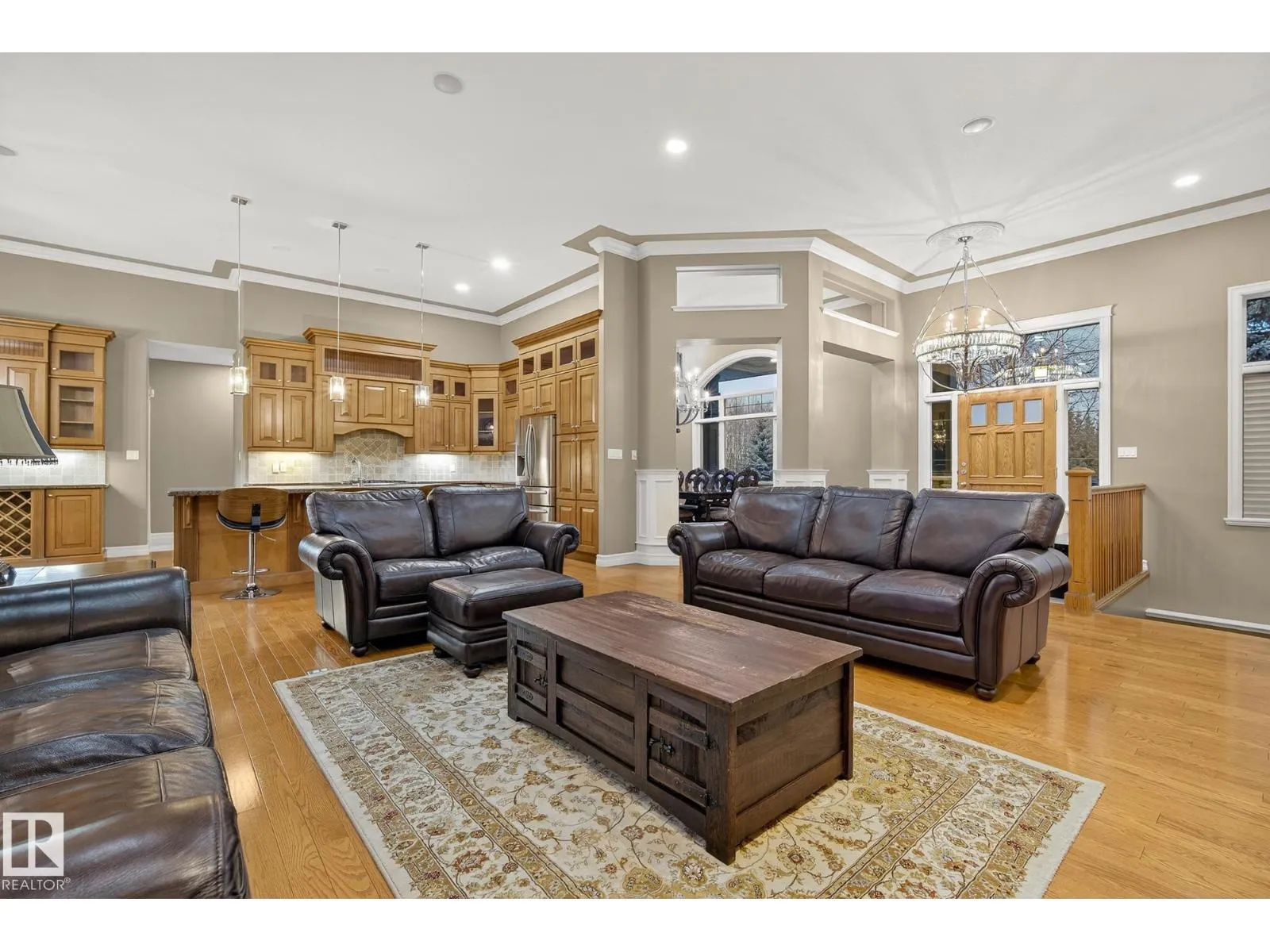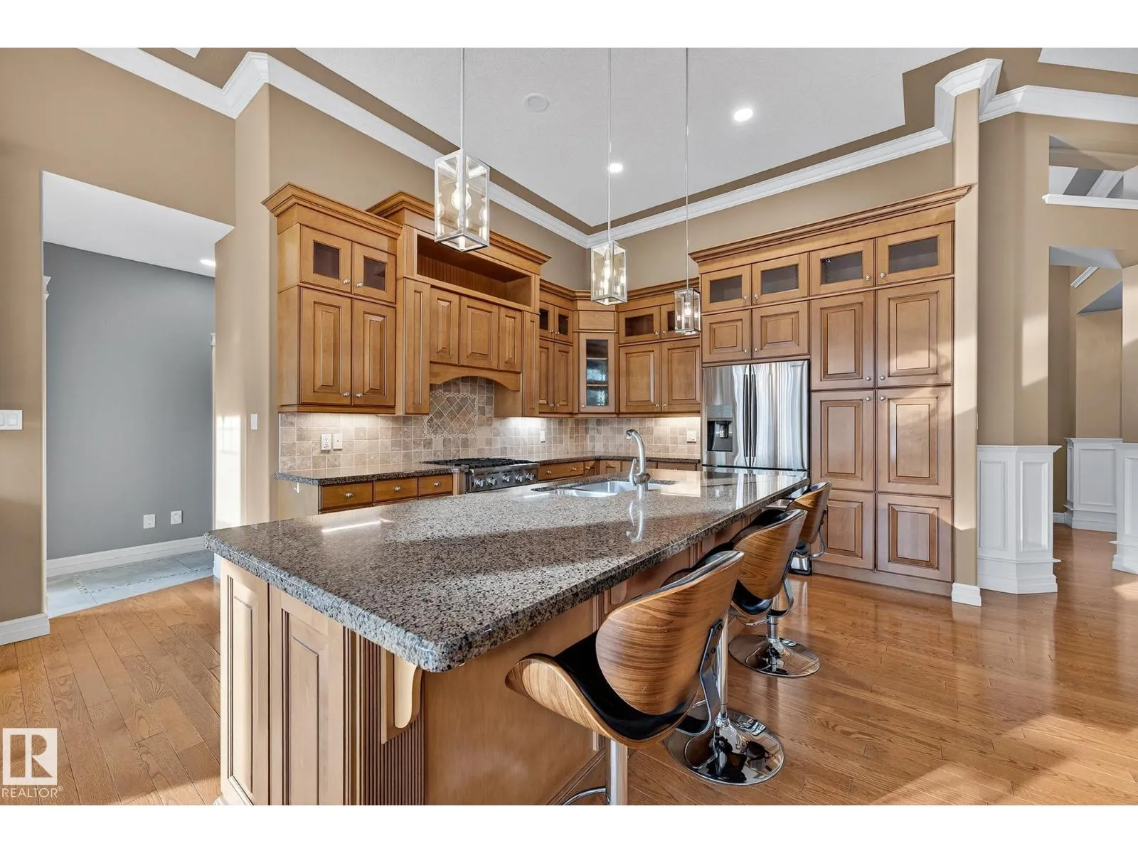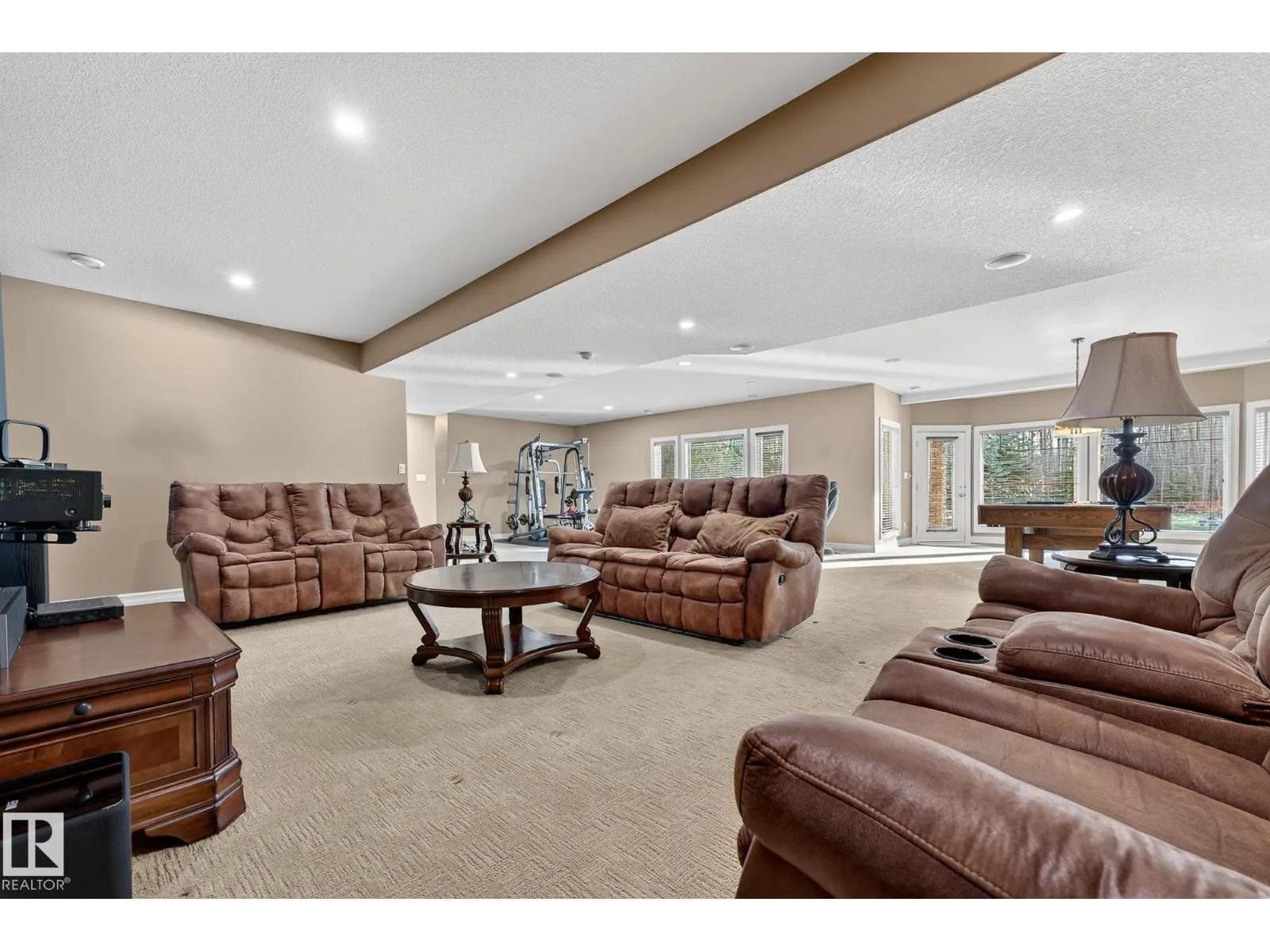 Welcome to Muir Ridge Estates, where luxury meets cozy lakeside living. This executive walkout bungalow offers just under 5,000 sq ft of refined space on a fenced and gated 2-acre treed lot at the end of a quiet cul-de-sac by the lake. Inside, enjoy the open concept chef's kitchen, breakfast nook, 4 bedrooms, 3.5 baths, a formal dining room, dedicated office/den, upstairs laundry, and an inviting fireplace that sets the tone for warm winter gatherings in the main living room. The walkout basement hosts a spacious rec room, wet bar, gym, and ample storage. Step outside to the elevated patio, hot tub, fire pit, and serene views. The oversized heated triple garage includes workshop space, storage, and an attached dog run. A home generator adds peace of mind. With RV/Boat/ATV parking, direct access to canoeing, fishing, trails, and winter recreation, and minutes to Spruce Grove and 30 minutes to Edmonton, this is refined rural living at its most welcoming. (id:27476)