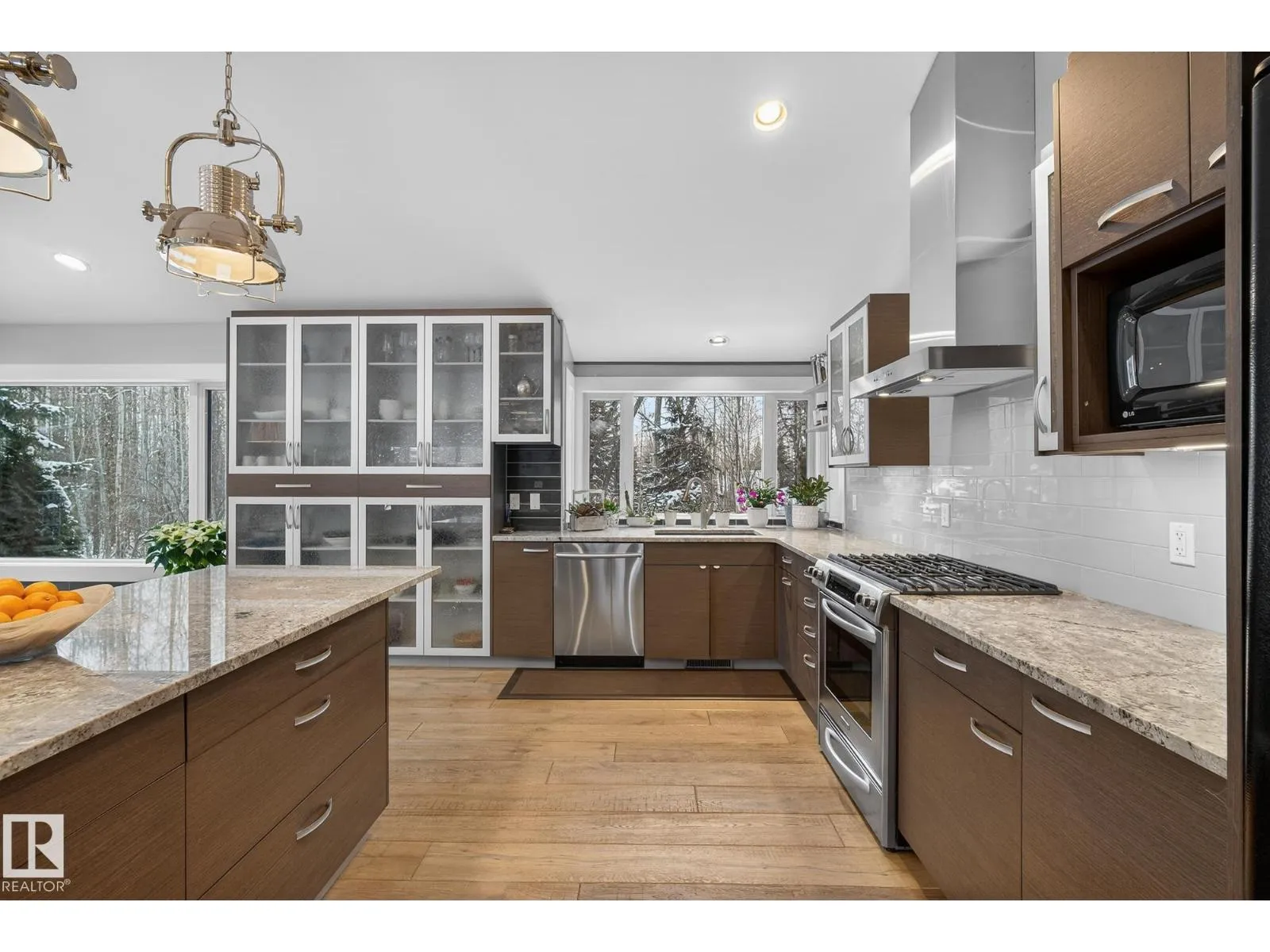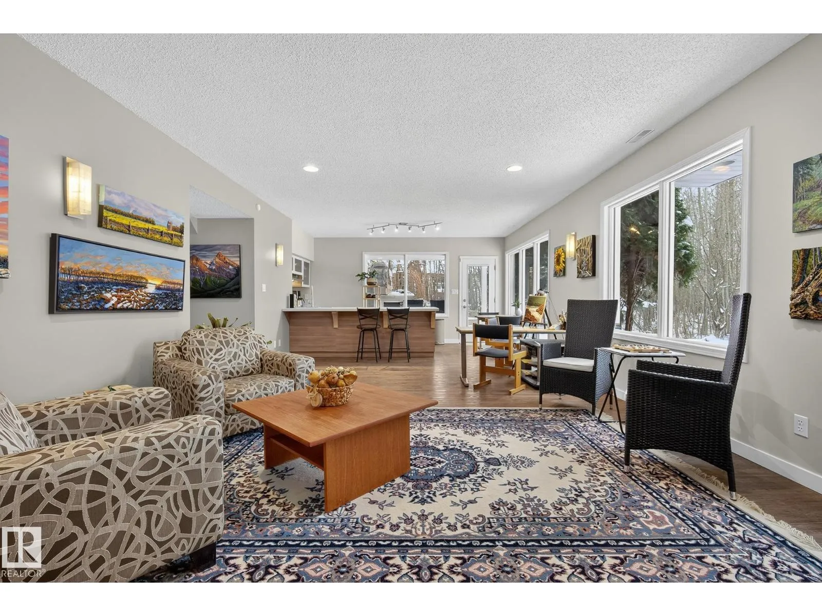 Welcome to this beautifully renovated treed acreage in prestigious Helenslea Heath. Situated on approx. 0.6 acres, this private property is fully serviced w/city water, sewer, plumbing, & electricityâno well, septic, or cistern required. Ideally located just off 231 St & the Yellowhead/Trans Canada, only 9 km to WEM & 14 km to downtown Edmonton. This bungalow w/walk-out bsmt features new windows throughout & a bright, inviting layout & thoughtful updates. Fully developed lower level offers 3 additional bdrms, a 5 pc bath, & an entertainerâs kitchen. With 3 bdrms up & 3 down, flexible spaces provide options for families, guests, or home offices. Enjoy mature trees, expansive yard space, & outdoor living, plus a triple att garage & large driveway for ample parking. Offering the finest blend of city living, space, privacy, & convenience. Room to breathe while remaining close to Edmonton & major commuter routes. A rare opportunity to enjoy country-style living with city convenience. 2025 Tax $4,397.35 (id:27476)