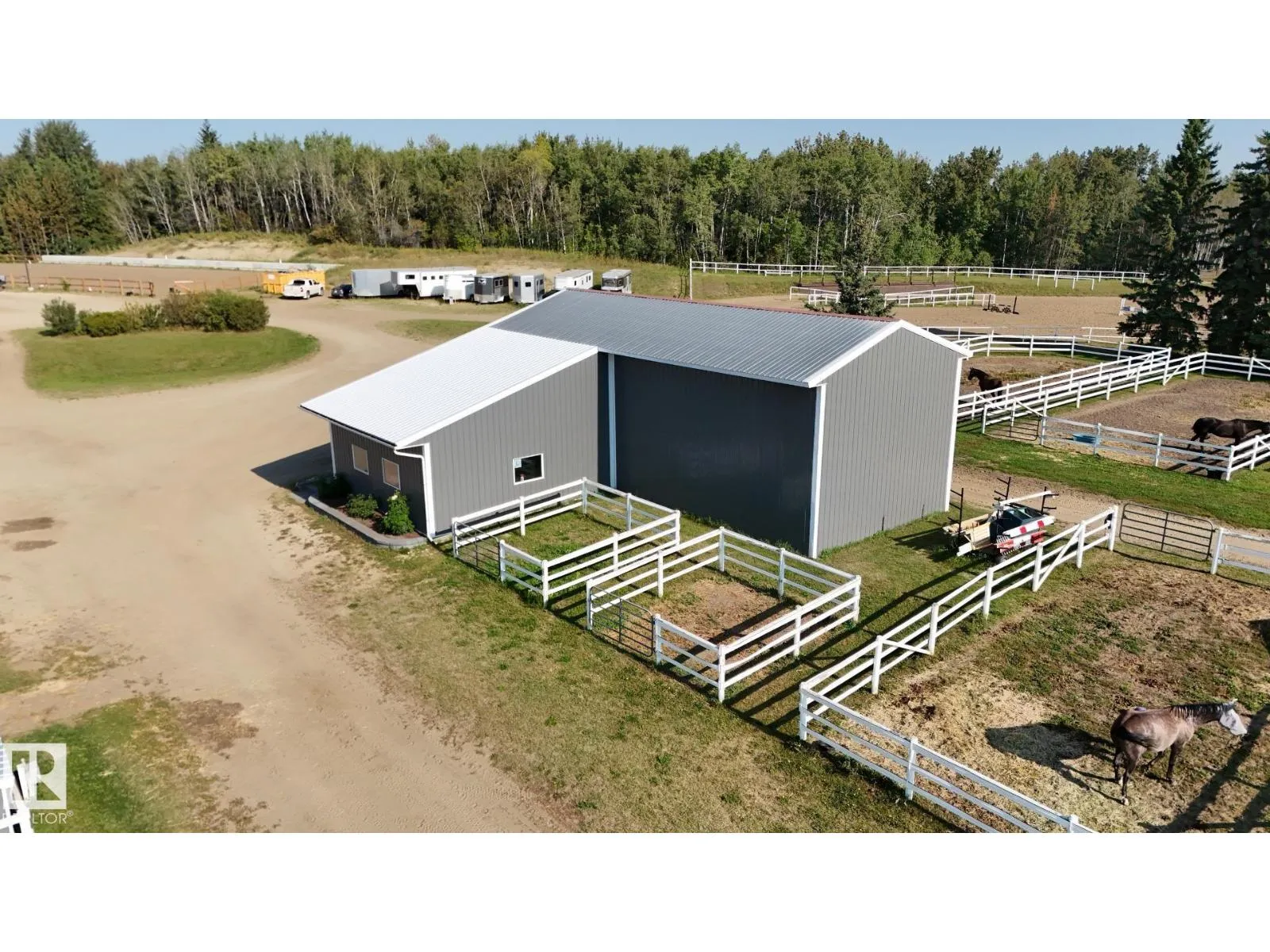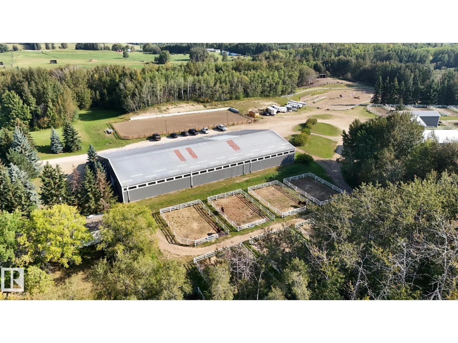 Exquisite Equine Facility 40 acres with many rolling hills and beautiful Spruce and Pine. Totally renovated with special attention to its equine residents. 19 stalls with all the associated equine care facilities ( washrack and grooming room) Two outdoor riding arenas and one indoor arena with special flooring. Kitchen overlooking the arena. Several new outbuildings shop with working bench, bathrooms and a living quarters never lived in. Extra stalls for isolation. Huge equipment storage. 2284 sq. ft. home with an outstanding view of the property. a mobile home. Very expensive horse paddocks. all wiring plumbing are newer. Underground water system throughout property. PRIDE OF OWNERSHIP; THIS IS IT. (id:27476)