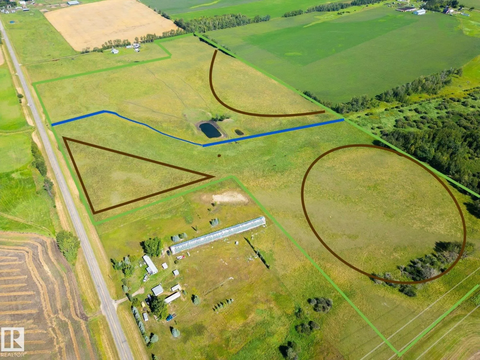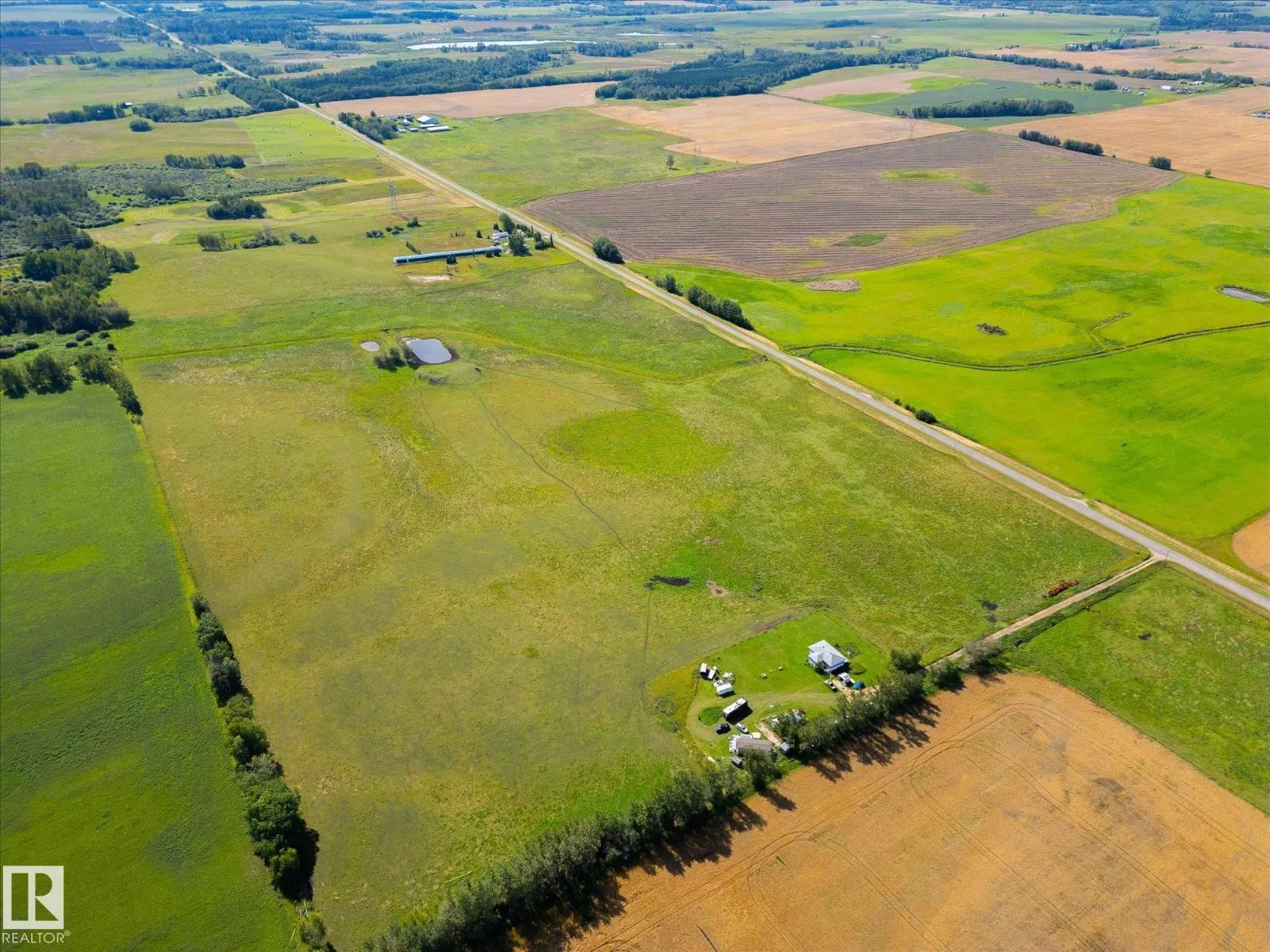 56 acres located straight south of Stony Plain on a paved school bus route, offering incredible sunsets and wide-open country views. Cleared, fenced, and gently rolling, this beautiful parcel features a seasonal stream that winds through the centre of the land, feeding a dugout along the way. The north and southeast corners offer higher ground, with the northeast portion previously used for hay. Currently used as pasture, but offers an excellent opportunity to build your dream home and enjoy peaceful rural living with convenient access to town amenities. Just 15 min to Stony Plain and 18 min to Spruce Grove. Nat gas and pwr are available at the road. Picture #4 shows the property line in green with the seasonal stream in blue and high spots marked in brown. Parcels this size are getting hard to find. Come walk the land and see the potential first hand. (id:27476)