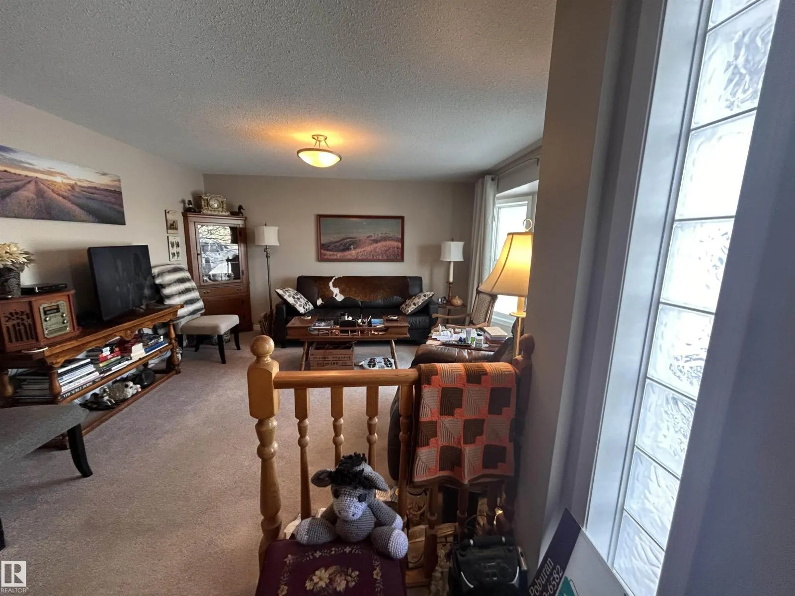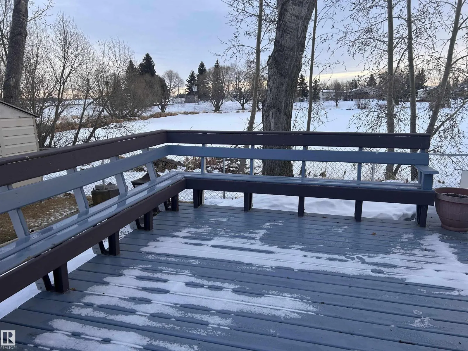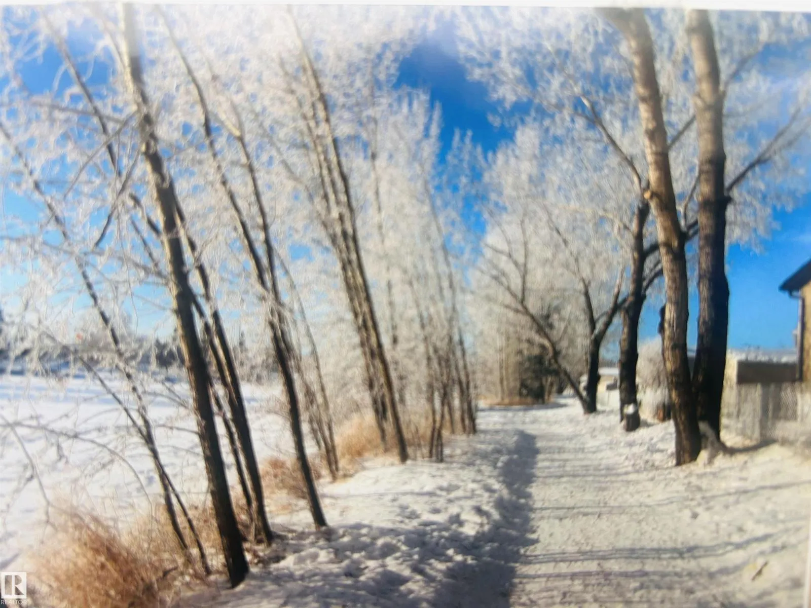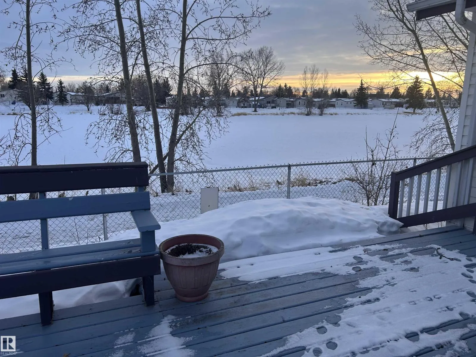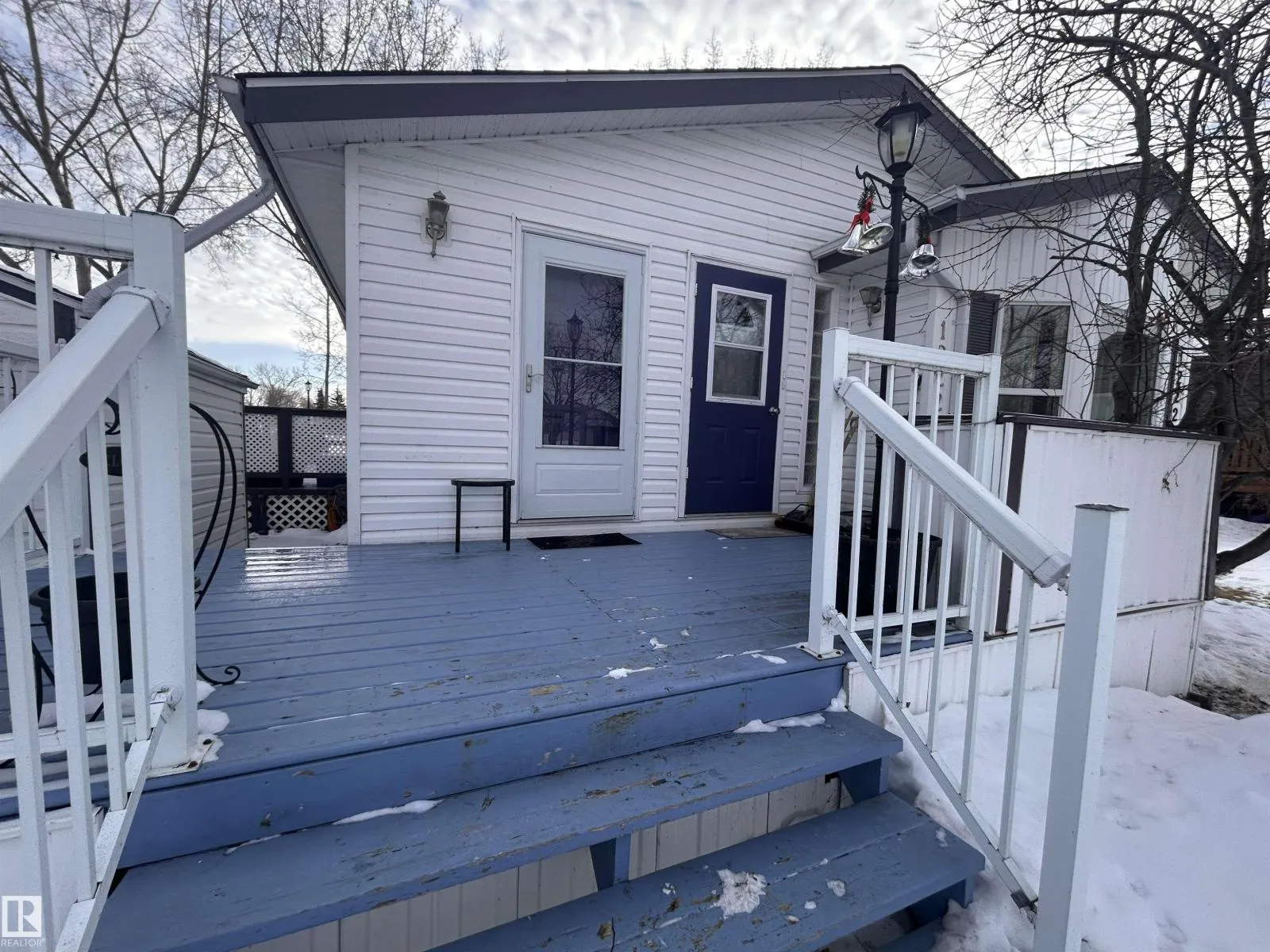 Architectural Custom Built offset double wide in one of the nicest spots in the park! Painted drywall home with vaulted stucco ceilings, skylight, three entrances, corner gas fireplace with mantle. Front entry foyer & living room, plus a family room. 4-pce bathroom. 3 bedrooms, Master en suite jetted tub & walk in closet. Open area kitchen with pantry and island. Many upgrades include a recently renewed asphalt shingle roof, quiet furnace, upright freezer, built in microwave and dishwasher, ceran top electric stove. Walk-a-bay windows in living rooms, and many designer style accents throughout. You will love the extended porch leading to the yard that backs on to the fountain pond with mature trees all around. The home has many deluxe features such as its own laundry room, with a separate entrance. The walk around deck to the back features built in seating; a great place for entertaining guests. Enjoy the privacy at this location with singing birds year round. A real beauty of a house. Hurry to see it! (id:27476)