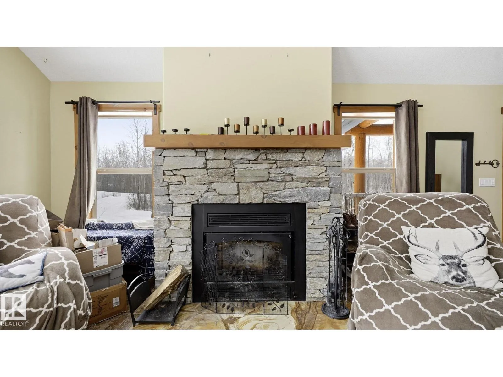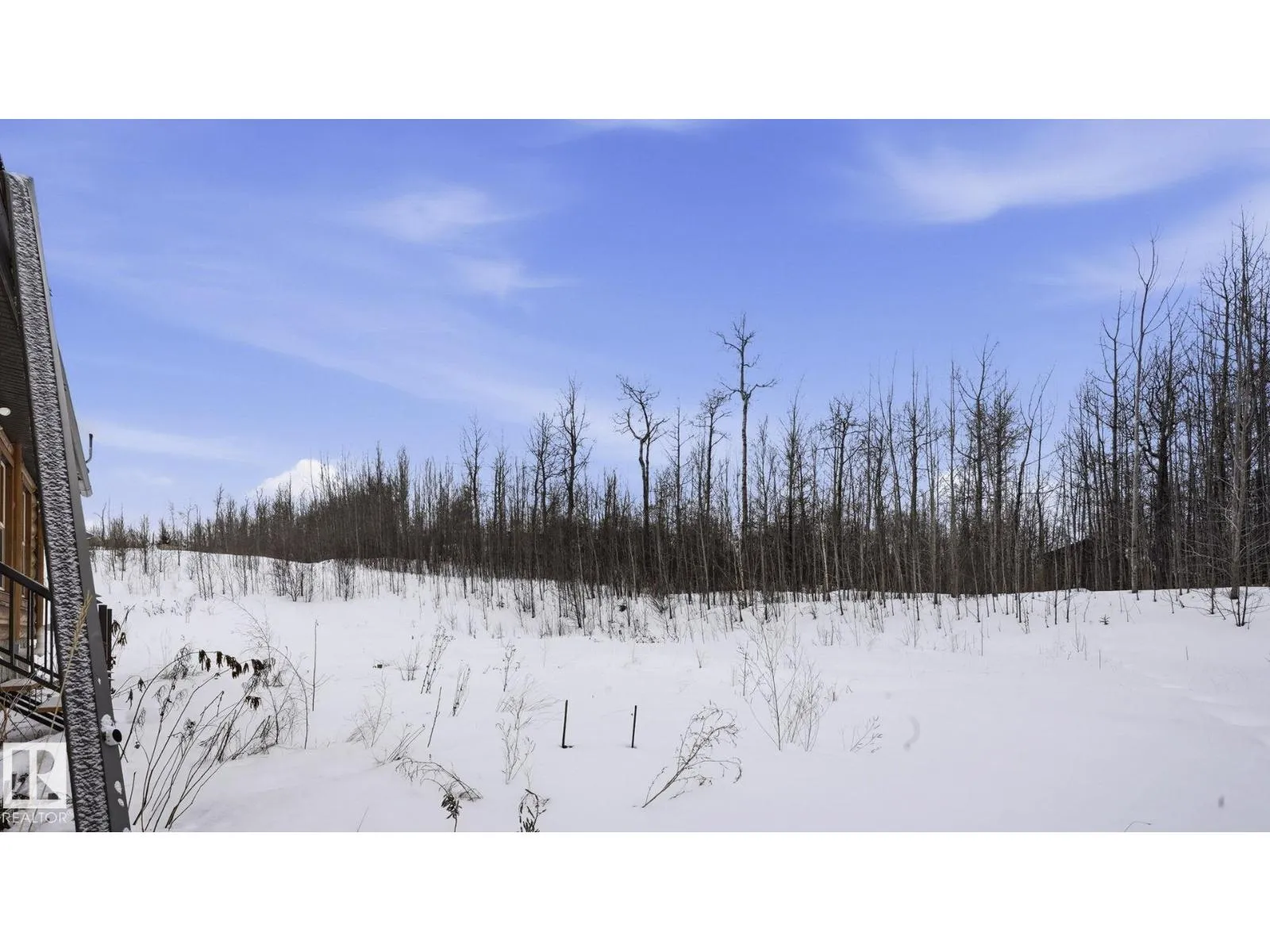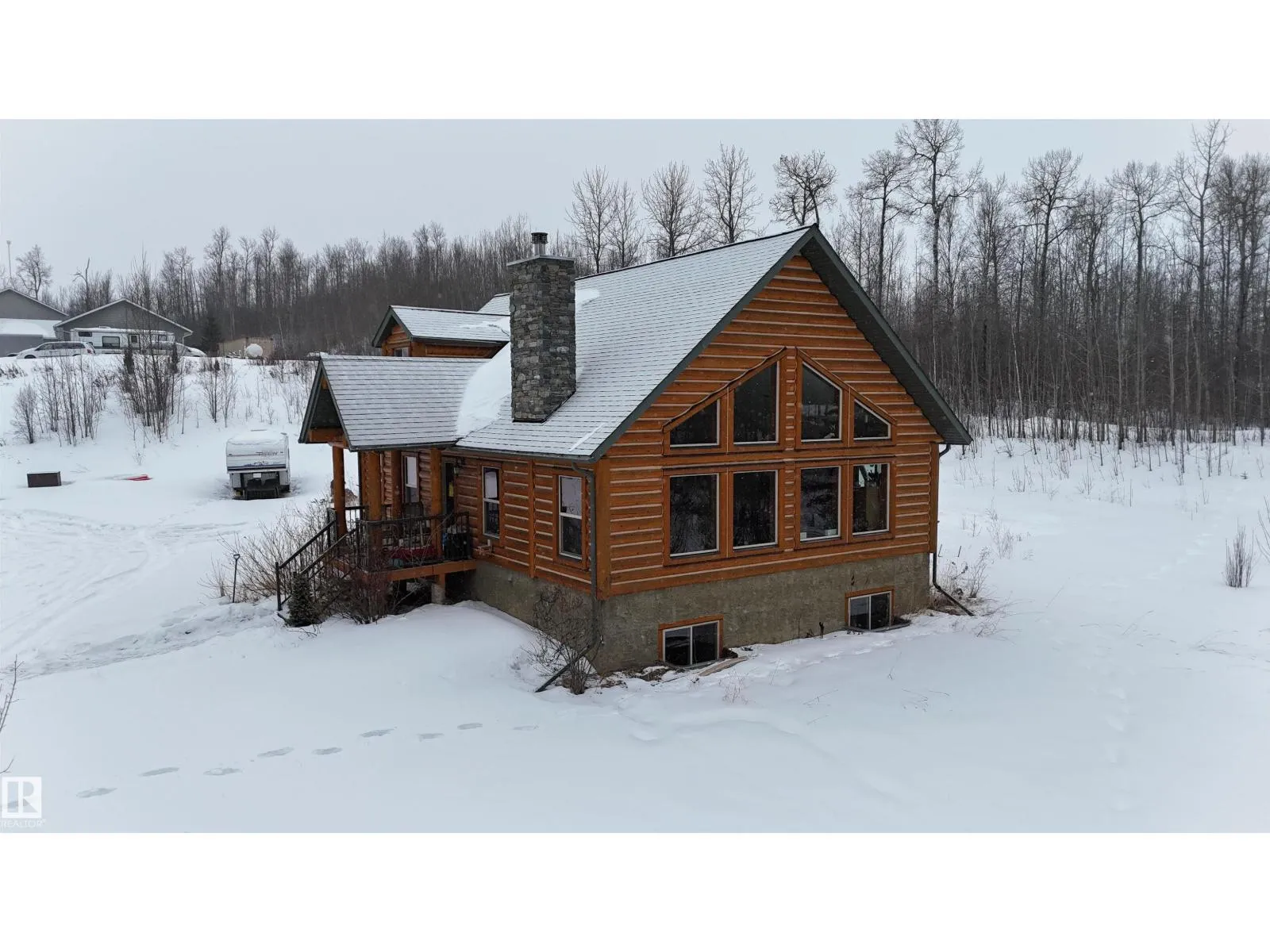 This 2.140-acre acreage in Mayatan Lake Estates, Rural Parkland County, offers a 2014-built wood-frame home with log siding (not log framed) on an ICF (Insulated Concrete Form) foundation for superior energy efficiency. The property includes a drilled well, septic tank and field system. The home features tile floors throughout, vaulted ceilings, an upper-level loft, and a fully finished basement. The main level includes the primary bedroom, a wood-burning fireplace with built-ins, and large windows overlooking a private yard. Surrounded by mature trees for privacy, it is within walking distance to Mayatan Lake. Conveniently located just 25 minutes west of Spruce Grove (id:27476)
