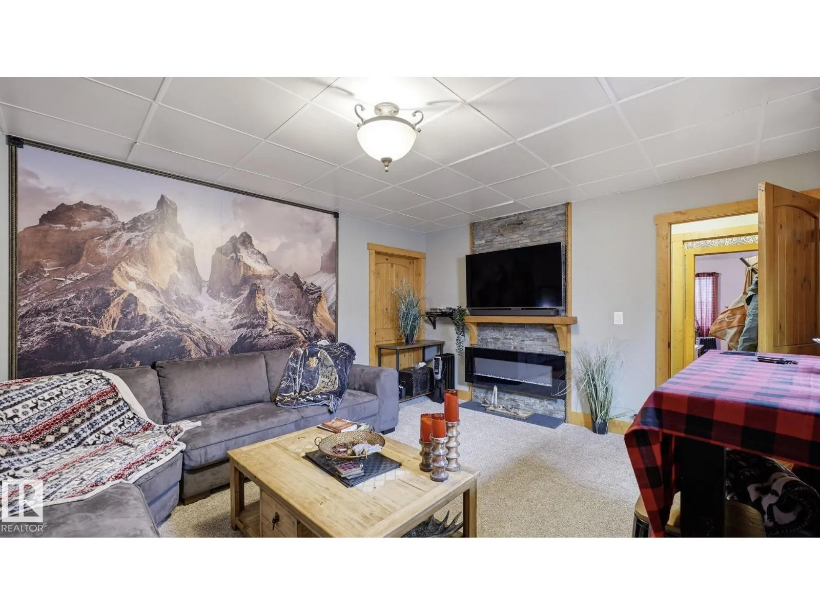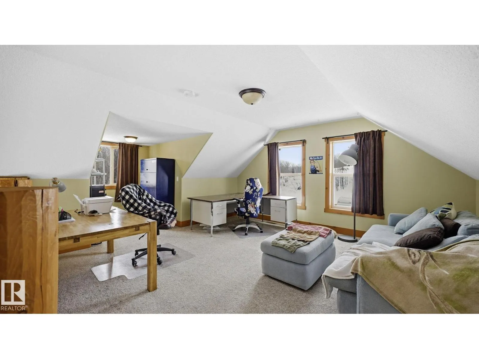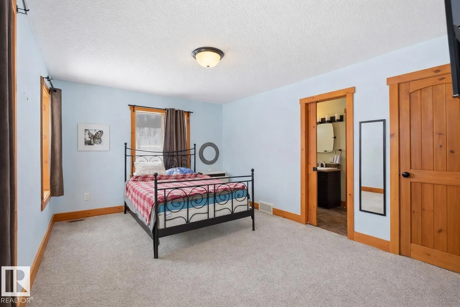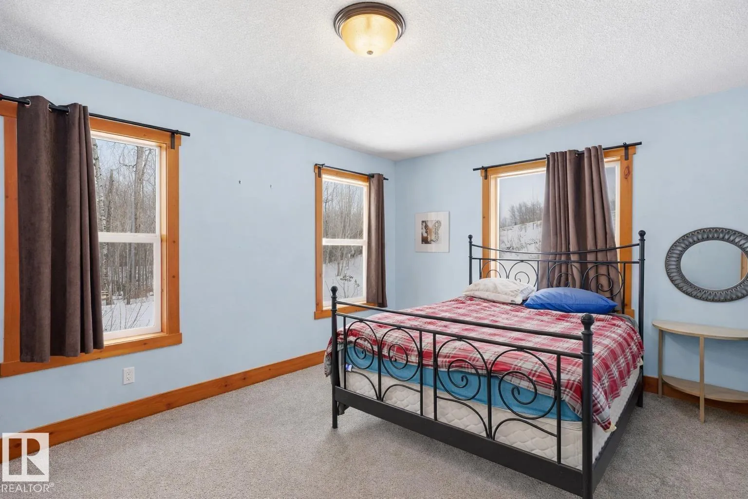 This 2.140-acre acreage in Mayatan Lake Estates, Rural Parkland County, offers a 2014-built wood-frame home with log siding (not log framed) on an ICF (Insulated Concrete Form) foundation for superior energy efficiency. The property includes a drilled well, septic tank and field system. The home features tile floors throughout, vaulted ceilings, an upper-level loft, and a fully finished basement. The main level includes the primary bedroom, a wood-burning fireplace with built-ins, and large windows overlooking a private yard. Surrounded by mature trees for privacy, it is within walking distance to Mayatan Lake. Conveniently located just 25 minutes west of Spruce Grove (id:27476)