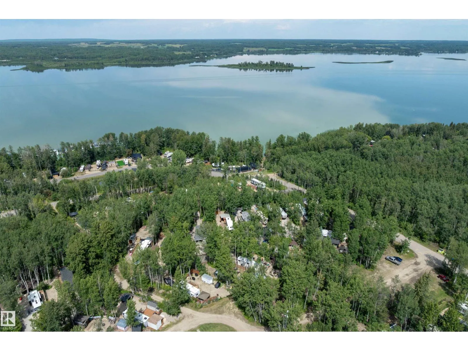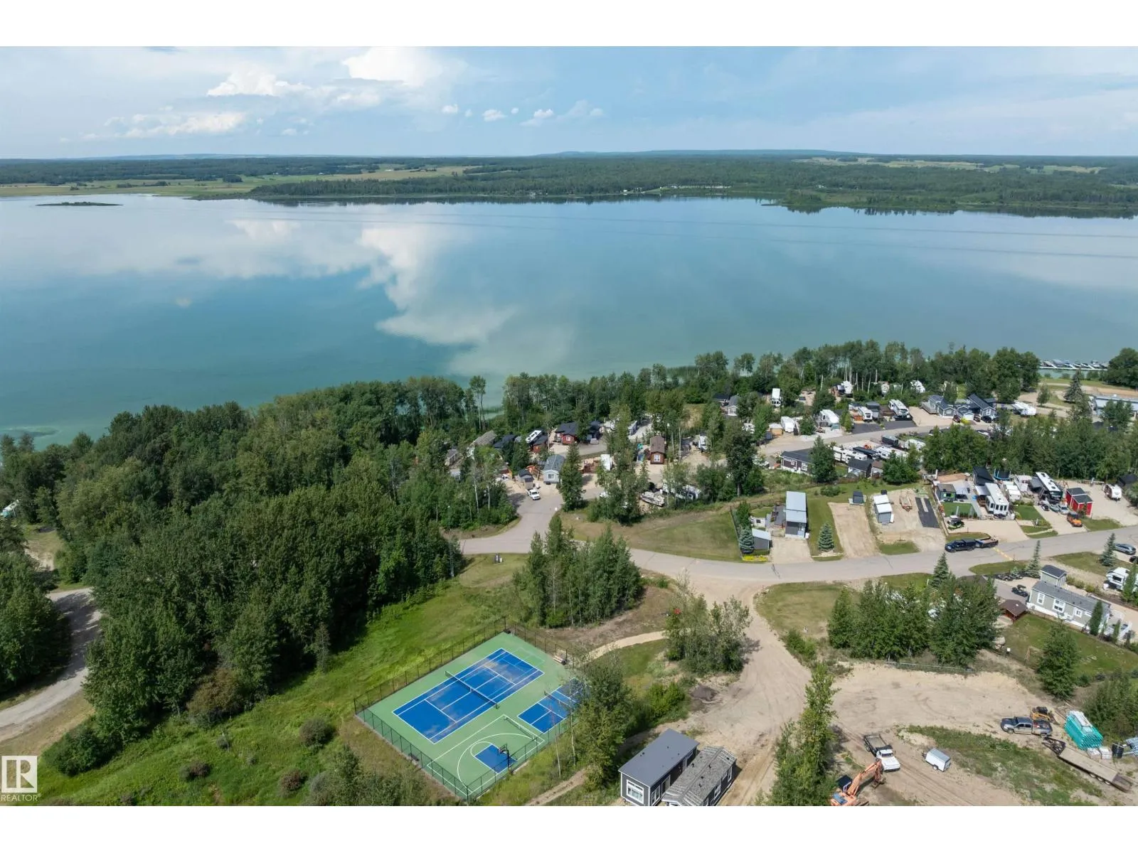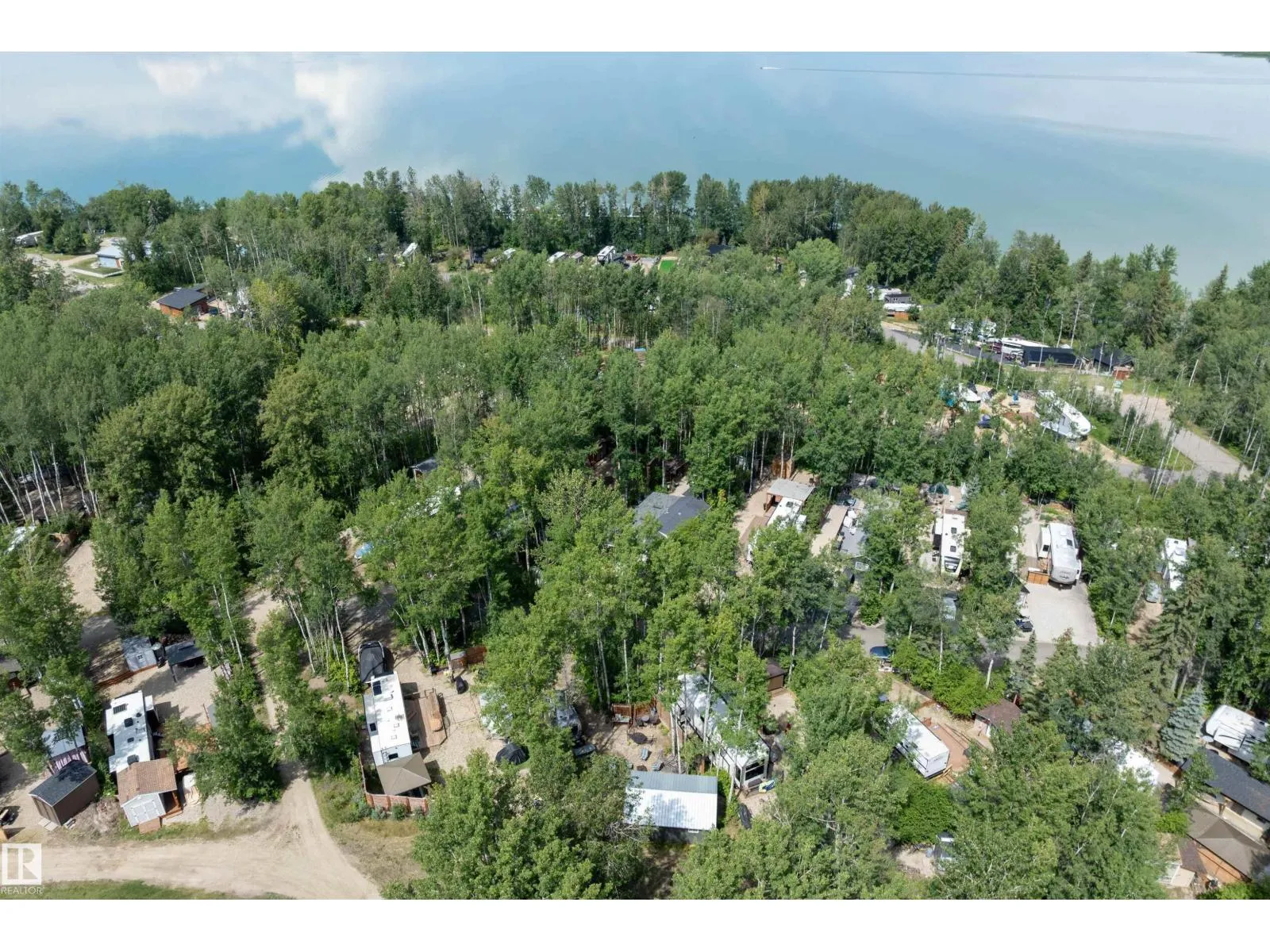LAKE LOT at Sunset Shores RV Resort. Enjoy lake life at this beautiful community. Park your RV all year round nestled in the trees with a 14 x 20 bunkhouse- perfect for guests. Firepit area, fenced with flower beds and privacy. The lakefront year round community feature municipal water, sewer and power. There are paved roads throughout, clubhouse with a heated pool. Enjoy the gym, laundry, showers, public dock, private boat slips and boat launch. There are pickle ball courts, tennis and basketball courts. Trail system for beautiful nature walks. Easy commute back to Edmonton in 45 mins. (id:27476)