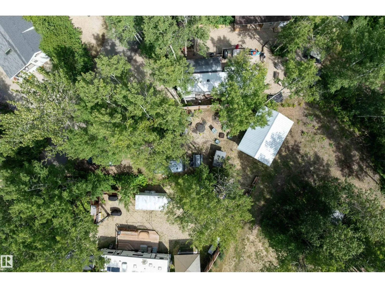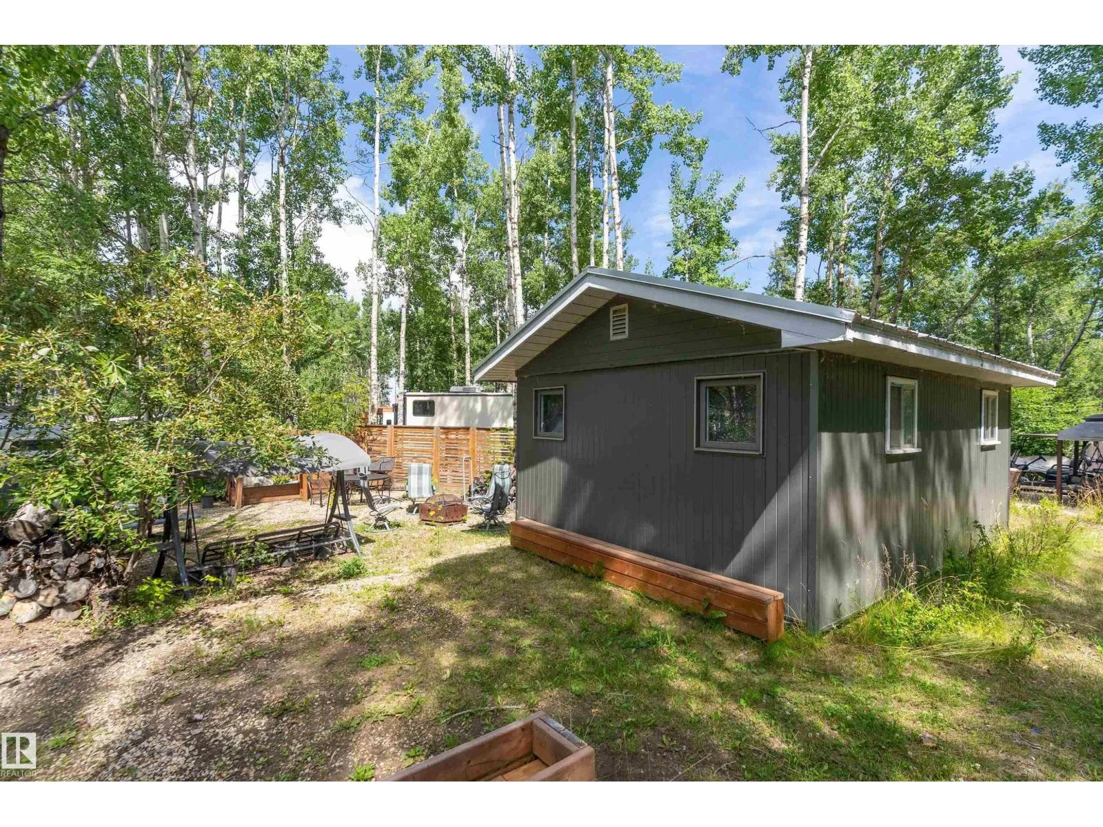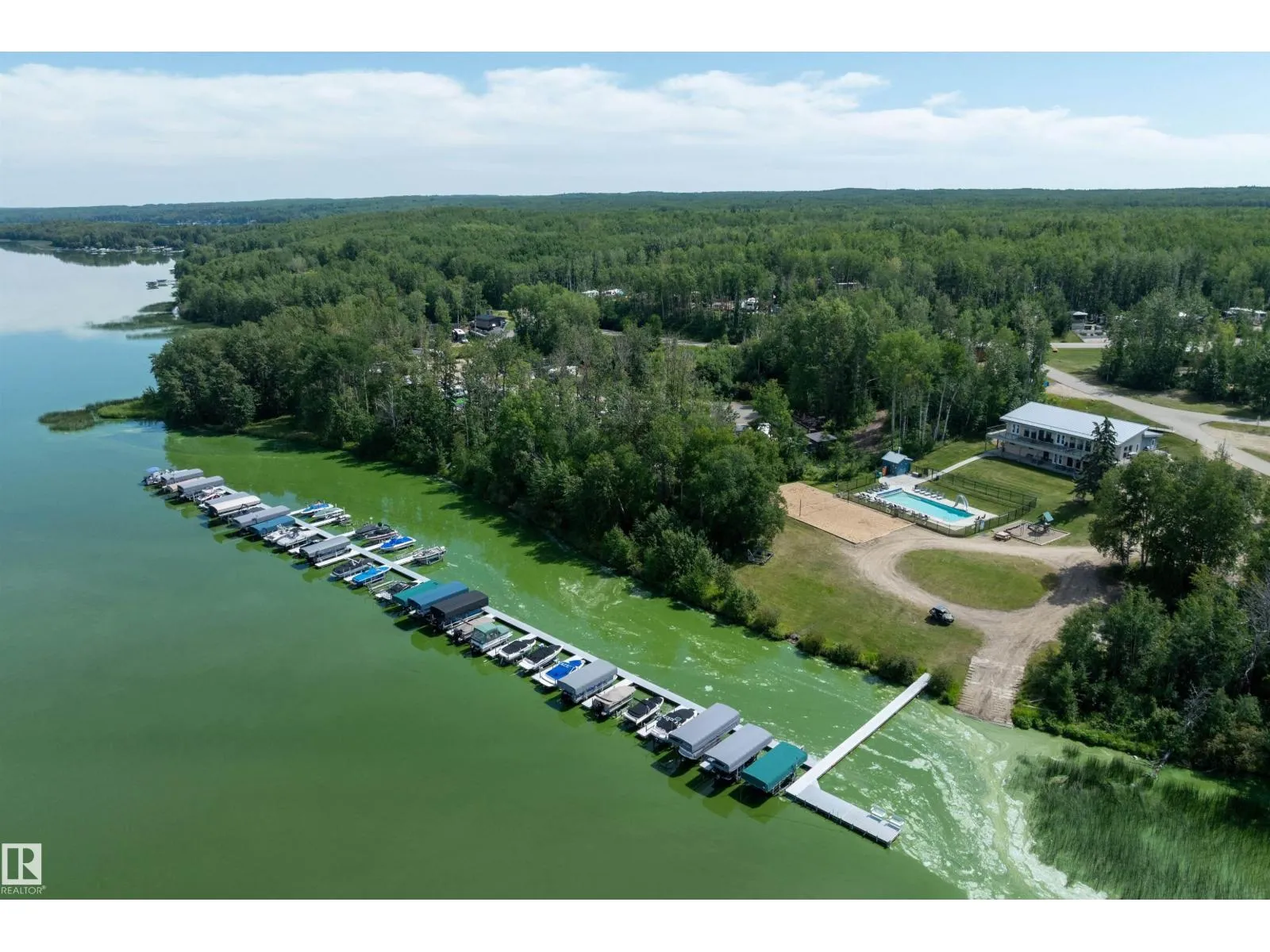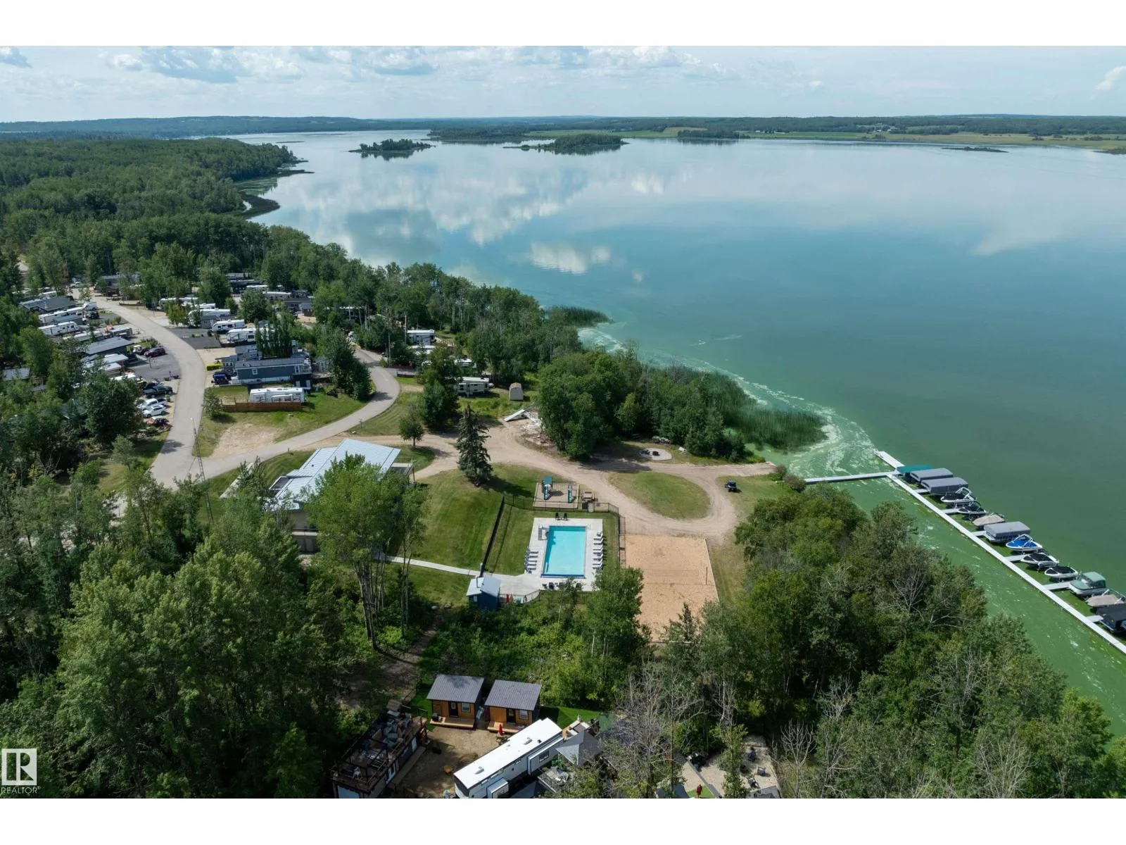 LAKE LOT at Sunset Shores RV Resort. Enjoy lake life at this beautiful community. Park your RV all year round nestled in the trees with a 14 x 20 bunkhouse- perfect for guests. Firepit area, fenced with flower beds and privacy. The lakefront year round community feature municipal water, sewer and power. There are paved roads throughout, clubhouse with a heated pool. Enjoy the gym, laundry, showers, public dock, private boat slips and boat launch. There are pickle ball courts, tennis and basketball courts. Trail system for beautiful nature walks. Easy commute back to Edmonton in 45 mins. (id:27476)