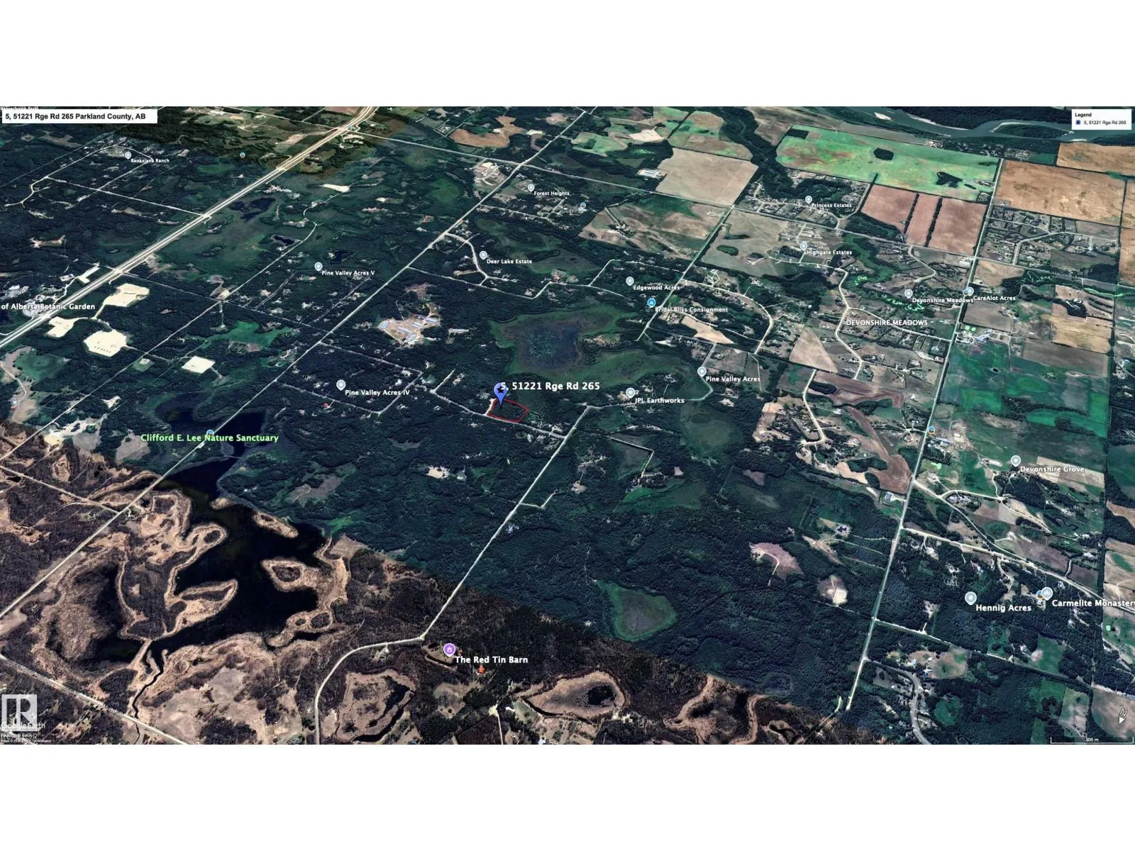 A rare find in Pine Valley Acres - only 10 min to Devon & 15 min to West Edmonton. A beautiful private / quiet / scenic Property featuring 5.9 acres of mature trees complete with an L shaped man made pond, road access on both the North & East side and backing onto a Crown Reserve land. This Property offers you a Blank Canvas to build your dream home. There is also plenty of space to have out buildings for the mechanic, hobbyist, small business owner or a personal retreat. For the nature and sport enthusiast you will enjoy the pond to watch ducks and other wildlife, and the trails for peaceful walks, biking and cross-country skiing. There is an existing road on the property with a circle drive c/w camping space & firepit. There is power on the property and gas lines at the property line. Great Property in a mature developed acreage subdivision with friendly neighbours. The property is also close the Clifford E. Lee Bird Sanctuary and the U.of A. Botonic Gardens. (id:27476)