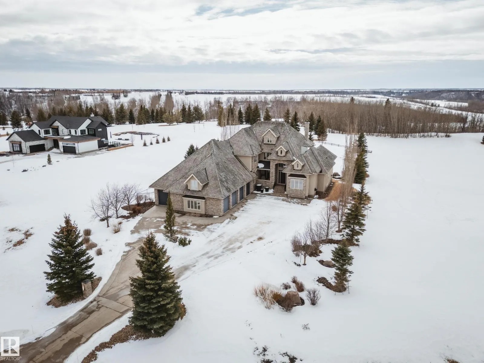 Luxury living in prestigious Blackhawk Estates, just 15 minutes southwest of Edmonton. Situated on a beautifully landscaped 1-acre lot, this exceptional two-storey home backs onto the North Saskatchewan River and fronts the 4th fairway of the renowned Blackhawk Golf Clubâhop in your golf cart and head to the course. Offering over 9,000 sq ft of living space with 6,041 sq ft above grade, the home features a main-floor primary retreat with spa-inspired ensuite and dual walk-in closets, plus a private office. Expansive living areas include a chefâs kitchen with dining area and cozy living room. A formal great room, wine cellar, and five fireplaces, including a wood-burning fireplace in the three-season room, add warmth and elegance. Upstairs offers 3 bedrooms plus a flex room, while the basement includes a theatre, gym, games area with mini hockey rink, rec room, and bedroom. A true car enthusiastâs dream, the 2,400 sq ft garage features vaulted ceilings and a wash bay. This is the best of acreage living! (id:27476)