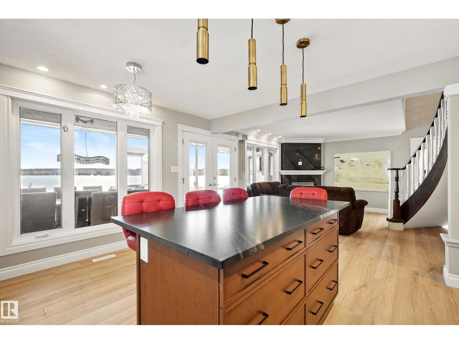 Welcome to the Summer Village of Lakeview! A private gated community on the edge of the Town Wabamun. This Freshly Renovated Four Seasons Lake House is situated on 50ft of picturesque lakefront. Located in the ever so calm Moonlight Bay, across from the Provincial Beach. The home is 1700sqft plus a two tired east facing sunroom, that provides a ton of extra living space. It features 4 Bedrooms, 3 Baths, and a meticulously upgraded main floor. Brand New Island Kitchen with Black Honed Granite Countertops. Dual color shaker cabinets and water resistant laminate flooring throughout the home, bring about a modern feel with warm summer vibes. Massive Primary Bedroom with a Sunroom Balcony, to stay warm with panoramic Lake Views. Three more additional bedrooms provide ample space for guests. Spacious lakefront patio and tons of parking for cars and boats. Oversized Double Attached Garage. Located in a Cul de Sac with walking paths in each direction. Steps from Wabamun Town but within a tranquil quiet Community! (id:27476)