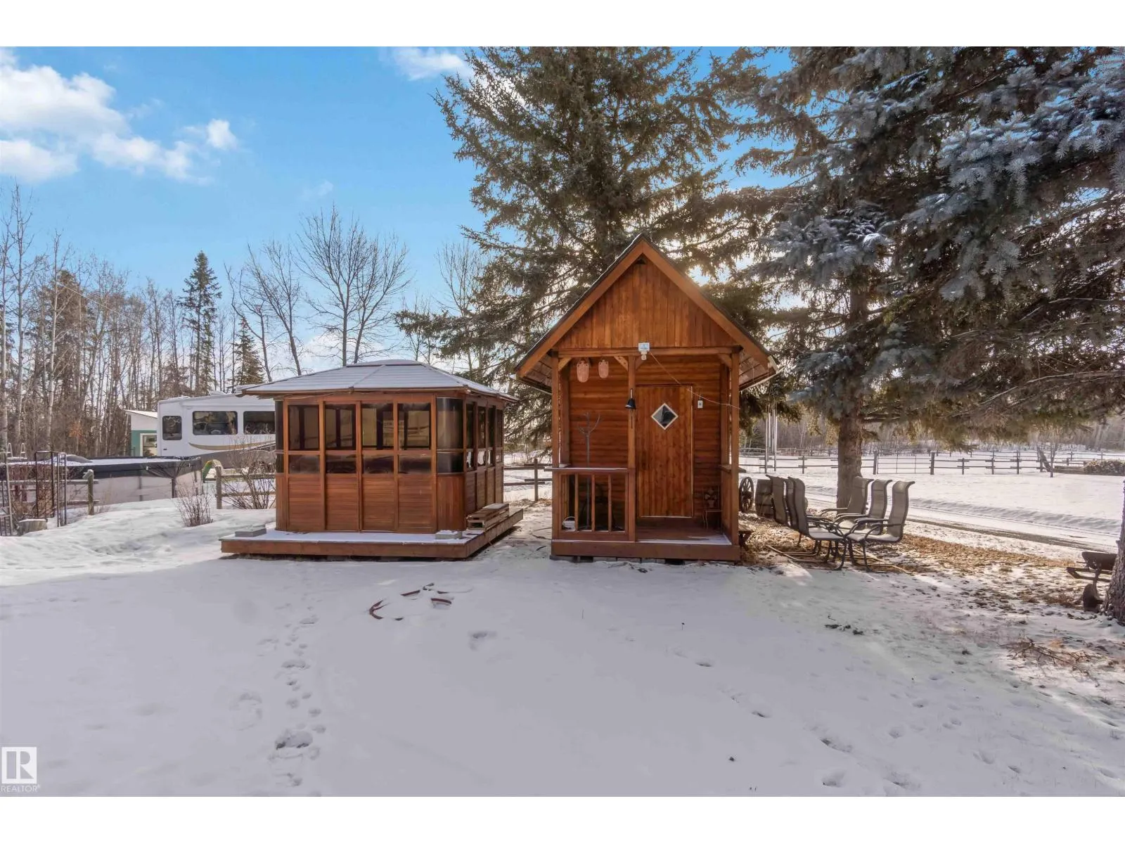 69.55 ACRES! AMAZING 2008 BUILT HOME! SHOP! WELCOME TO 52306 RANGE ROAD 22. THE CUSTOM MODULAR HOME HAS ALMOST 1500 SQ FT OF LIVING SPACE, 3 BEDROOMS, AND 2 BATHS. THE VAULTED KITCHEN HAS MAPLE CABINETRY, STAINLESS STEEL APPLIANCES, A BUILT IN OVEN, COUNTERTOP INDUCTION STOVE, A HUGE WALK-IN PANTRY, SKYLIGHTS, AND AN L-SHAPED RAISED EATING BAR ISLAND. DINING AREA IS OPEN TO KITCHEN WITH CERAMIC TILE FLOORING. LIVING ROOM ALSO HAS VAULTED CEILINGS, A WOOD BURNING FIREPLACE, BUILT IN CEILING SPEAKERS, AND TILE FLOORS. PRIMARY BEDROOM IS KING-SIZED WITH DOUBLE CLOSETS. 4-PIECE ENSUITE HAS A JETTED TUB AND SEPARATE SHOWER. HOME ALSO HAS 2 ADDITIONAL BEDROOMS, A FULL MAIN BATH, LAUNDRY ROOM, CENTRAL AC AND HOT WATER ON DEMAND. SHOP/GARAGE (46X36') FITS 6 VEHICLES, IS INSULATED, AND HAS 5 DOORS. PROPERTY ALSO HAS A POLE SHED BARN. WATER SUPPLY IS DRILLED WELL.SEPTIC IS TANK/DISCHARGE. LAND IS PARTIALLY TREED WITH ROLLING TOPOGRAPHY, POWERED RV PARKING PADS,FENCED, PRIVATE, HORSE READY, AND HAS HAY. (id:27476)