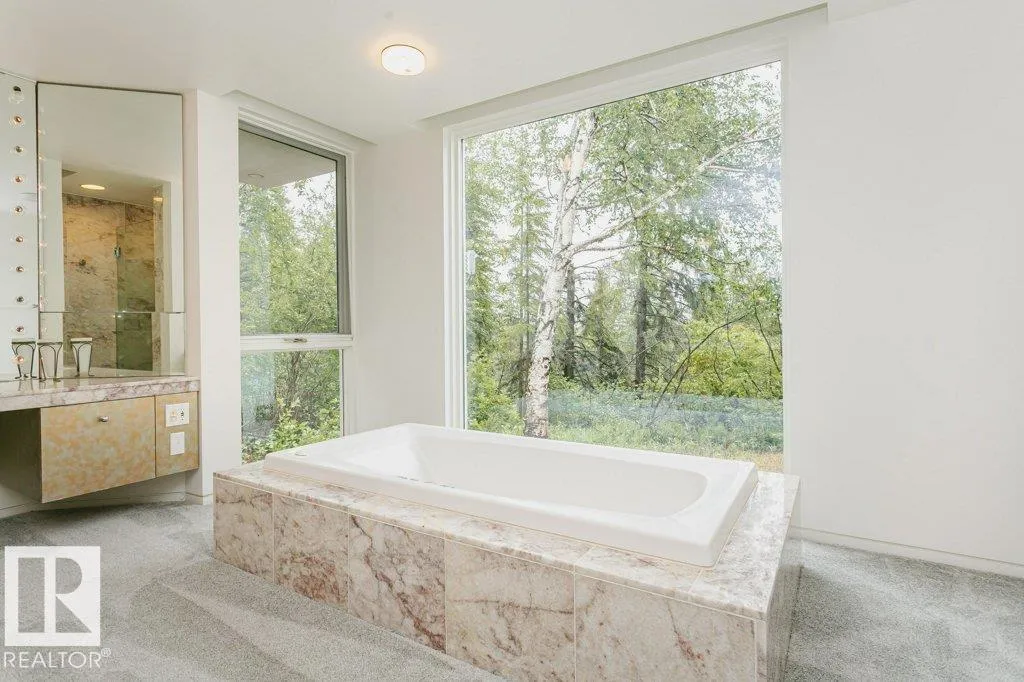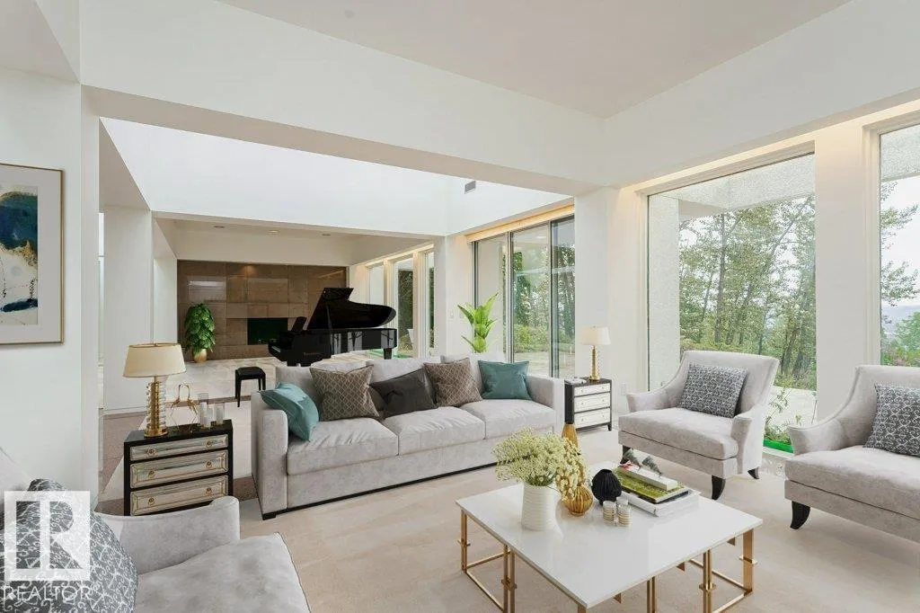 Perched on a peak overlooking the North Saskatchewan river, nestled on 4.87 acres of well treed for privacy this mid century modern design is a rare estate find optimum serenity and privacy. With 5570 sq ft of total finished space, main floor 3,163 sq ft bungalow plus fully finished basement its the ideal live work environment. One of Parkland Countyâs most stunning estate properties. Offering a total of 4 bedrooms and 4 bathrooms indoor lap pool 3 car garage with stunning exterior entertaining spaces on approx. 4.87 acres with river and river valley views. Lower level partial walkout is perfectly suited for the pool and yard. This timeless architecturally inspired private estate with custom design features nestled minutes from Blackhawk Golf and Country & the Petroleum Club provides an extraordinary sanctuary with room for growth and development. Take the drive and discover this rare small collection of exceptional estates. Room to grow and add more space. Minutes to West Edmonton. It's perfect! (id:27476)
