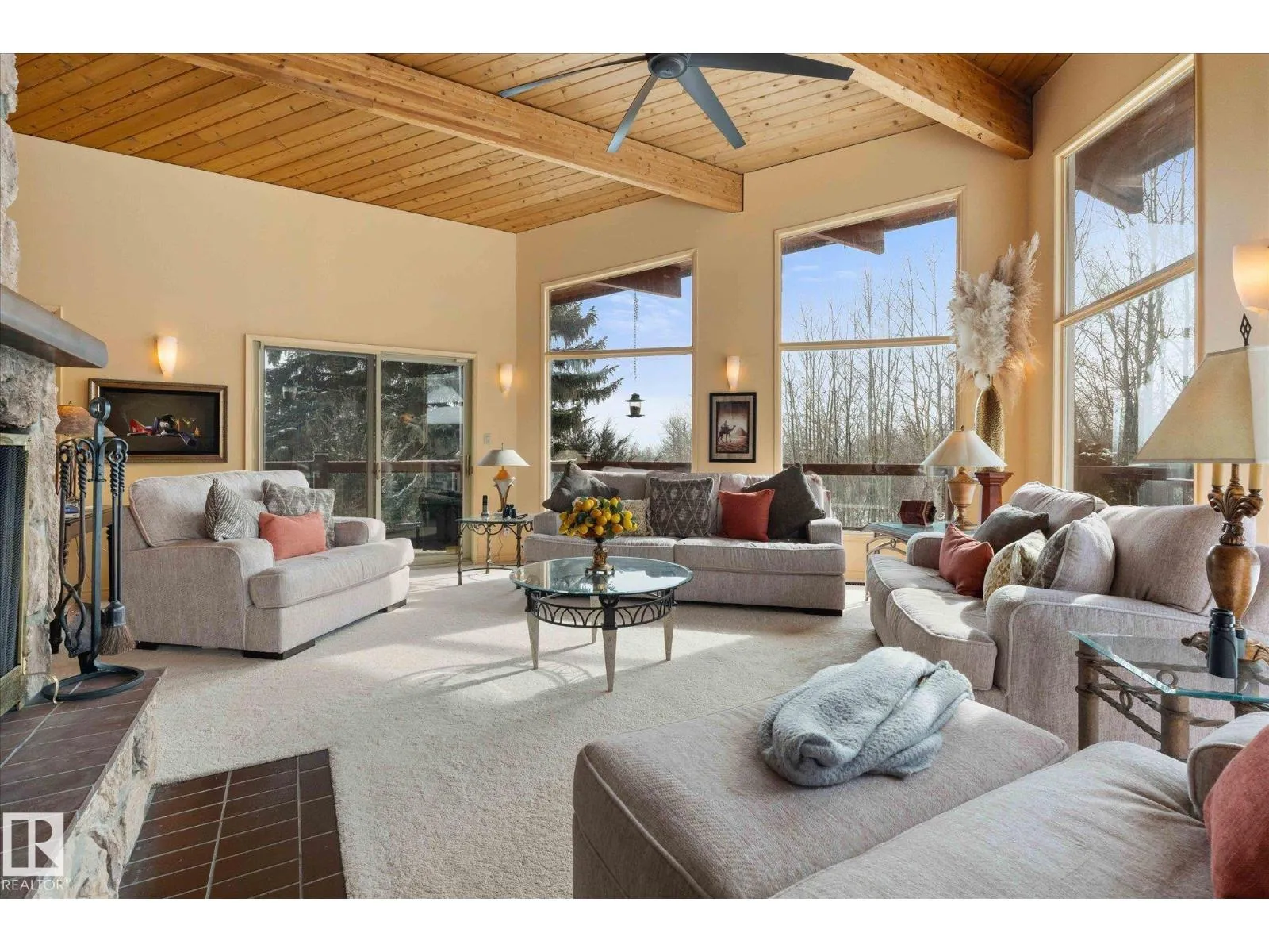 JUST 6 KMS FROM STONY PLAIN SITS THIS INCREDIBLE CUSTOM BUILT HOME ON 17.8 ACRES! Not only is it SET UP for horses, it offers peace, tranquility, views, wildlife, serenity and location! Many updates done over the years including house shingles (2016), garage roof (2022), septic tanks (2014), house exterior re-stained, barn painted, downstairs bathroom redone, kitchen spruce up including gorgeous granite countertops! The main floor offers a gorgeous and cozy living room surrounded by large windows with a wonderful wood burning fireplace. The Chefs kitchen boasts many extras such as a food warmer, sub zero fridge, wine cooler and double ovens plus a top of the line stove! The bright primary bedroom offers great views and door to deck! The lower level in this walk up has 2 bedrooms, a living room with fireplace, 3 pc bath, sitting area, laundry and cold rooms. The land is rolling and partly treed! The barn is perfect and offers storage on top! Hot tub, gazebo, decks - the list is too long! Must be seen! (id:27476)