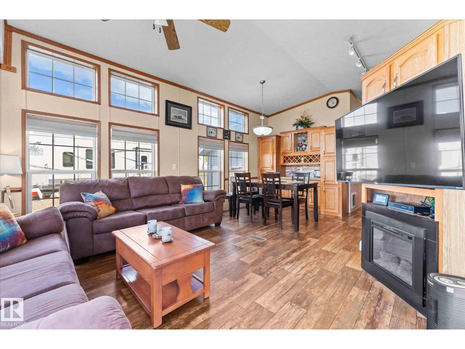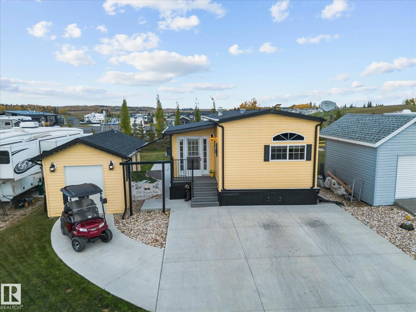 Are you ready for the vacation lifestyle, in one of a handful of 4-SEASON park models at the stunning Trestle Creek Golf Resort? This sunny unit, located in Phase 5 â Magnolia Hills, is turn-key & ready for its new owner! Outside, the beautifully landscaped & paved 45 x 100 ft lot features a fantastic 10âx14â storage shed for all your toys, side porch & firepit area. Step inside to find a spacious mudroom with plenty of storage. As you venture further into the home, you will find a 4-piece bath & the large primary bedroom - previously 2 bedrooms, which can be divided to suit your needs. The kitchen, with plenty of storage features a black appliance package including a gas range. The highlights of the main living space include soaring windows, high ceilings, a built-in buffet, cozy fireplace & a west facing sliding glass patio door. The year-round amenities and events at Trestle Creek are endless, from the Water Park, to the Walking Trails, to the Restaurant & Pro Shop â youâll love resort living! (id:27476)