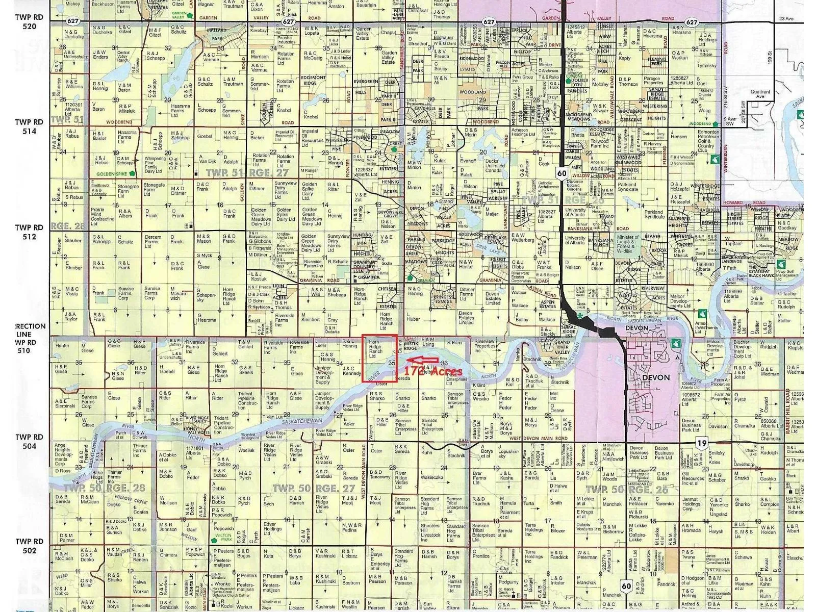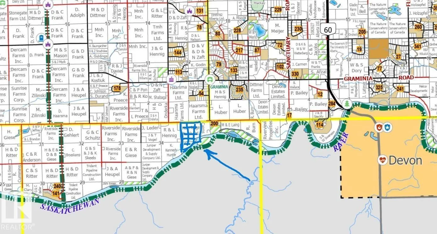 This 172 acres is just 1 mile south of the Graminia Community School and would very suitable for an River View Estate home or a Country Residential Development. The land is on the bank of the North Saskatchewan River with almost a mile of river frontage with trails down into the valley and onto the island and to the rivers edge. The 172 acres is presently used as agriculture with about 100 acres in grain production and the balance 72 acres is the river bank, a small creek and Island is naturally treed. There is a trail down the bank for river access. There are several spectacular building sites with river views. This would be a great property for future Recreation uses. The property is fenced on 3 sides. There are 2 access points to this property both only 1 mile from the pavement on Graminia Road. (id:27476)