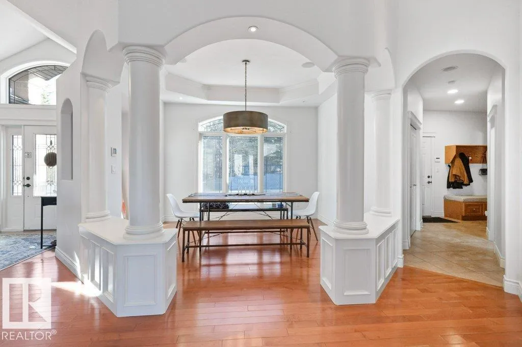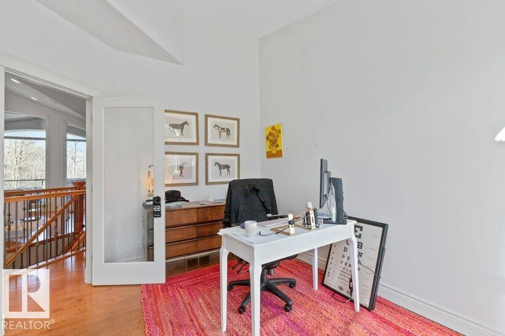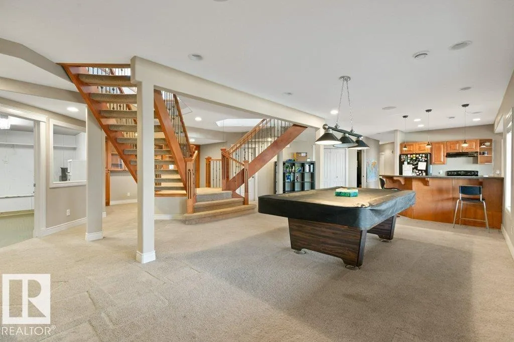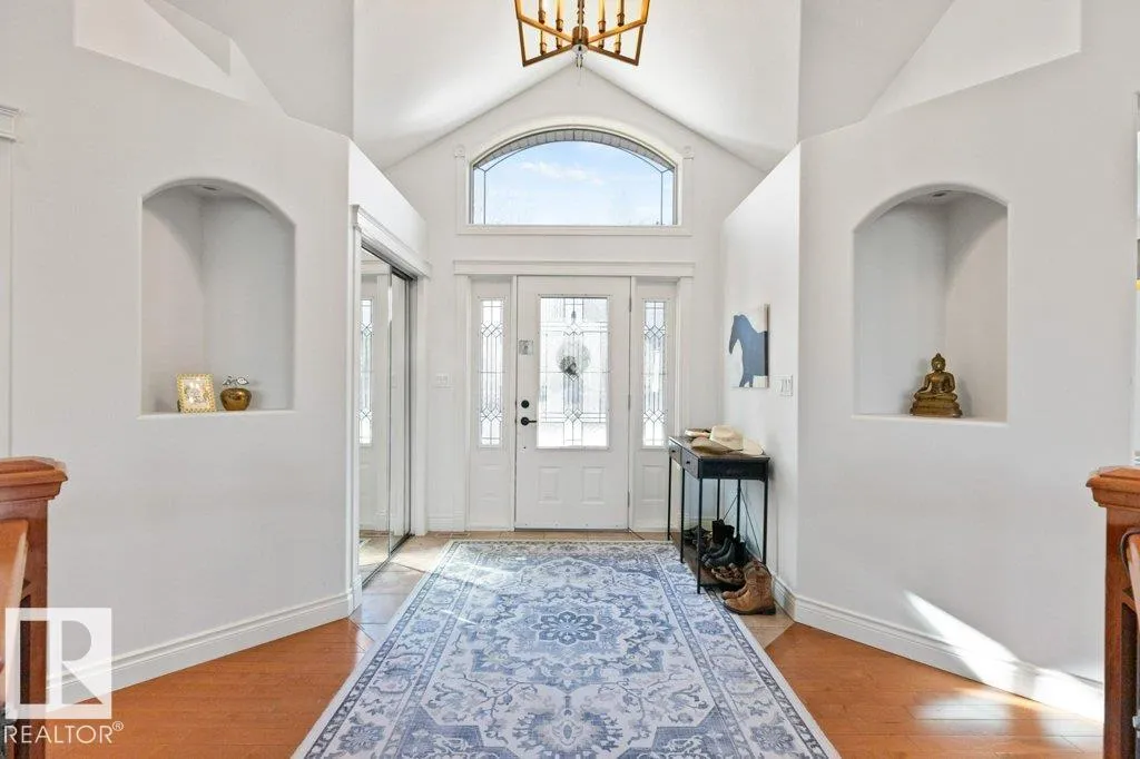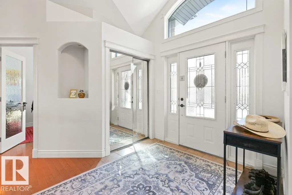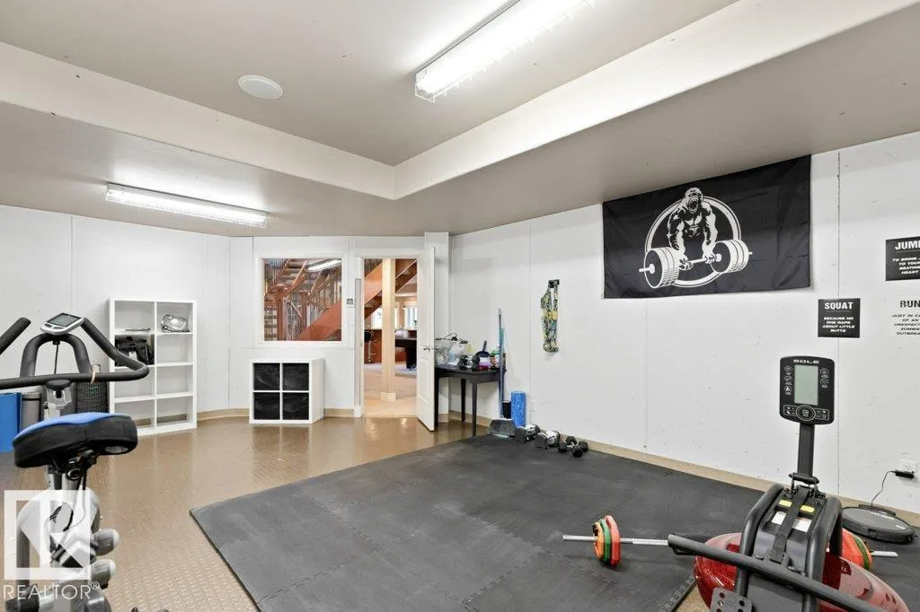 Discover an exquisite executive custom bungalow nestled on 2.45 treed acres, just minutes from Edmonton. This stunning home features soaring ceilings and expansive windows that highlight the beautiful grounds, creating a bright and inviting atmosphere. The main floor, expertly renovated by Weaver Design, boasts a chef-style kitchen w/ updated cabinetry, granite countertops, & stainless steel appliances. Enjoy seamless entertaining in the open-concept living room, formal dining area, & family room. The primary suite is a serene retreat with a fireplace, deck access, & a reno'd spa-inspired ensuite w/ a walk-in closet. Also includes a second bedroom, office, laundry, & bathroom leading to a hot tub. The fully finished basement offers 3 more bedrooms, a full kitchen, games & theater rooms, exercise area, & bathrooms. Both levels access 4 car garage w/ infloor heat. Outside, relax around the firepit or on the expansive deck & patio, complementing the luxurious indoor spaces & exceptional location. (id:27476)