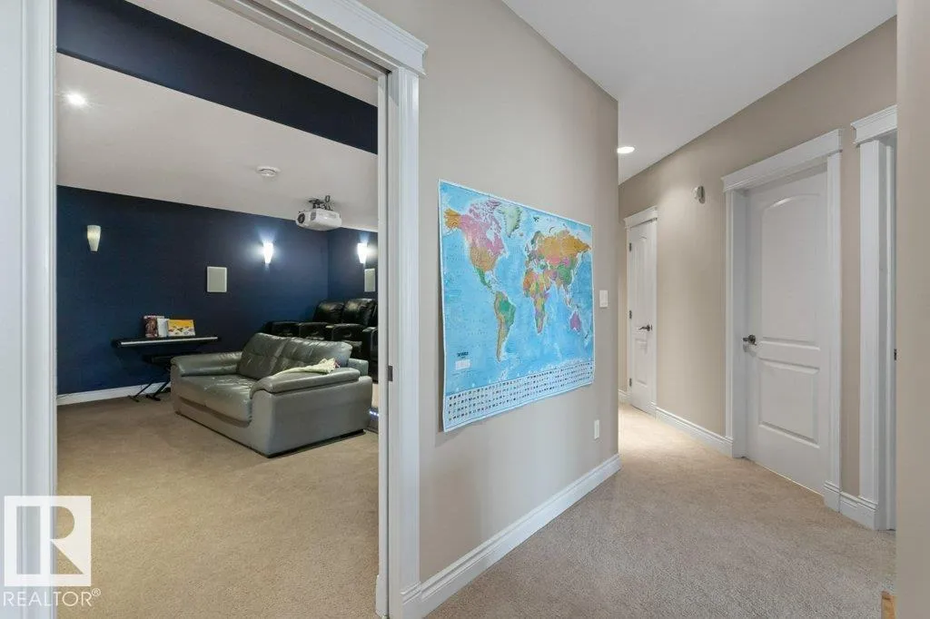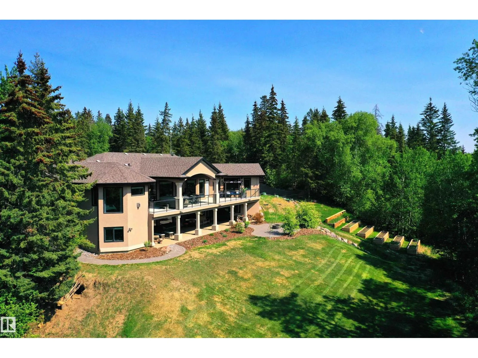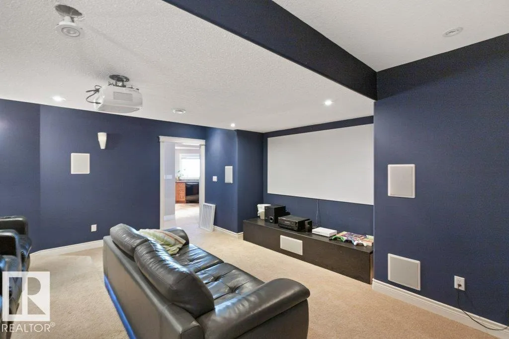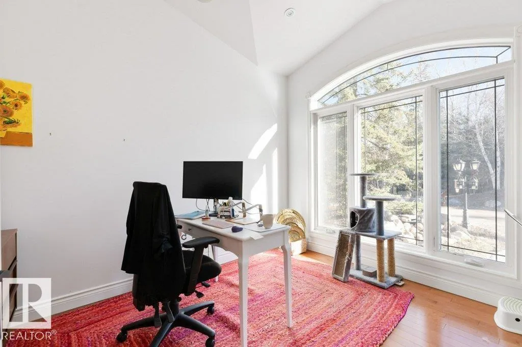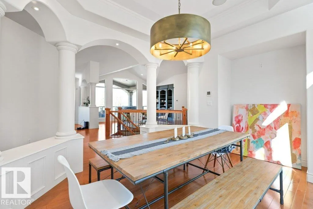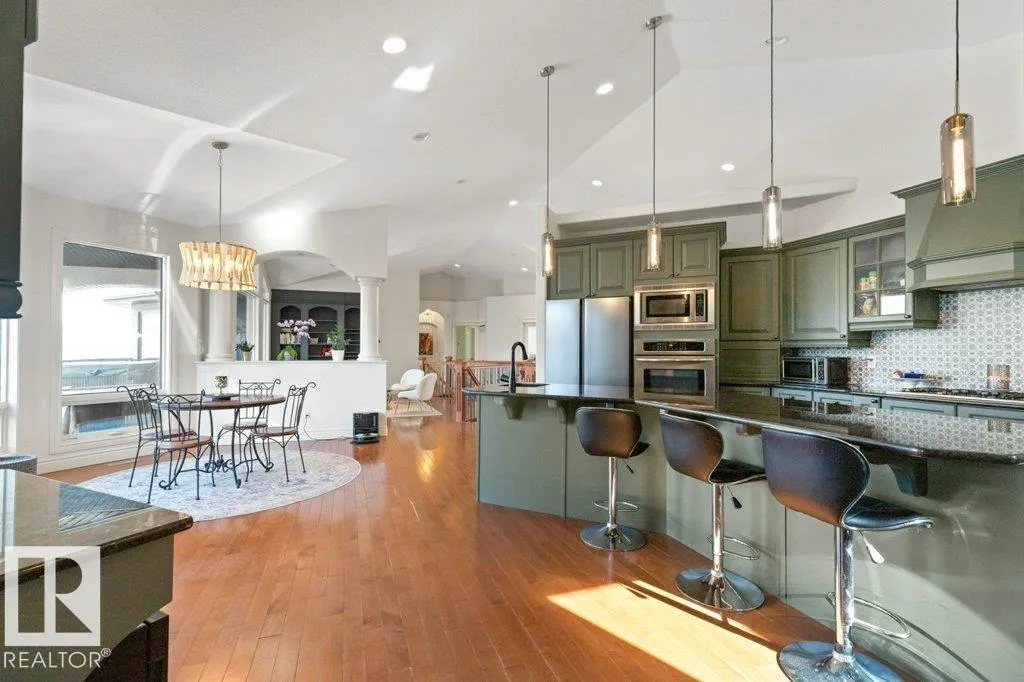Discover an exquisite executive custom bungalow nestled on 2.45 treed acres, just minutes from Edmonton. This stunning home features soaring ceilings and expansive windows that highlight the beautiful grounds, creating a bright and inviting atmosphere. The main floor, expertly renovated by Weaver Design, boasts a chef-style kitchen w/ updated cabinetry, granite countertops, & stainless steel appliances. Enjoy seamless entertaining in the open-concept living room, formal dining area, & family room. The primary suite is a serene retreat with a fireplace, deck access, & a reno'd spa-inspired ensuite w/ a walk-in closet. Also includes a second bedroom, office, laundry, & bathroom leading to a hot tub. The fully finished basement offers 3 more bedrooms, a full kitchen, games & theater rooms, exercise area, & bathrooms. Both levels access 4 car garage w/ infloor heat. Outside, relax around the firepit or on the expansive deck & patio, complementing the luxurious indoor spaces & exceptional location. (id:27476)
