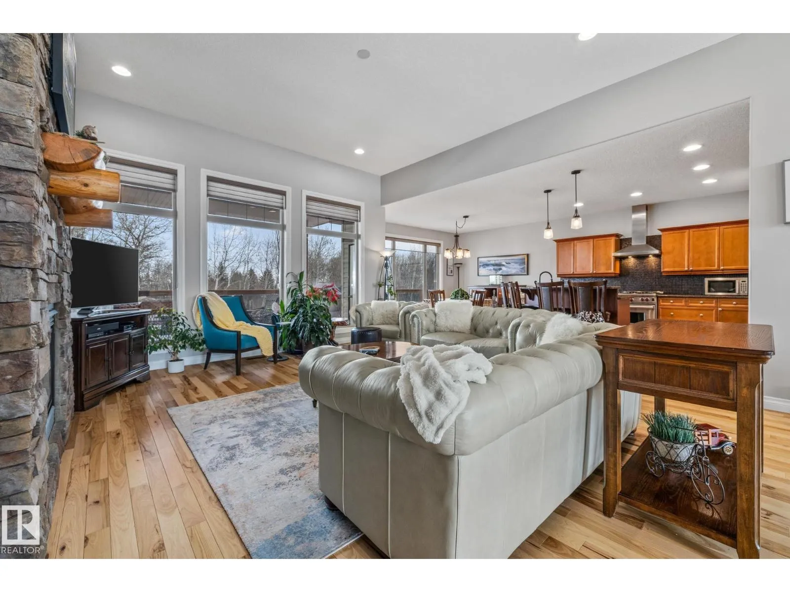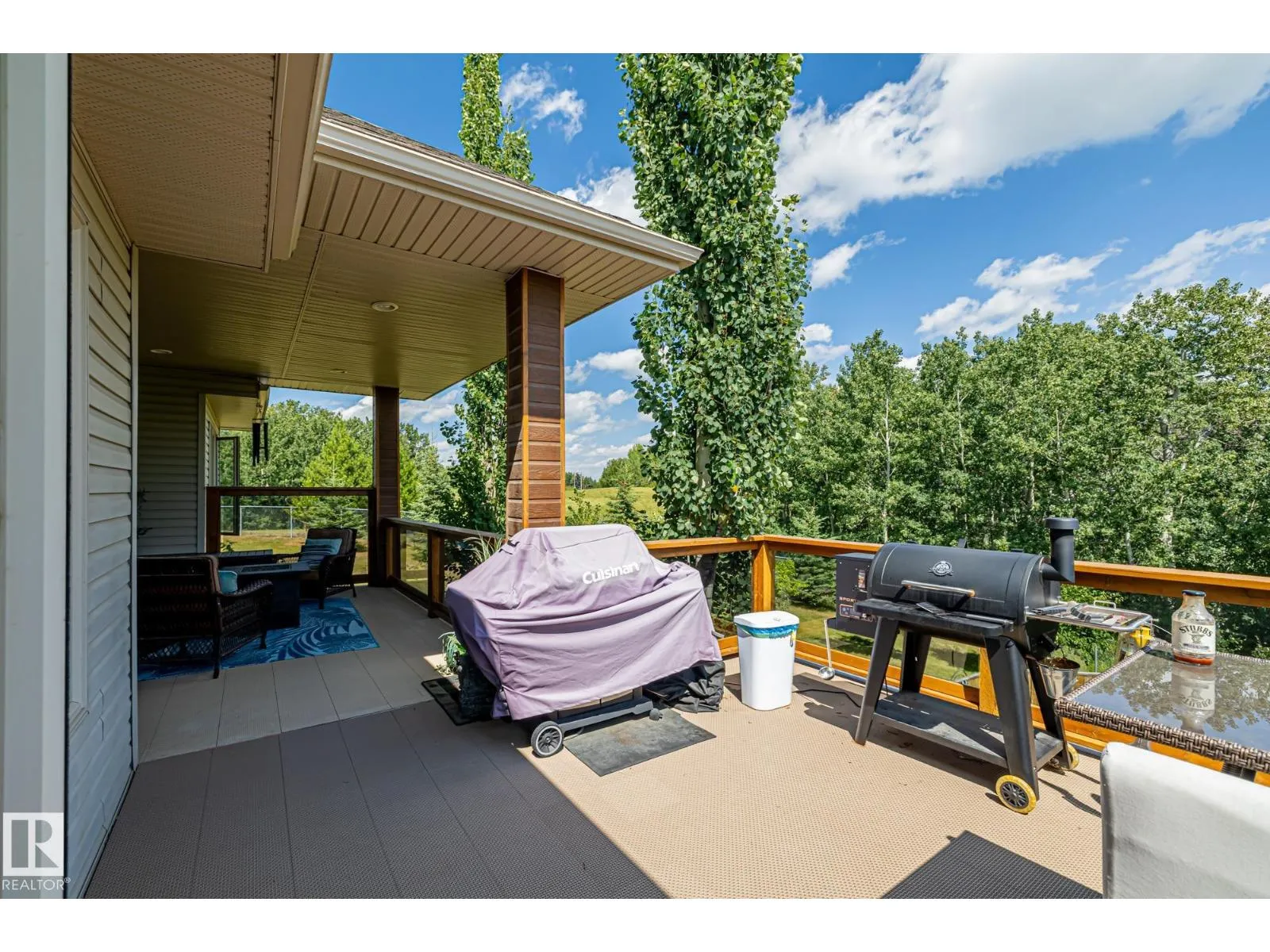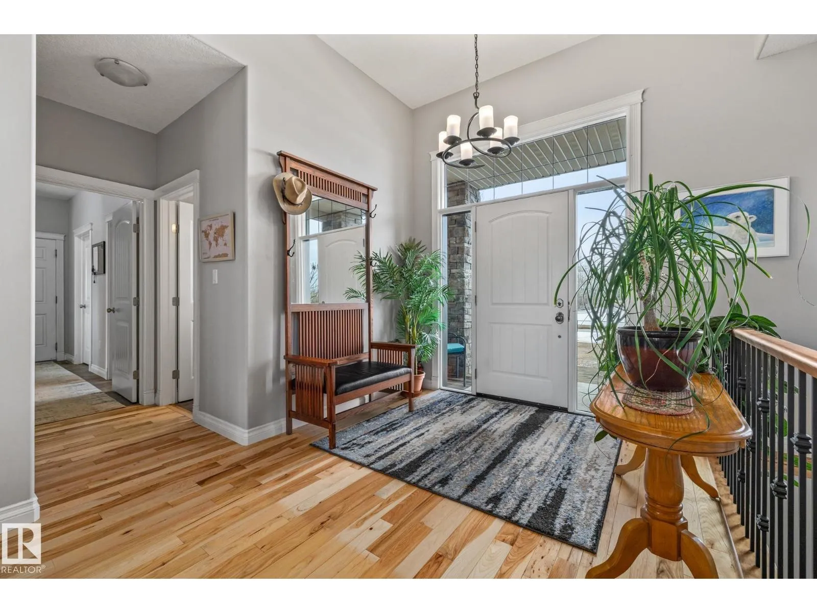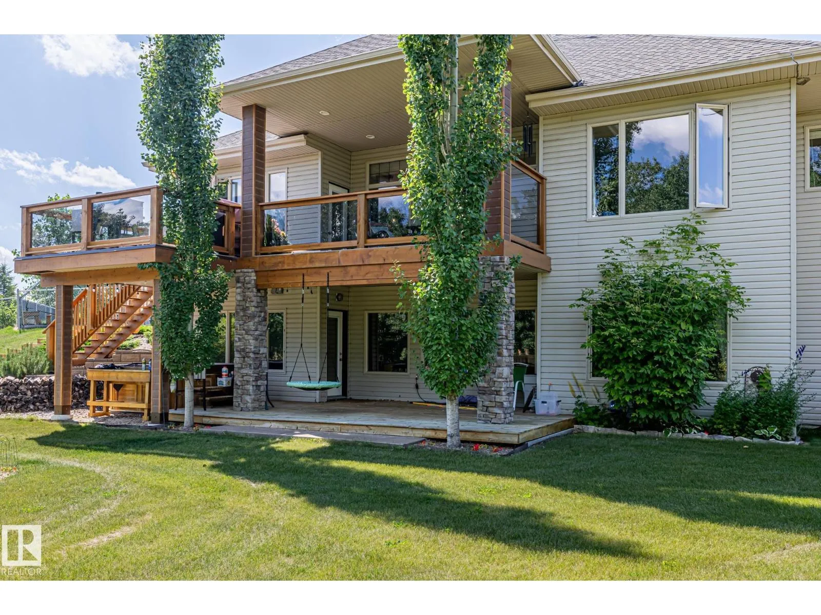 Welcome to this beautifully landscaped and updated walkout bungalow just minutes from Stony Plain. Complete with A/C, a triple attached garage, and a fully equipped shop, this property is ideal for both space and tranquility. Step inside to a bright, open concept main floor featuring an abundance of natural light and a stunning floor to ceiling stone fireplace as the focal point of the living area. New hardwood flooring flows seamlessly to the kitchen and dining space, complete with a covered back deck, perfect for entertaining. The private backyard is a true retreat, showcasing raised garden beds, mature fruit trees, and a relaxing hot tub. The spacious primary suite offers a beautifully renovated ensuite with in-floor heat, stand up shower a luxurious tub. The fully finished walkout basement features a large rec room with bar area, two additional bedrooms, a den, and 4 pc bath. Triple attached garage and a detached shop offer ultimate space for vehicles, toys, and projects, luxury acreage living! (id:27476)