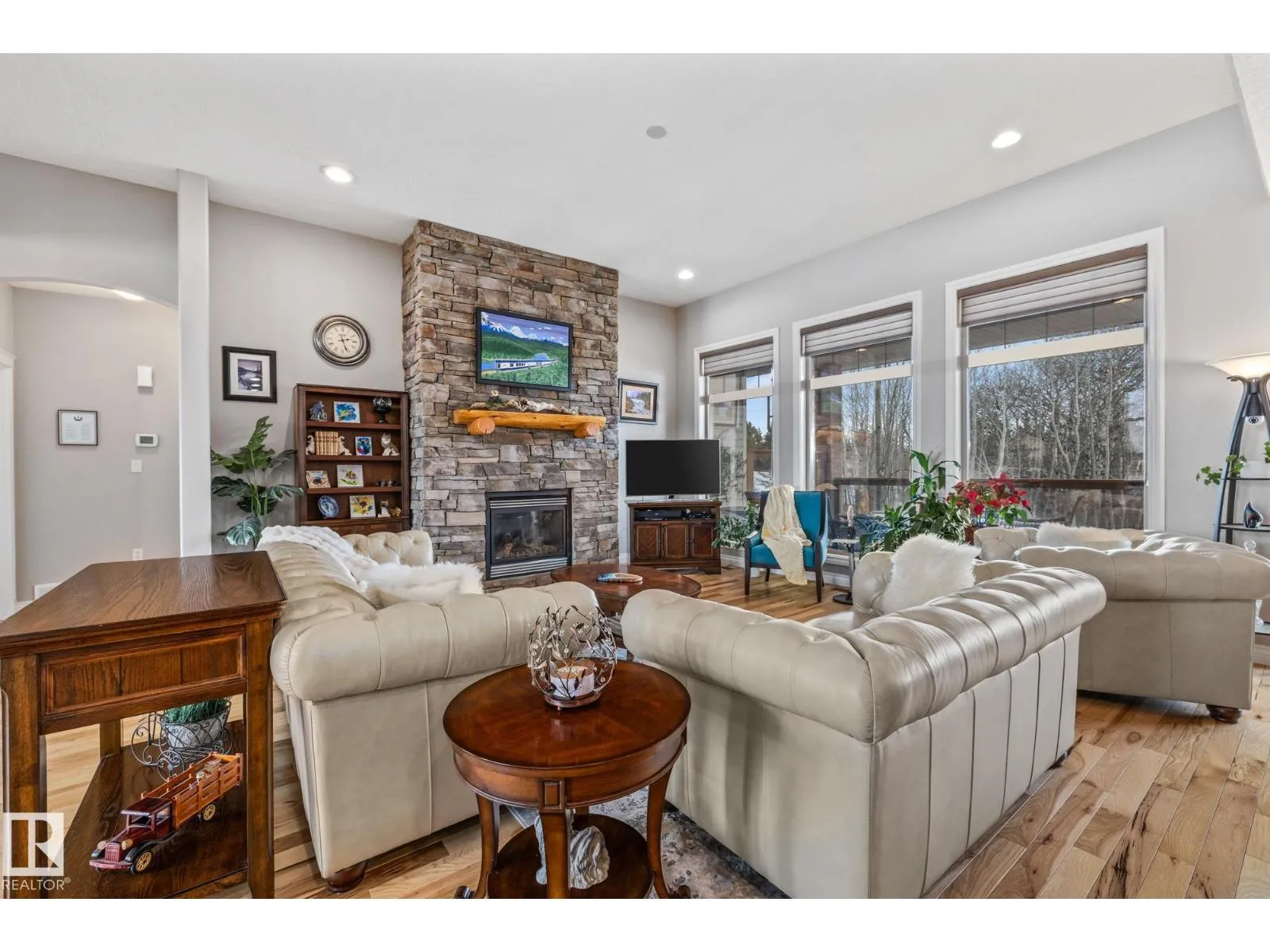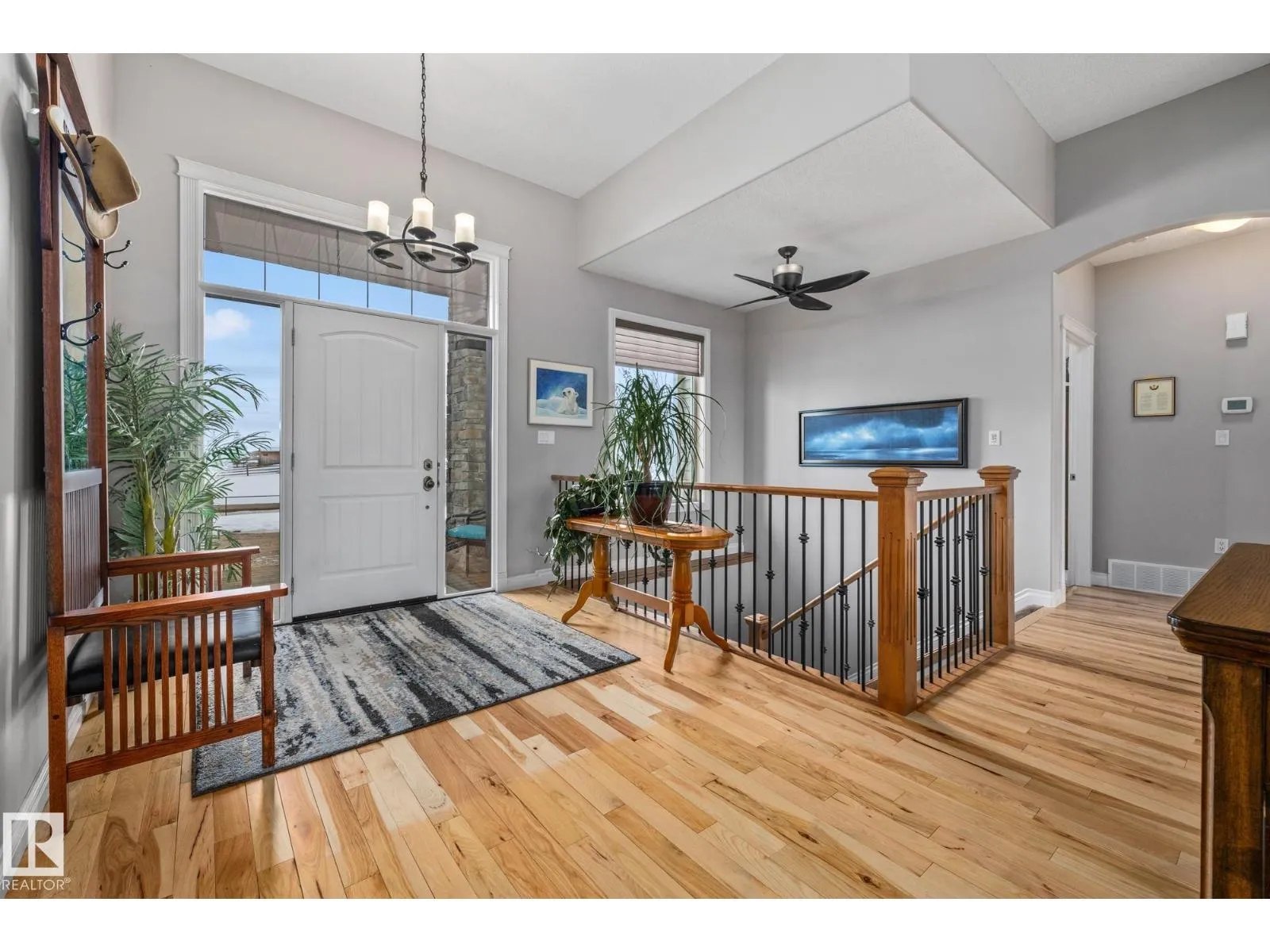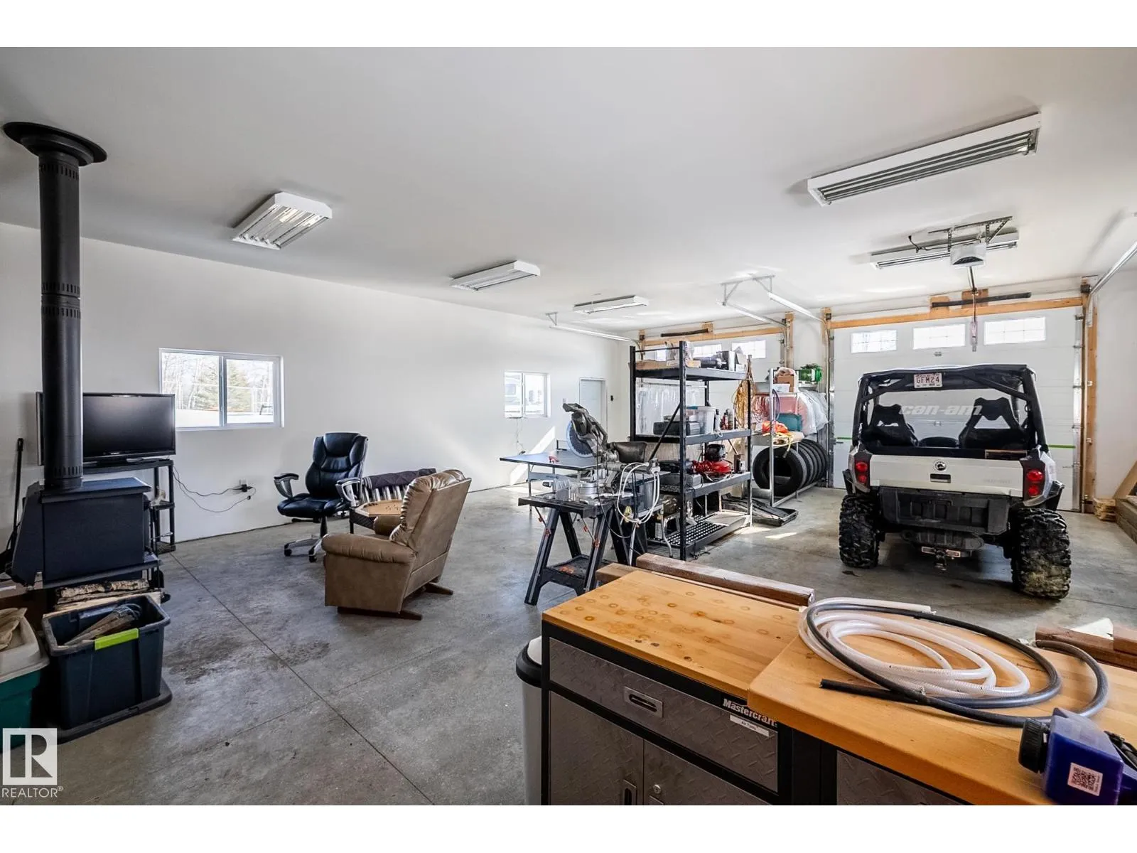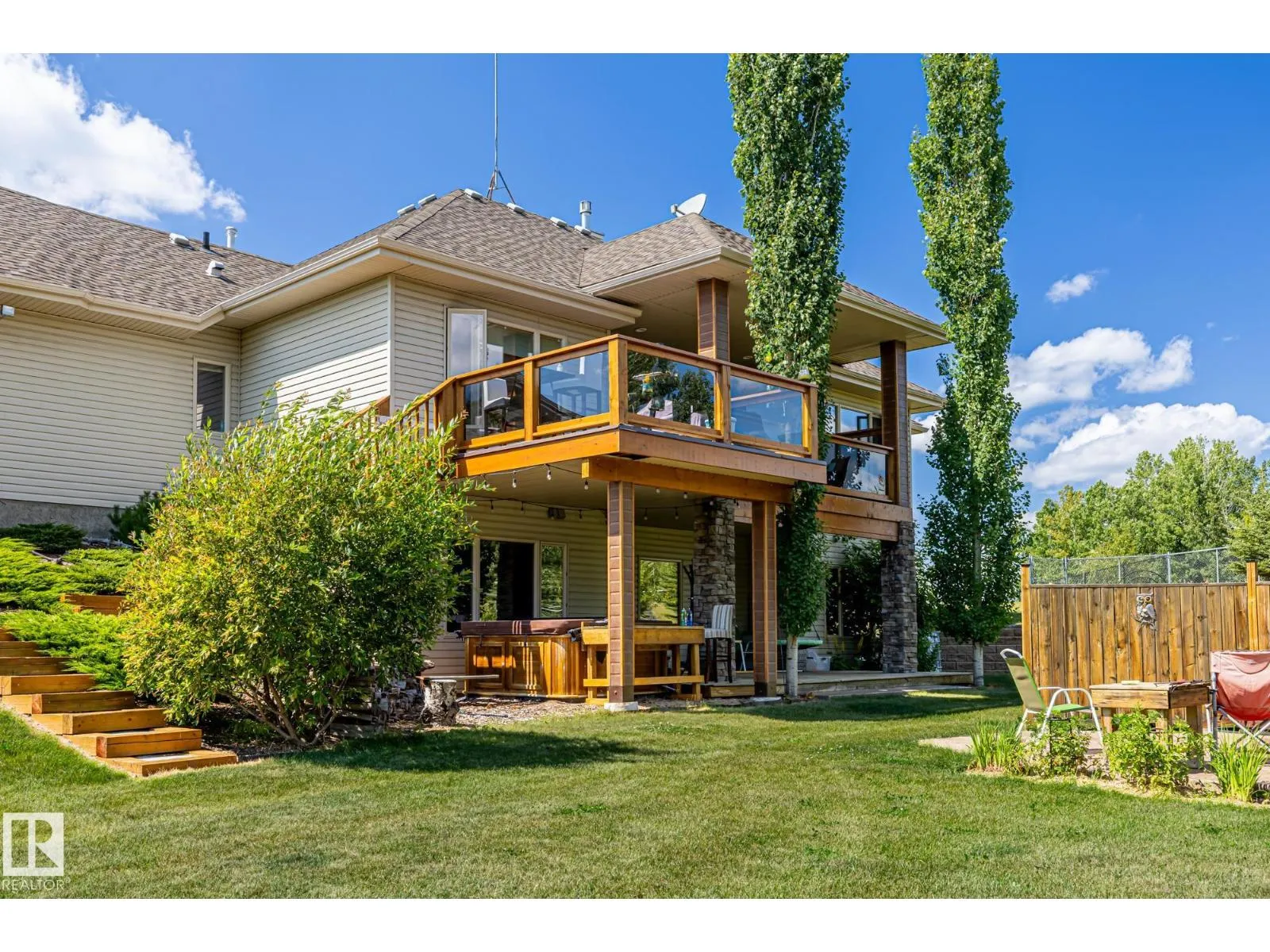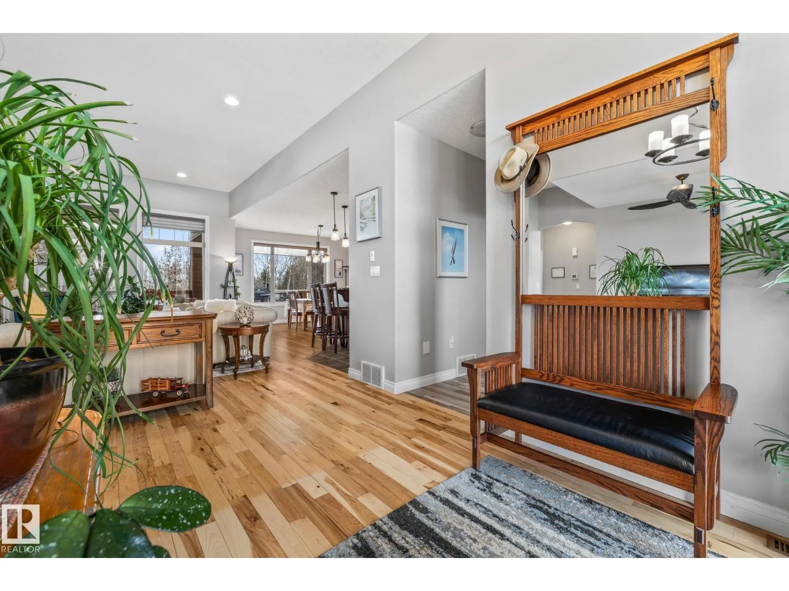 Welcome to this beautifully landscaped and updated walkout bungalow just minutes from Stony Plain. Complete with A/C, a triple attached garage, and a fully equipped shop, this property is ideal for both space and tranquility. Step inside to a bright, open concept main floor featuring an abundance of natural light and a stunning floor to ceiling stone fireplace as the focal point of the living area. New hardwood flooring flows seamlessly to the kitchen and dining space, complete with a covered back deck, perfect for entertaining. The private backyard is a true retreat, showcasing raised garden beds, mature fruit trees, and a relaxing hot tub. The spacious primary suite offers a beautifully renovated ensuite with in-floor heat, stand up shower a luxurious tub. The fully finished walkout basement features a large rec room with bar area, two additional bedrooms, a den, and 4 pc bath. Triple attached garage and a detached shop offer ultimate space for vehicles, toys, and projects, luxury acreage living! (id:27476)