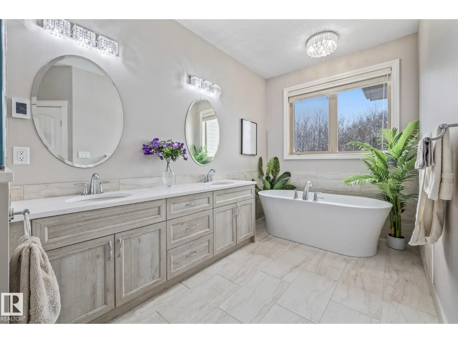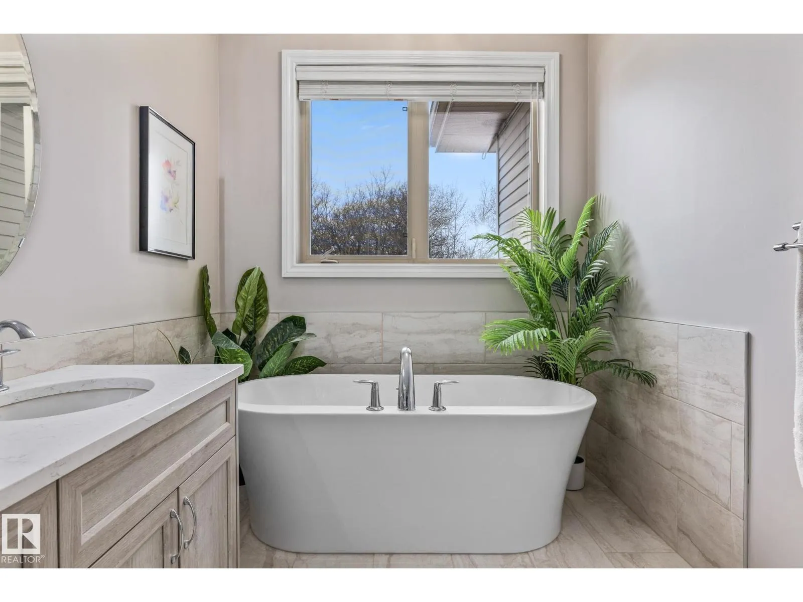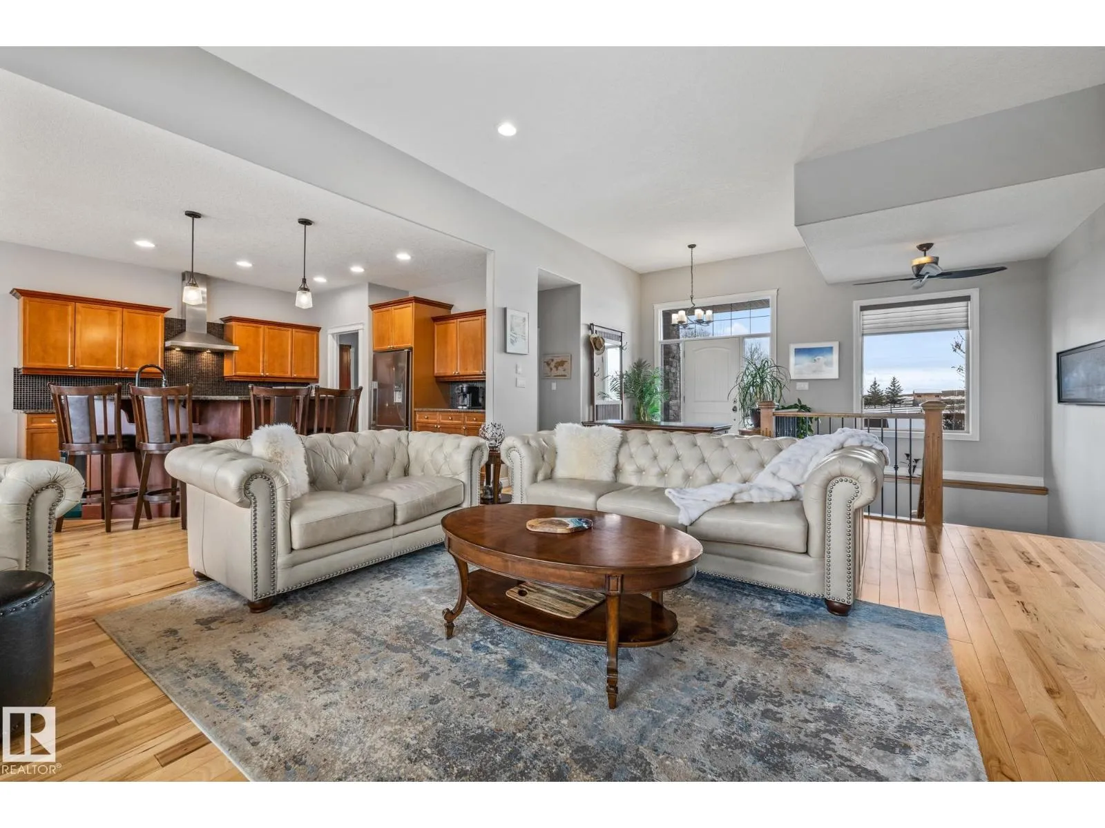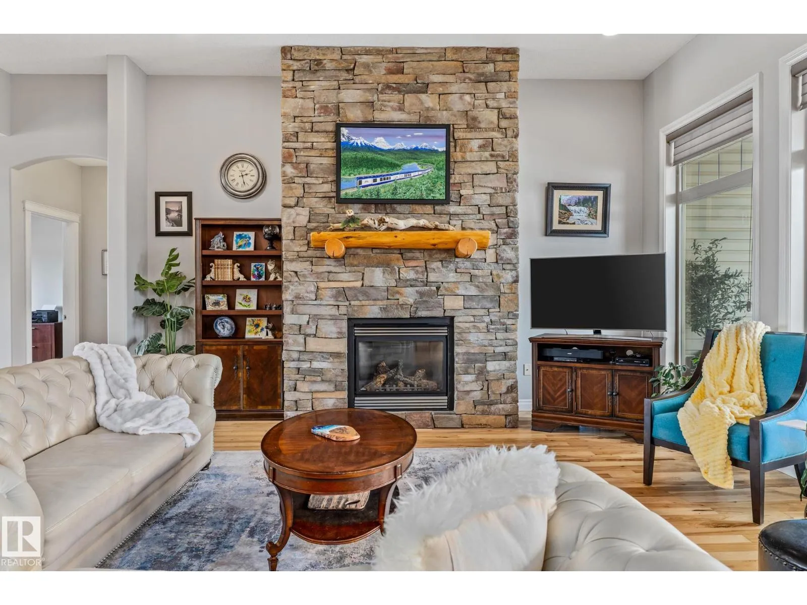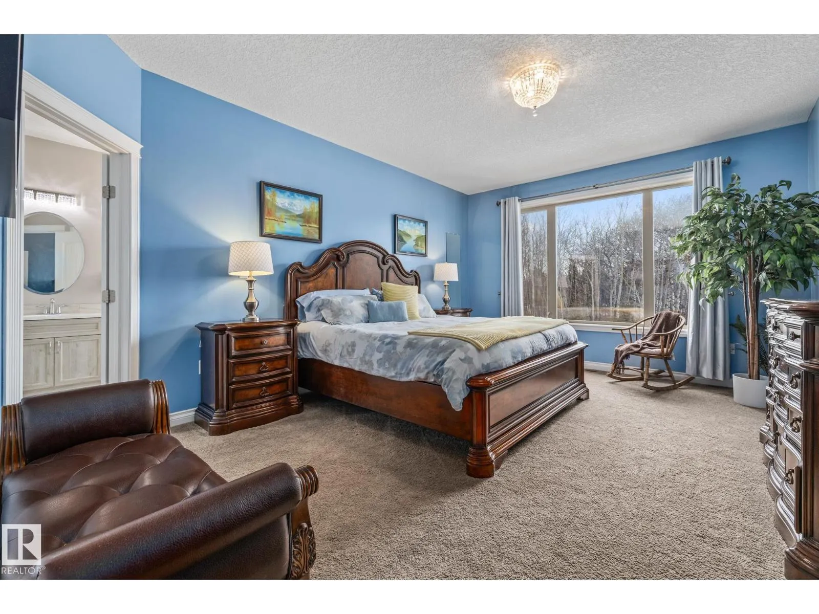 Welcome to this beautifully landscaped and updated walkout bungalow just minutes from Stony Plain. Complete with A/C, a triple attached garage, and a fully equipped shop, this property is ideal for both space and tranquility. Step inside to a bright, open concept main floor featuring an abundance of natural light and a stunning floor to ceiling stone fireplace as the focal point of the living area. New hardwood flooring flows seamlessly to the kitchen and dining space, complete with a covered back deck, perfect for entertaining. The private backyard is a true retreat, showcasing raised garden beds, mature fruit trees, and a relaxing hot tub. The spacious primary suite offers a beautifully renovated ensuite with in-floor heat, stand up shower a luxurious tub. The fully finished walkout basement features a large rec room with bar area, two additional bedrooms, a den, and 4 pc bath. Triple attached garage and a detached shop offer ultimate space for vehicles, toys, and projects, luxury acreage living! (id:27476)