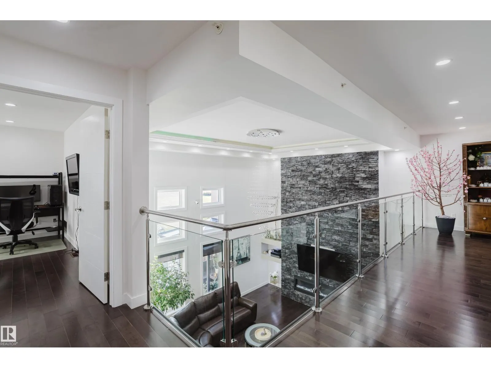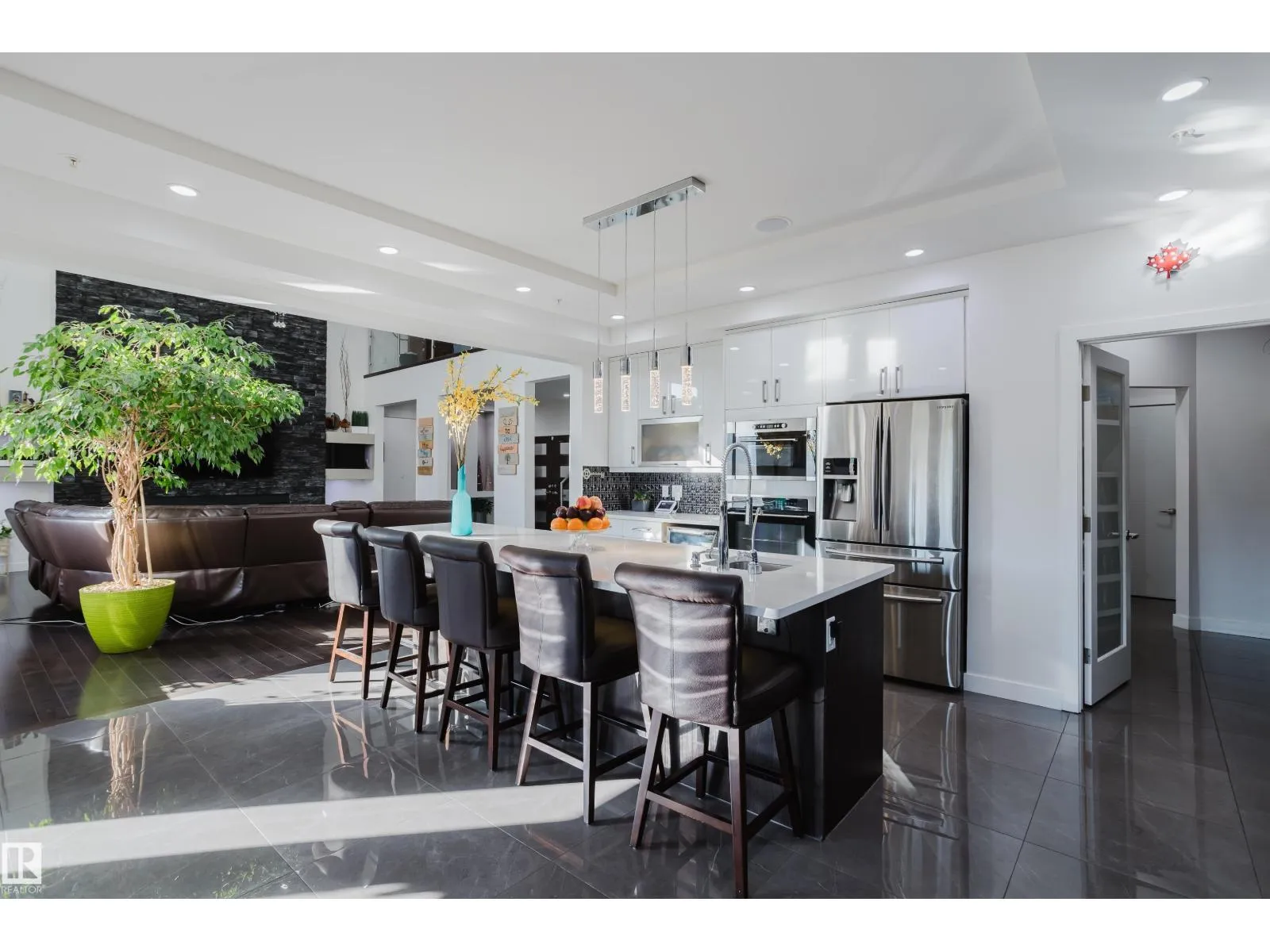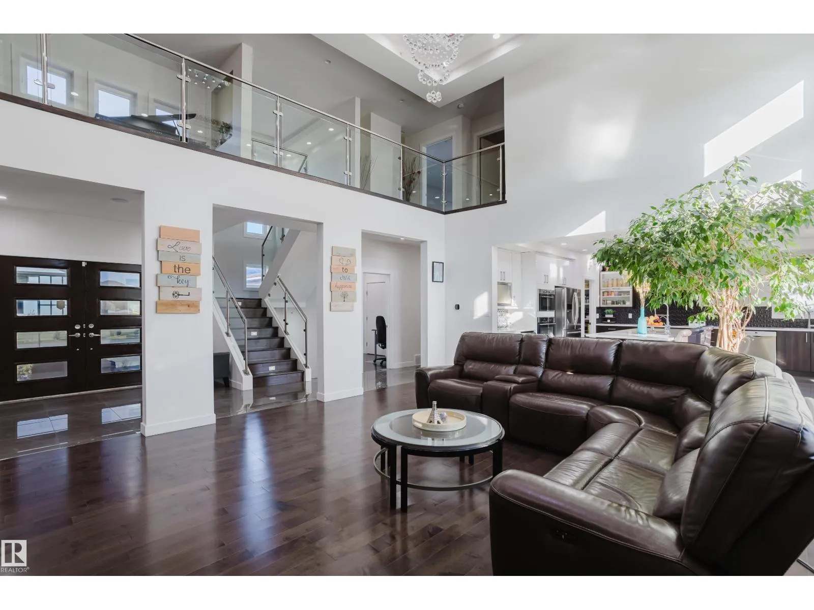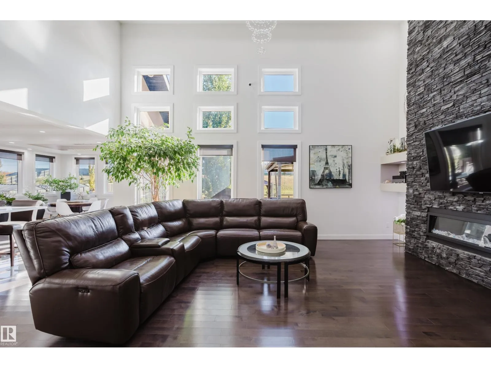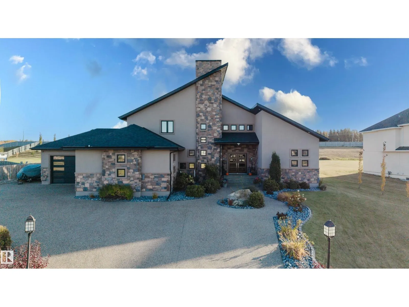 Escape to luxury living in this exquisite, custom-built bungalow situated on a sprawling acre lot, offering a seamless blend of elegance and entertainment. The main floor is highlighted by a gourmet kitchen featuring a generous walkthrough pantry, a stunning Open-to-Above Living Room with a cozy fireplace, and an ideal layout including two large primary bedrooms (each with a private ensuite) plus a convenient main floor office adjacent to a full guest bathroom, providing flexible living or an easy fifth bathroom option. The home continues to impress with two additional bedrooms upstairs and a fully finished basement featuring two more bedrooms, a spacious living area, a dedicated home theater, and a stylish wet bar. Outside, enjoy the privacy of a large backyard, a spacious front yard, and an impressive paved driveway leading to the oversized four-car garage, completing this spectacular six-bedroom estate for the discerning buyer seeking space, luxury, and functionality. (id:27476)