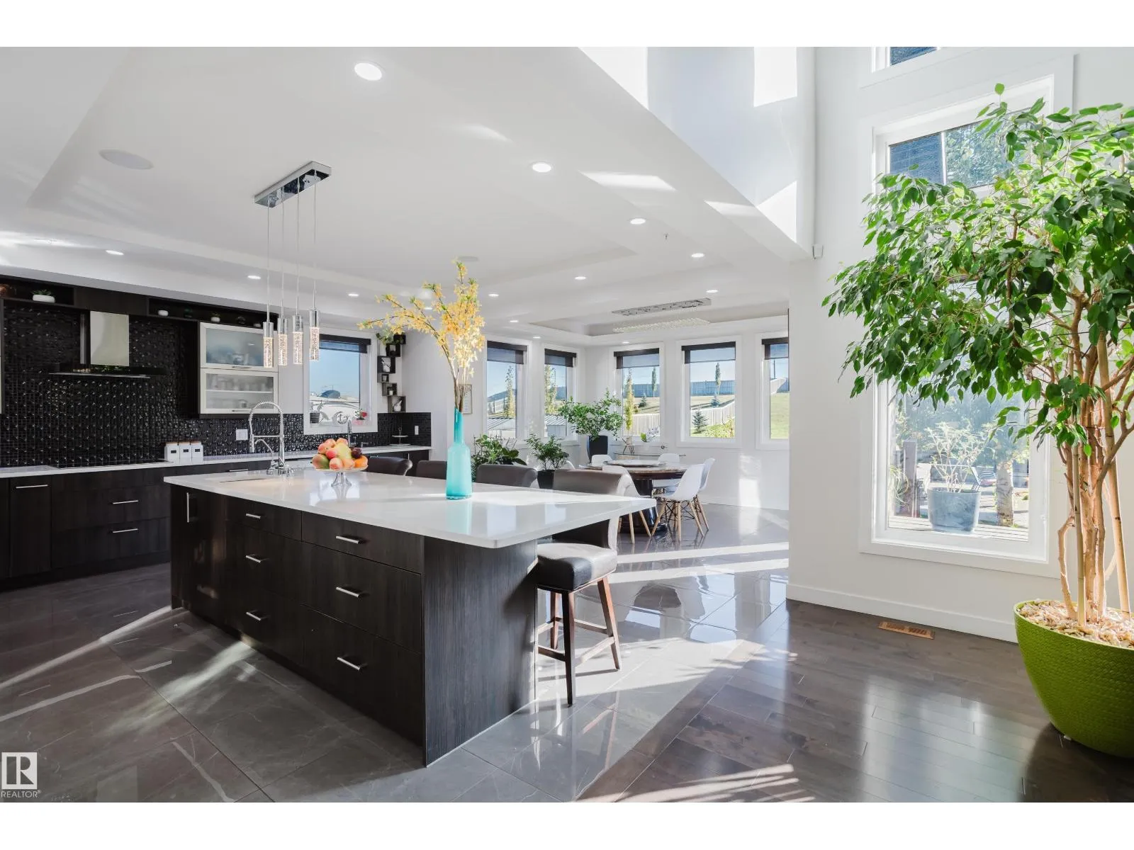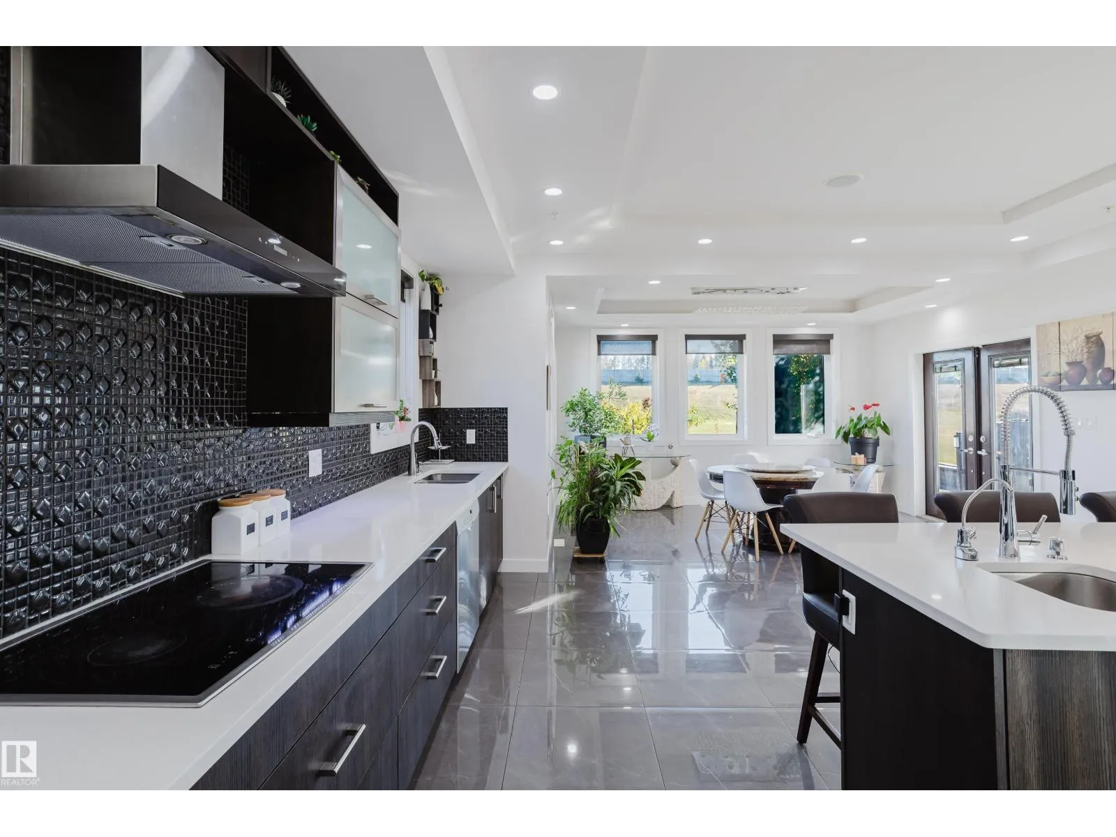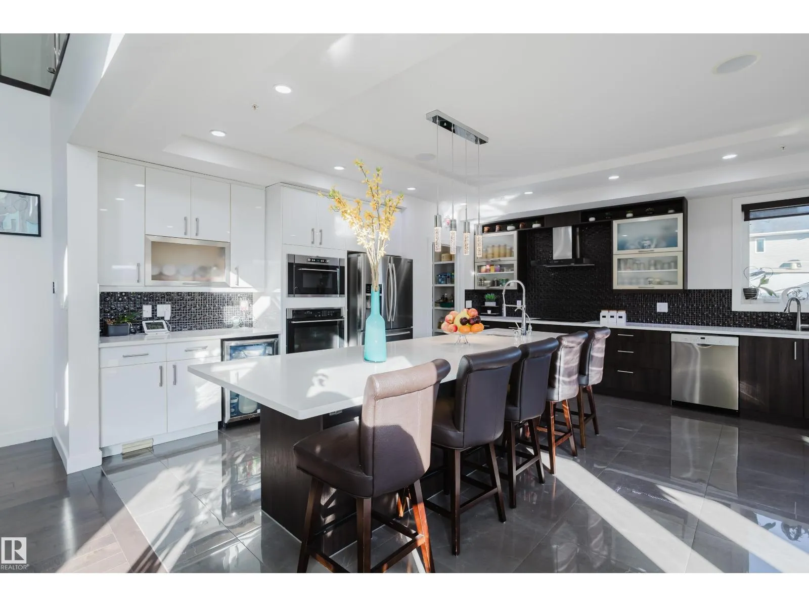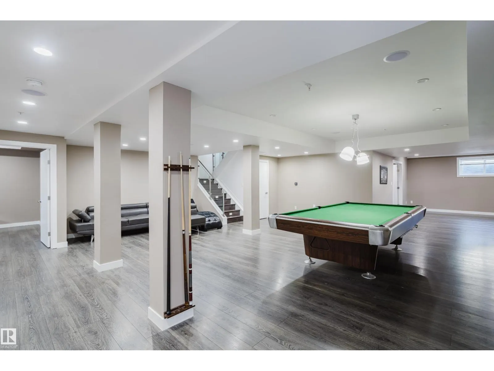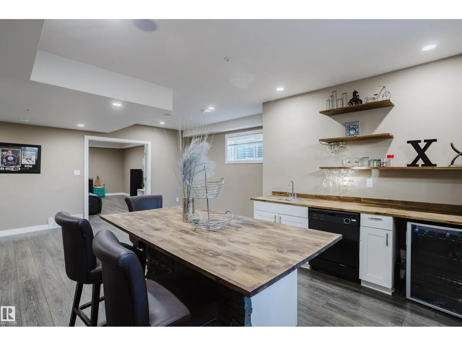 Escape to luxury living in this exquisite, custom-built bungalow situated on a sprawling acre lot, offering a seamless blend of elegance and entertainment. The main floor is highlighted by a gourmet kitchen featuring a generous walkthrough pantry, a stunning Open-to-Above Living Room with a cozy fireplace, and an ideal layout including two large primary bedrooms (each with a private ensuite) plus a convenient main floor office adjacent to a full guest bathroom, providing flexible living or an easy fifth bathroom option. The home continues to impress with two additional bedrooms upstairs and a fully finished basement featuring two more bedrooms, a spacious living area, a dedicated home theater, and a stylish wet bar. Outside, enjoy the privacy of a large backyard, a spacious front yard, and an impressive paved driveway leading to the oversized four-car garage, completing this spectacular six-bedroom estate for the discerning buyer seeking space, luxury, and functionality. (id:27476)