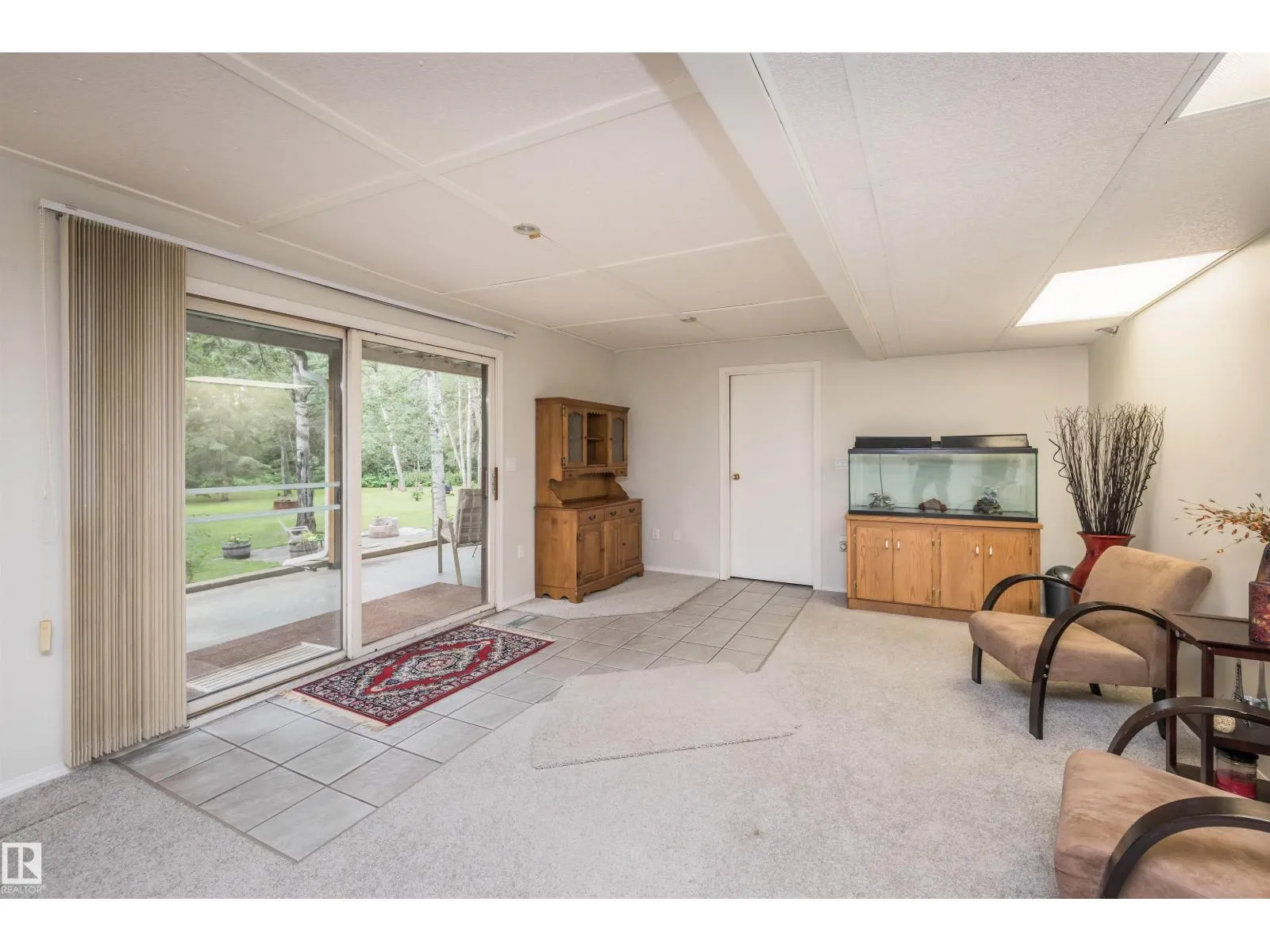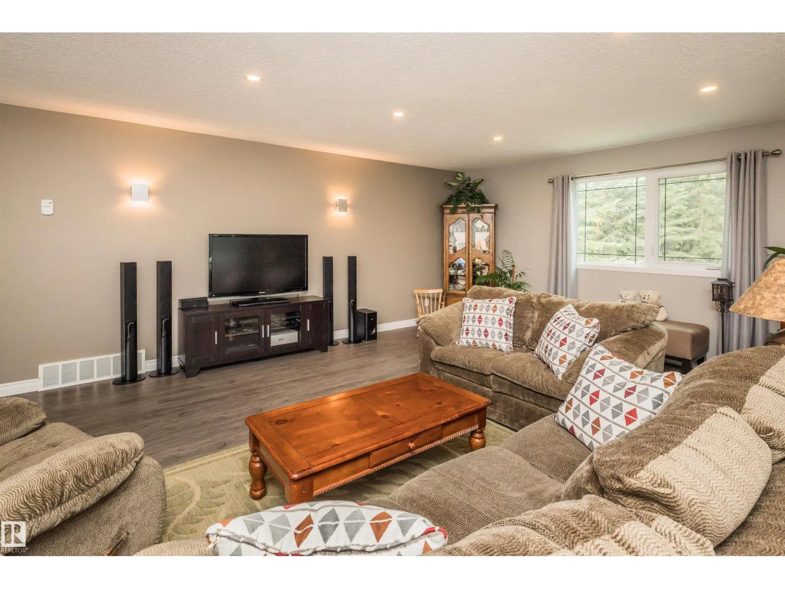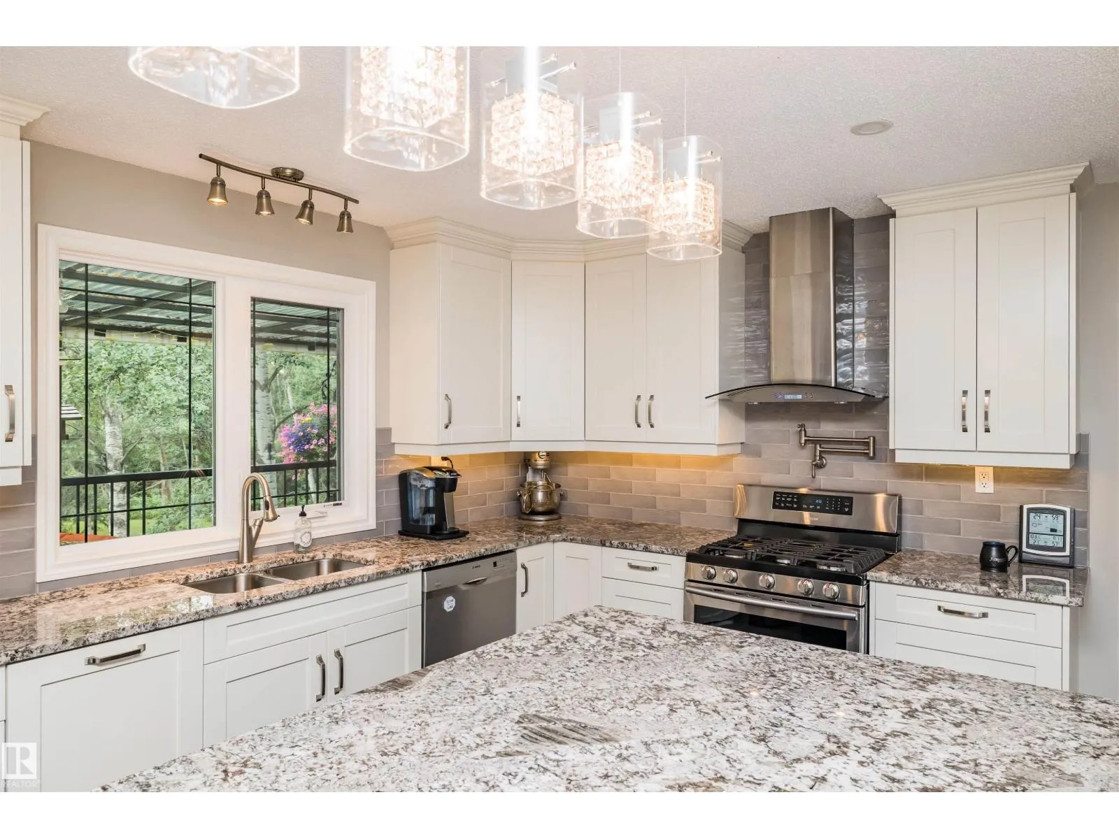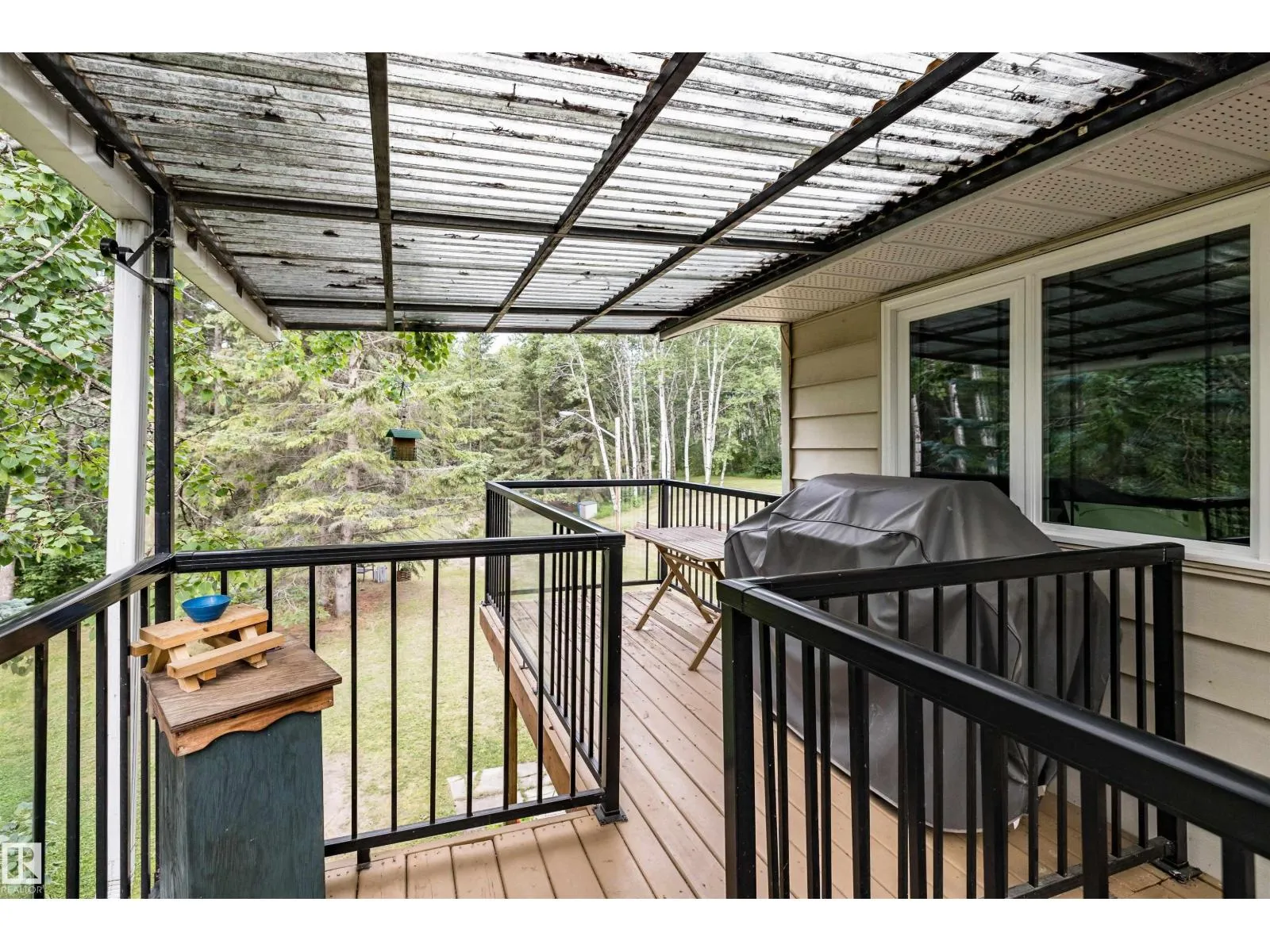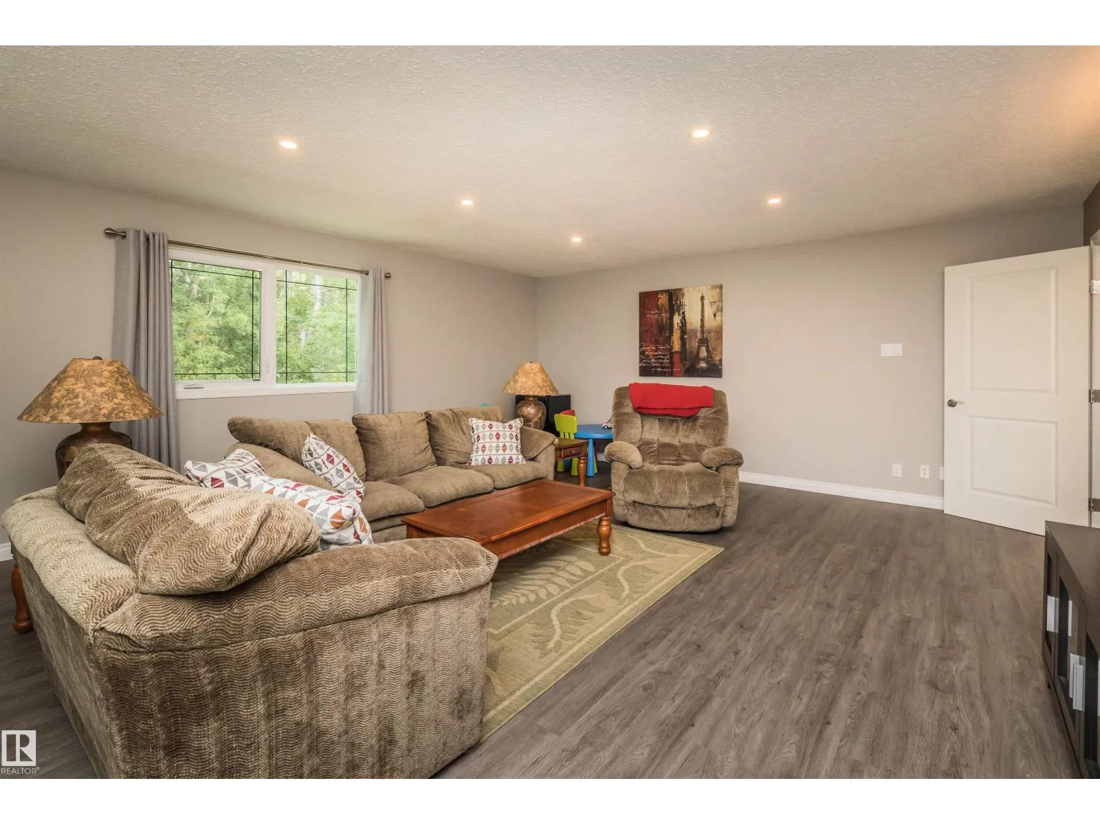 4.93 Acres & total 4000 SqFt updated walkout bungalow privately nestled among trees & secluded within the nature surrounding it! Luxury vinyl plank floors lead you into a stunning kitchen, gorgeous granite counters, tons of cabinetry, a massive island & inviting eating bar. Nearby, 2 options for dining spaces offer flexibility. The primary is its own retreat with lots of closet space & a 3-pce ensuite. A spacious living rm w/fireplace & massive family rm provide areas to relax or entertain. 2 more bdrms, 4 pce bath(Jacuzzi tub), an option for 4th bdrm(den) & 2 pce powder/Laundry rm finish off the main level. Step outside to a massive covered deck, perfect for a morning coffee or unwinding at the end of the day. The walkout basement offers a huge rec room, theatre/flex rm & 3rd bath w/sauna. Heated double garage & the expansive yard invites endless possibilities for your family to enjoy. Perfectly positioned in a peaceful setting siding a park reserve, this sanctuary offers a lifestyle thatâs unbeatable. (id:27476)