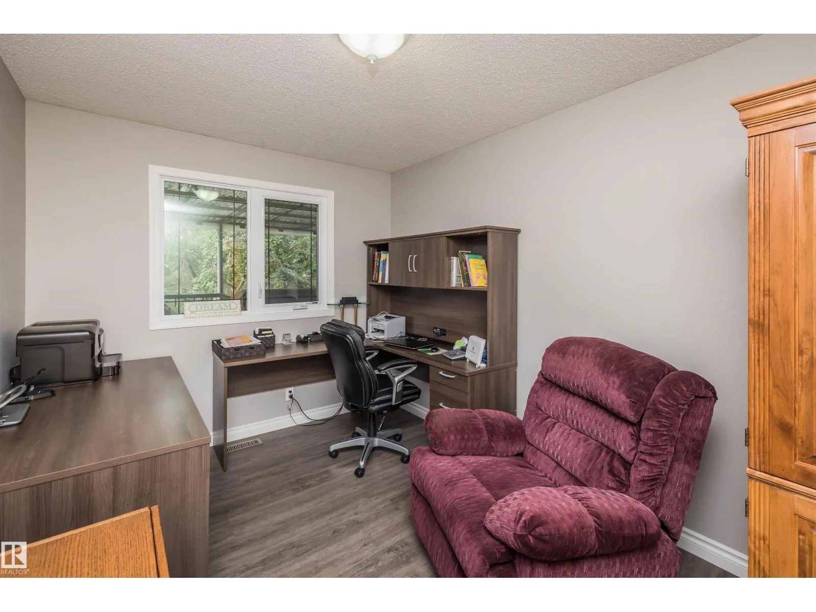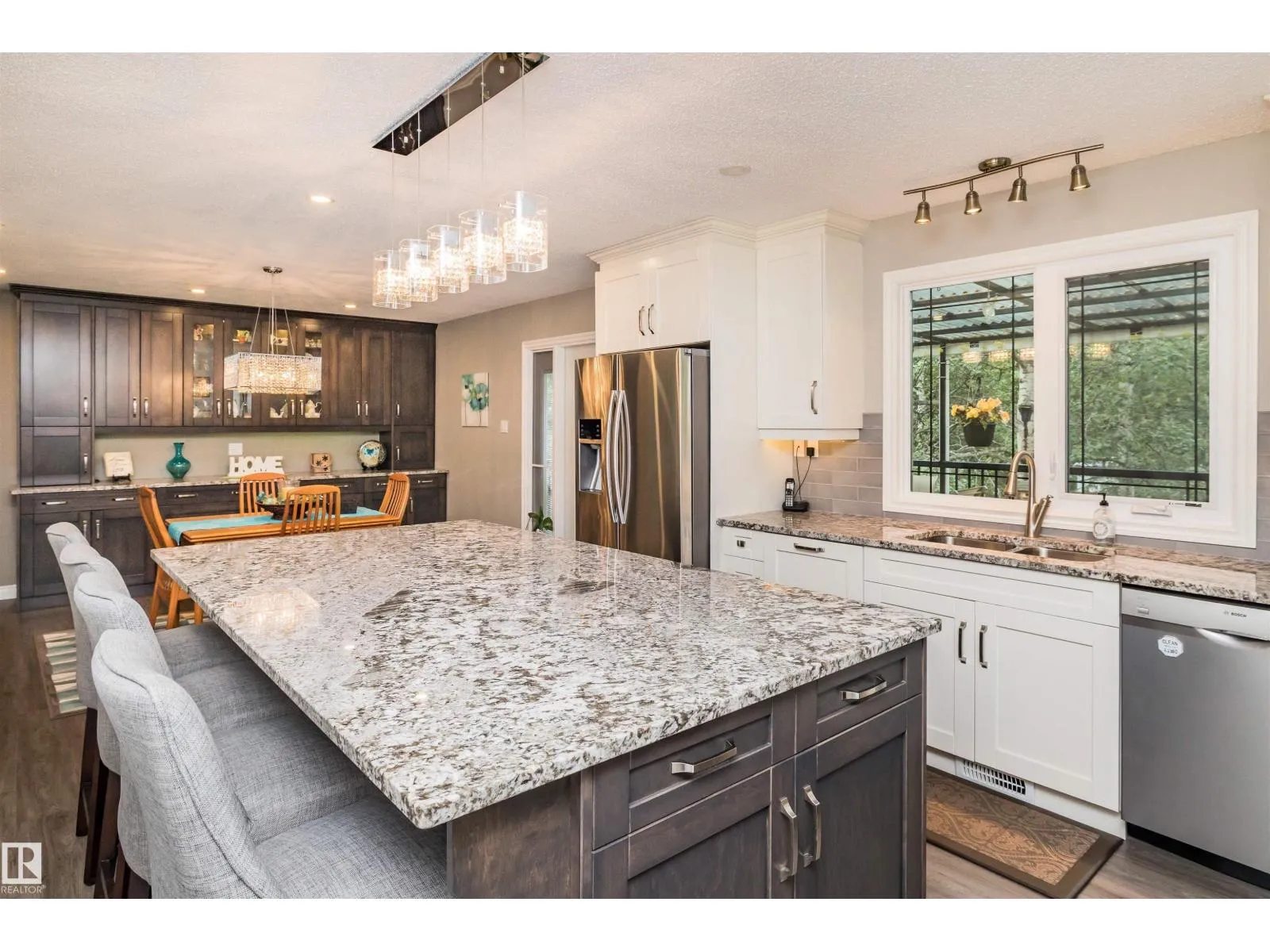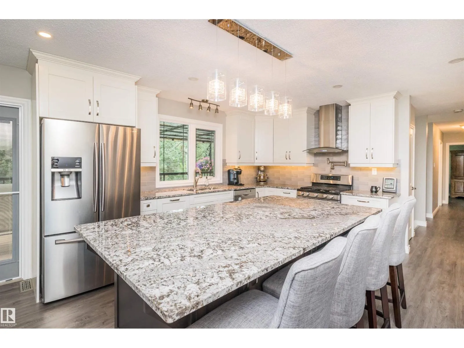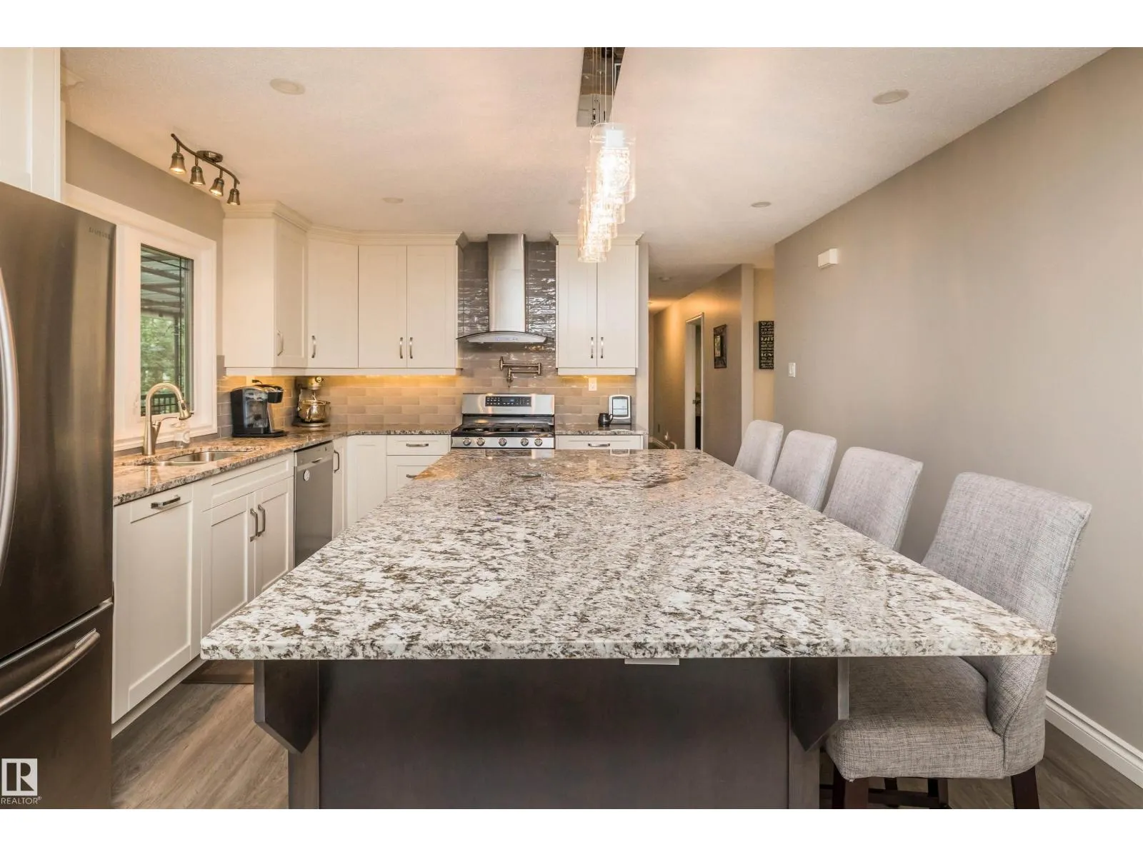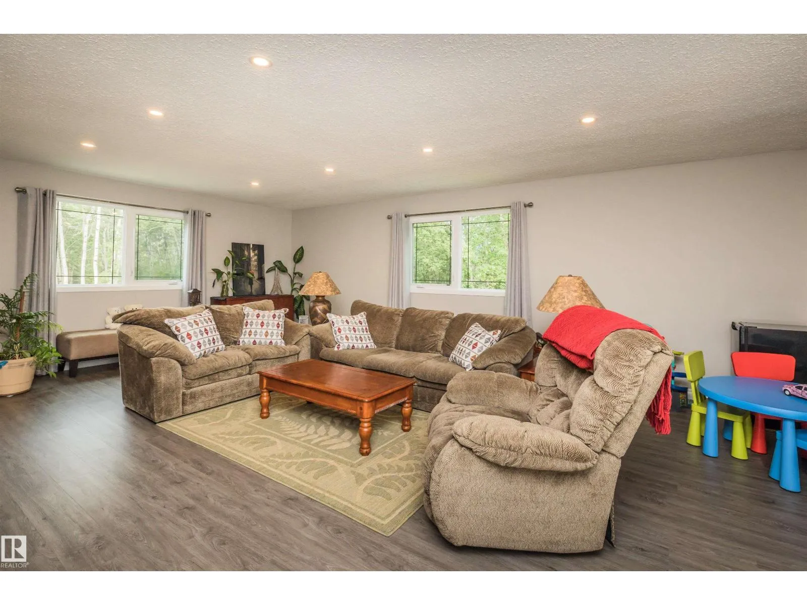 4.93 Acres & total 4000 SqFt updated walkout bungalow privately nestled among trees & secluded within the nature surrounding it! Luxury vinyl plank floors lead you into a stunning kitchen, gorgeous granite counters, tons of cabinetry, a massive island & inviting eating bar. Nearby, 2 options for dining spaces offer flexibility. The primary is its own retreat with lots of closet space & a 3-pce ensuite. A spacious living rm w/fireplace & massive family rm provide areas to relax or entertain. 2 more bdrms, 4 pce bath(Jacuzzi tub), an option for 4th bdrm(den) & 2 pce powder/Laundry rm finish off the main level. Step outside to a massive covered deck, perfect for a morning coffee or unwinding at the end of the day. The walkout basement offers a huge rec room, theatre/flex rm & 3rd bath w/sauna. Heated double garage & the expansive yard invites endless possibilities for your family to enjoy. Perfectly positioned in a peaceful setting siding a park reserve, this sanctuary offers a lifestyle thatâs unbeatable. (id:27476)