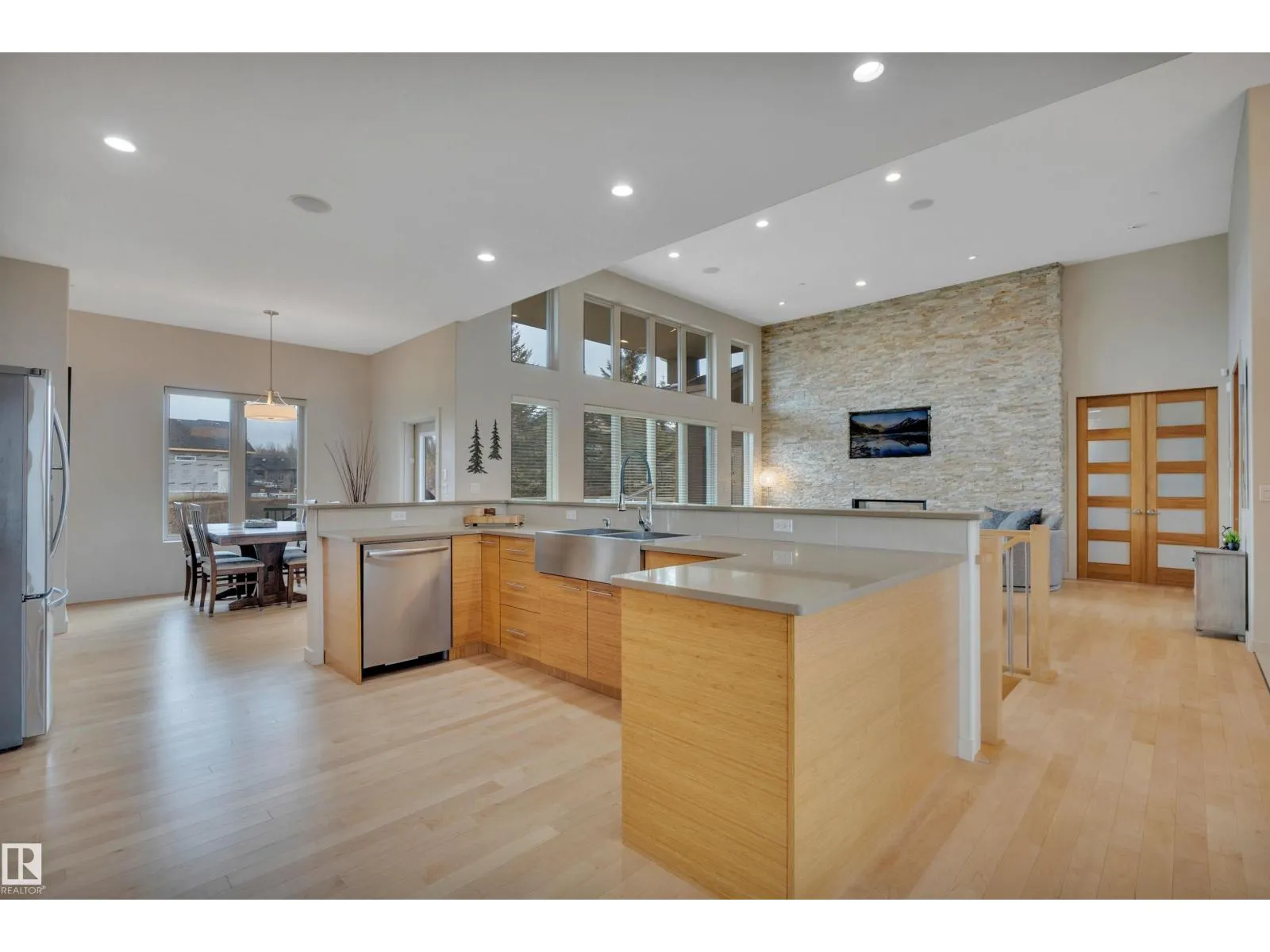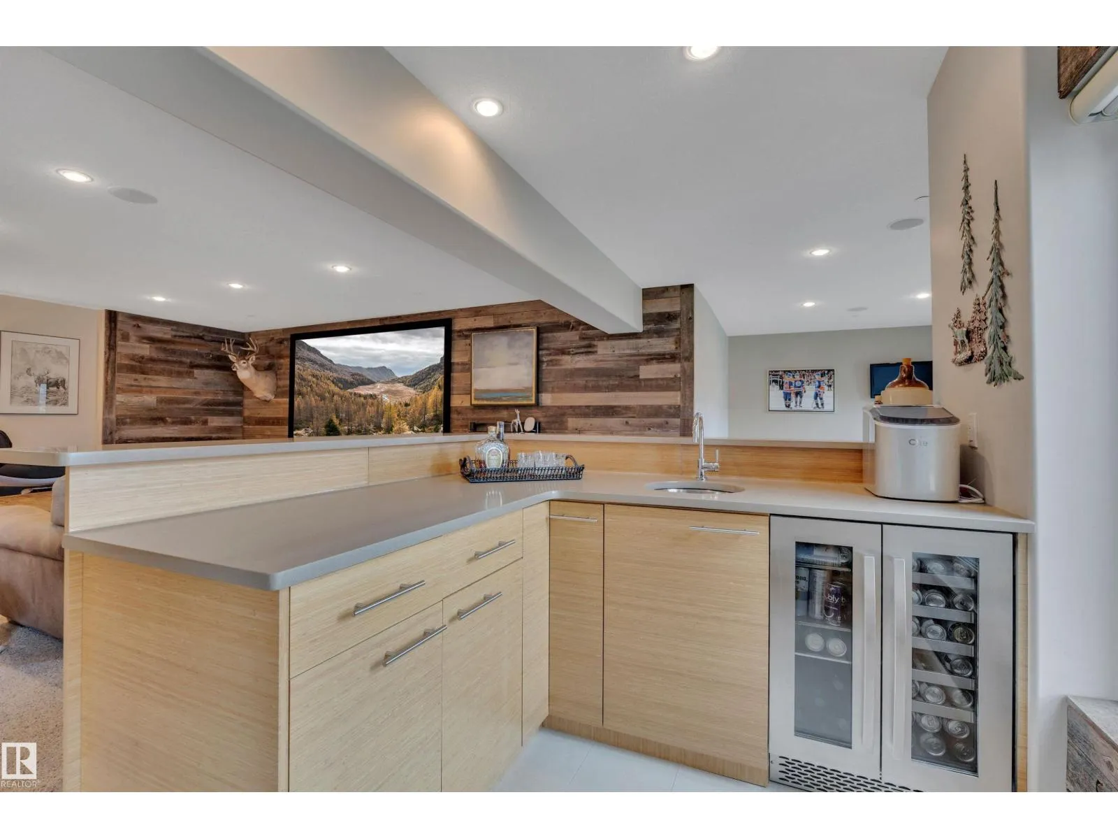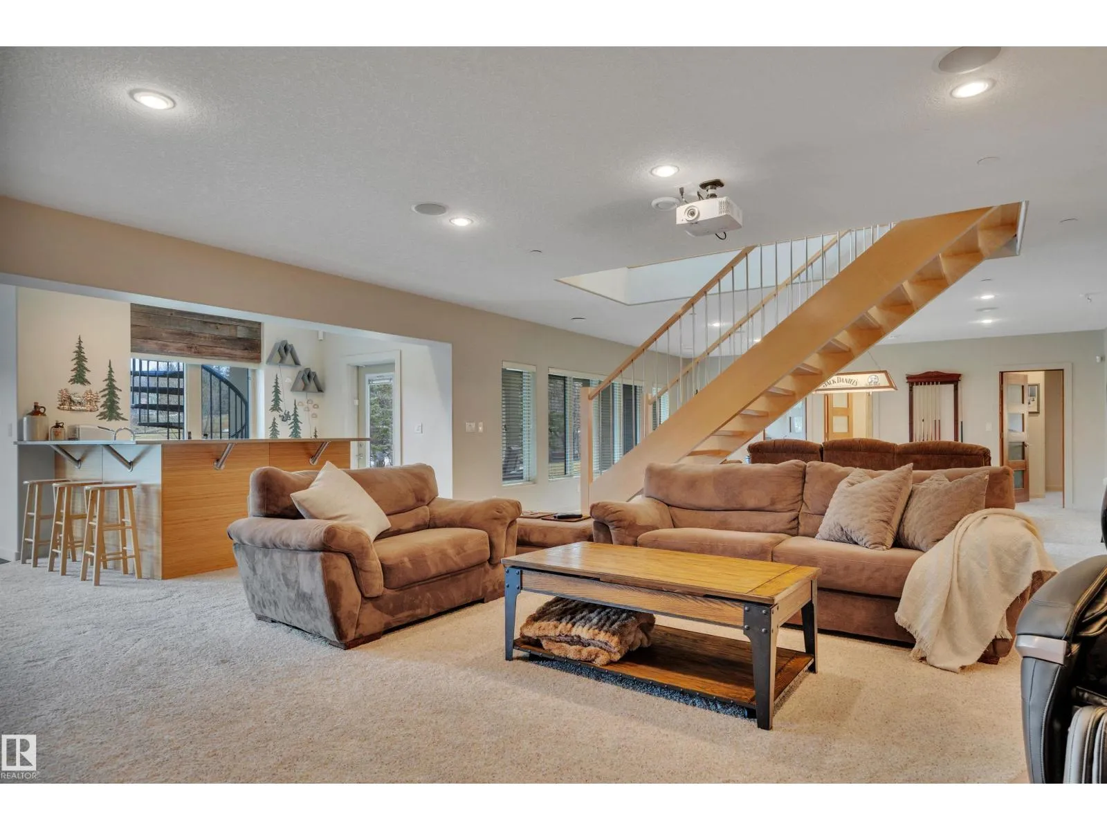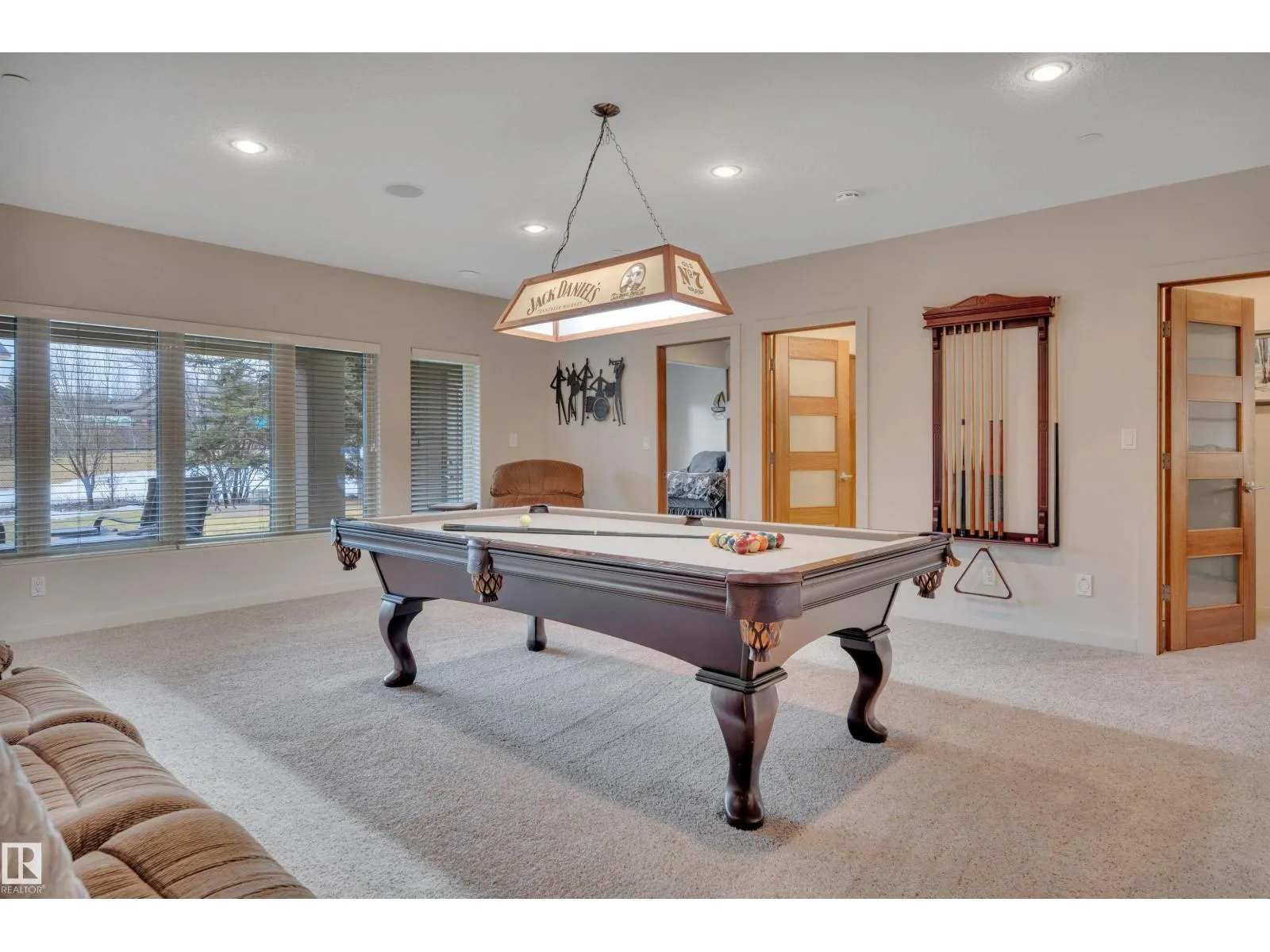 Executive walkout bungalow on ½ acre lot in prestigious Lake Ridge Estates â where refined country living meets uncompromising luxury. Over 4,300 sq ft of masterfully finished space where soaring rock walls, towering windows & open-concept layout create a breathtaking first impression. The chef's kitchen stuns with quartz countertops, bamboo cabinetry, gas range & a huge eat-up island. Entertain in your formal dining area or on the huge deck with whole-home sound & smart home tech throughout. Watch the game on the 125 projector screen from the bar or over a game of pool! Then retreat to your spa-inspired master suite with double-sided fireplace designed for pure indulgence. In-floor heat on both levels, triple-pane windows & R60 insulation ensure year-round comfort. The triple heated garage features a drive-through door, dual floor drains & hot/cold taps. Approved shop development permit & full drawings in hand â truly rare. Exceptional inclusions. Flexible possession. Country prestige. City convenience. (id:27476)