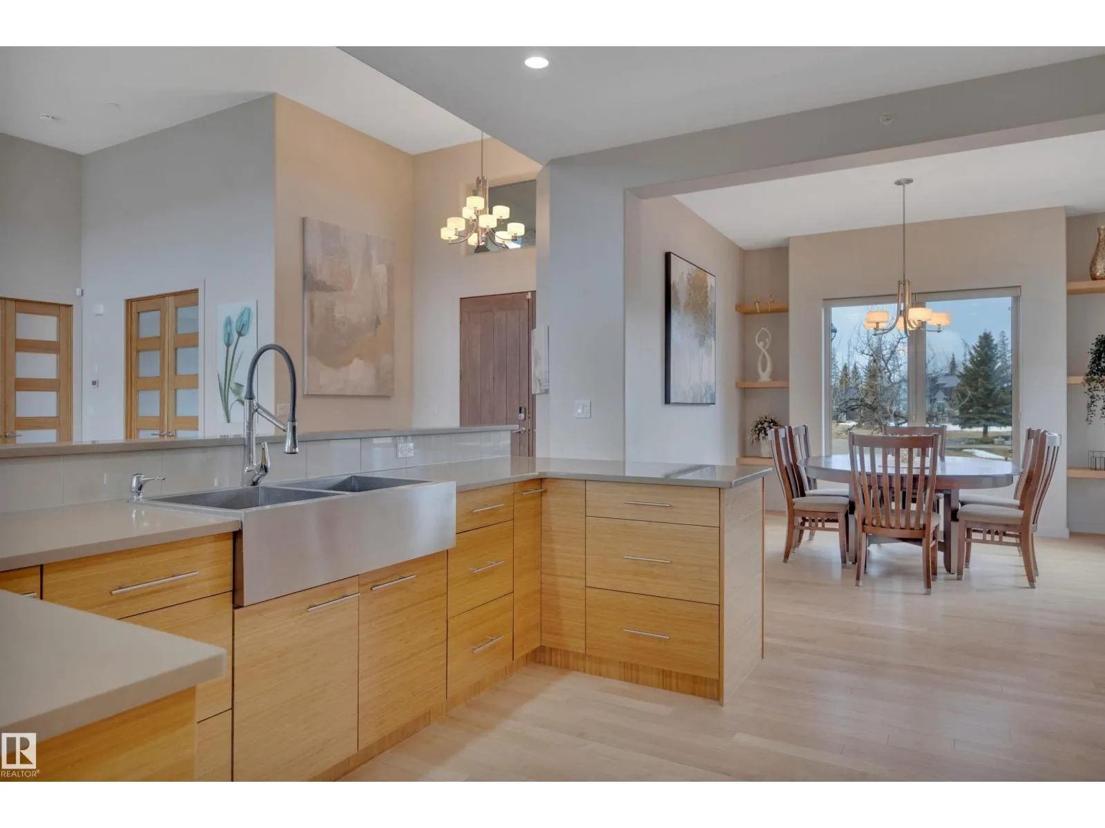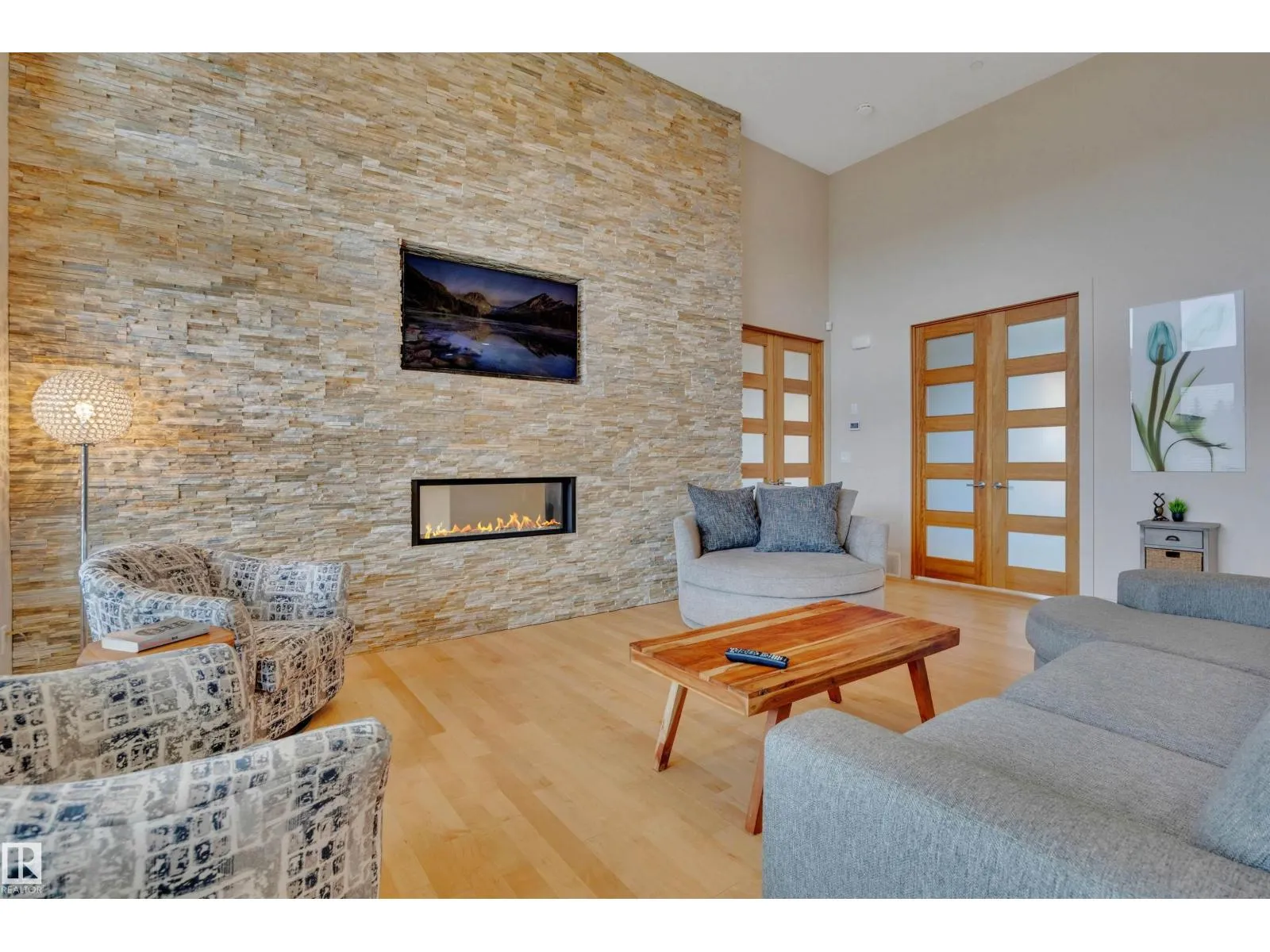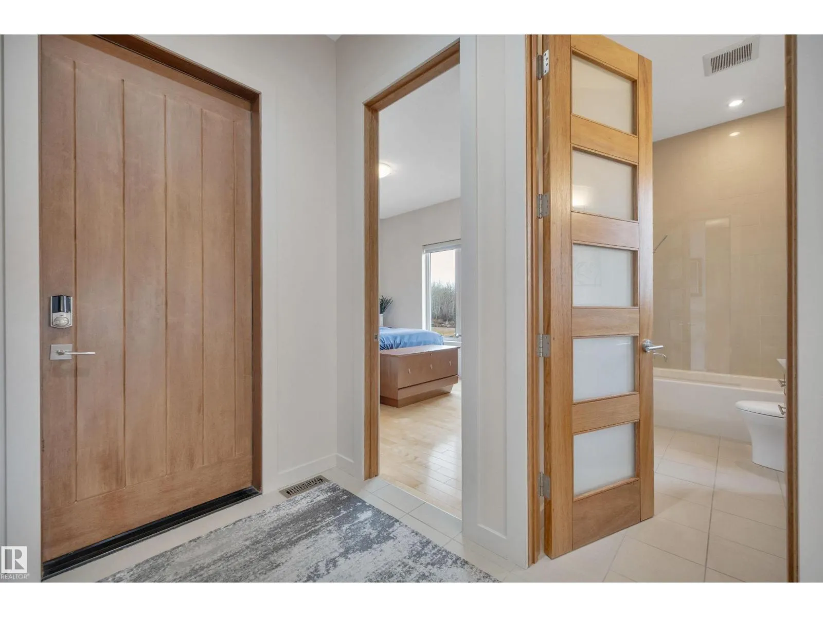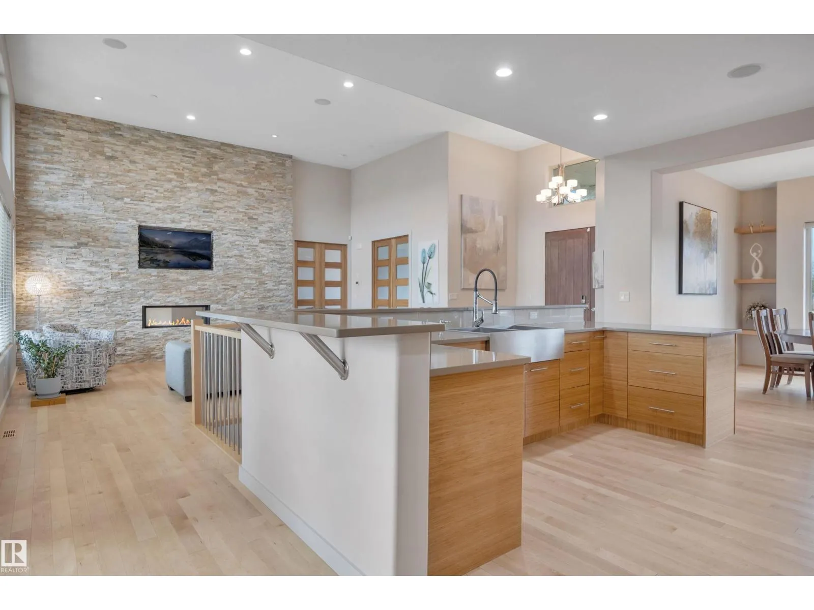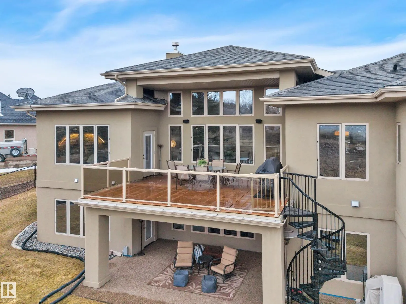 Executive walkout bungalow on ½ acre lot in prestigious Lake Ridge Estates â where refined country living meets uncompromising luxury. Over 4,300 sq ft of masterfully finished space where soaring rock walls, towering windows & open-concept layout create a breathtaking first impression. The chef's kitchen stuns with quartz countertops, bamboo cabinetry, gas range & a huge eat-up island. Entertain in your formal dining area or on the huge deck with whole-home sound & smart home tech throughout. Watch the game on the 125 projector screen from the bar or over a game of pool! Then retreat to your spa-inspired master suite with double-sided fireplace designed for pure indulgence. In-floor heat on both levels, triple-pane windows & R60 insulation ensure year-round comfort. The triple heated garage features a drive-through door, dual floor drains & hot/cold taps. Approved shop development permit & full drawings in hand â truly rare. Exceptional inclusions. Flexible possession. Country prestige. City convenience. (id:27476)