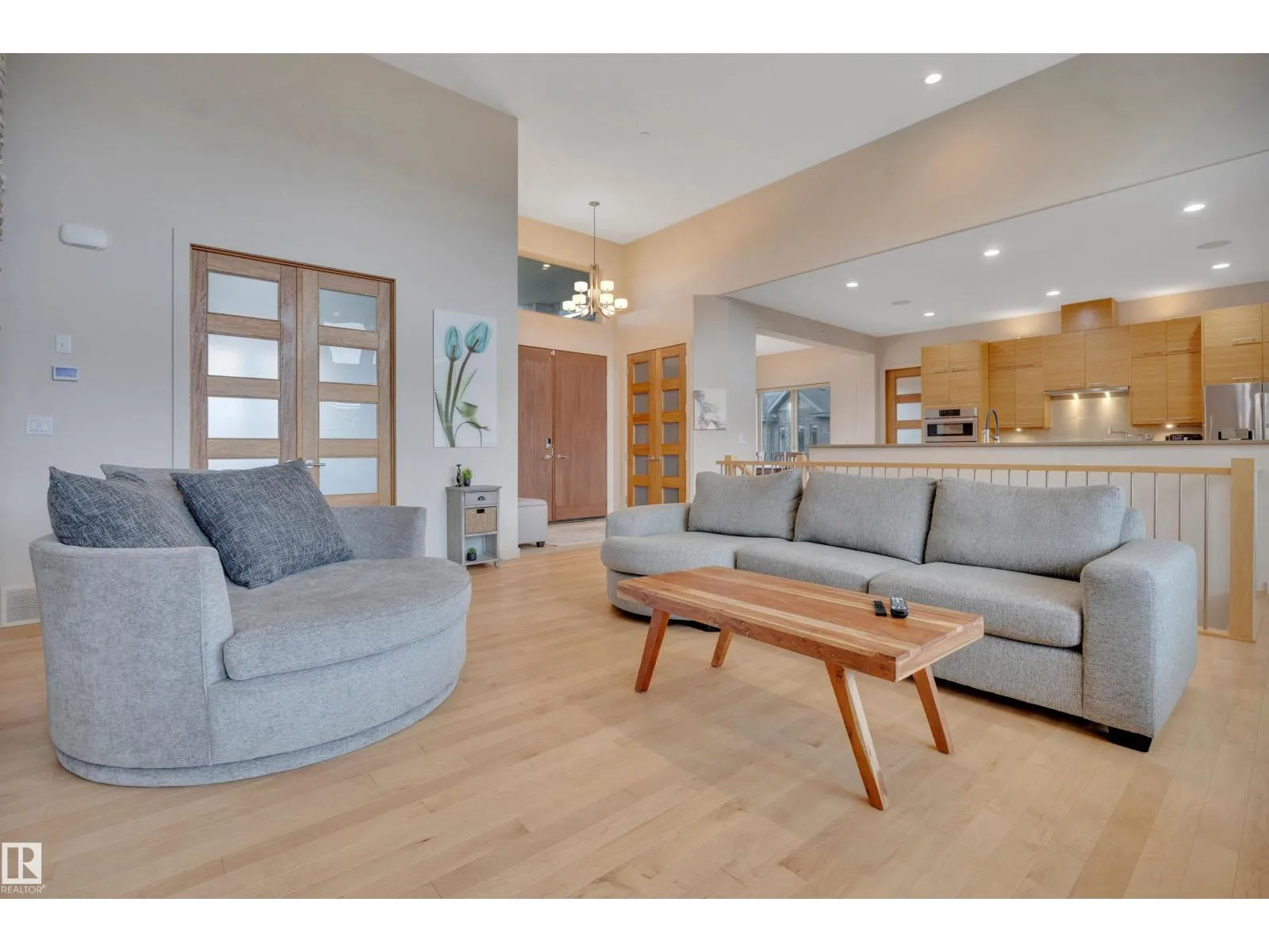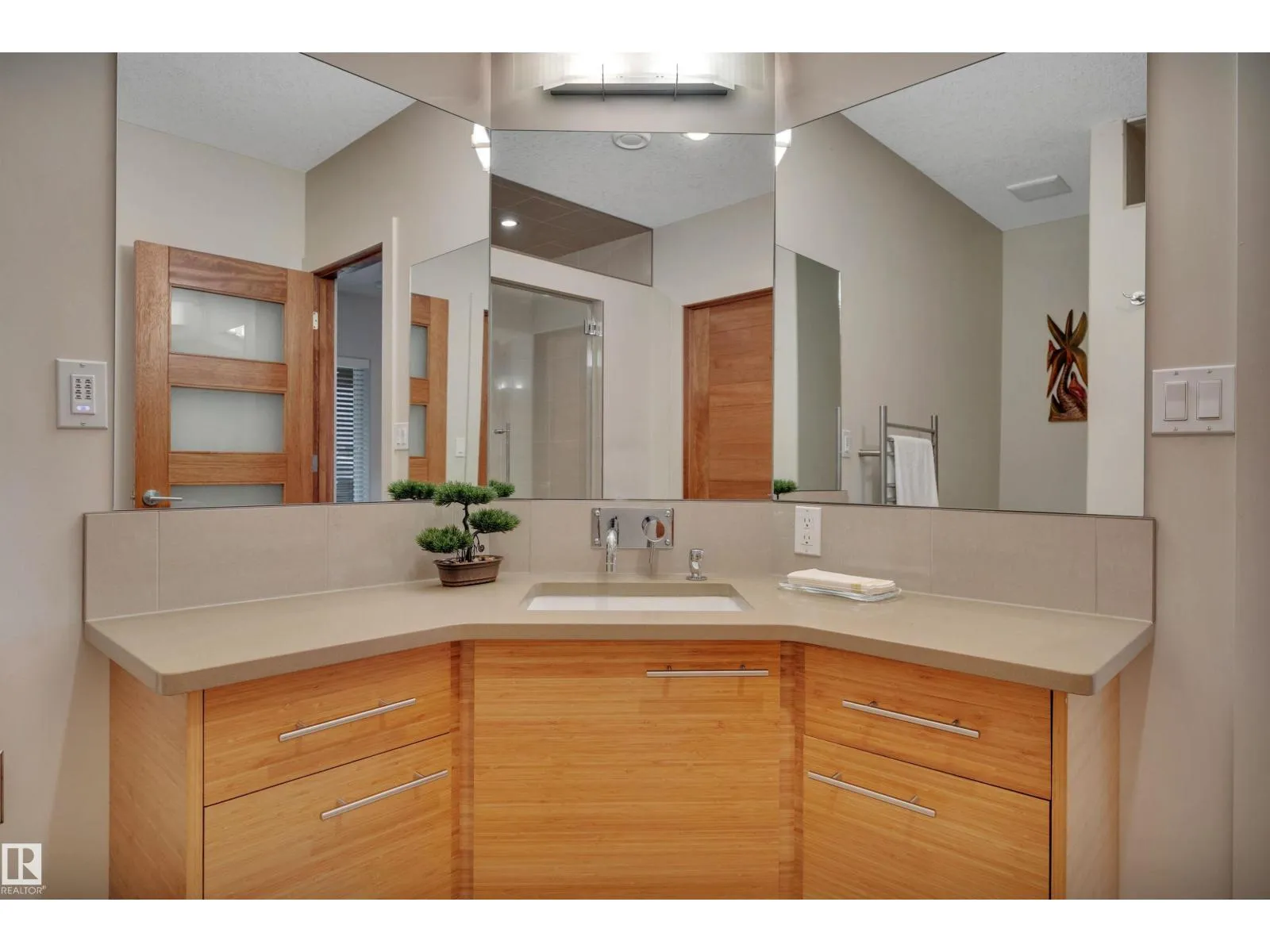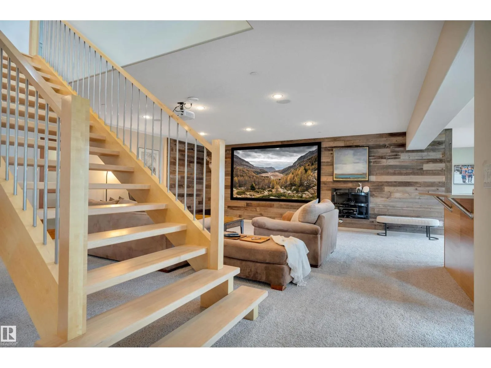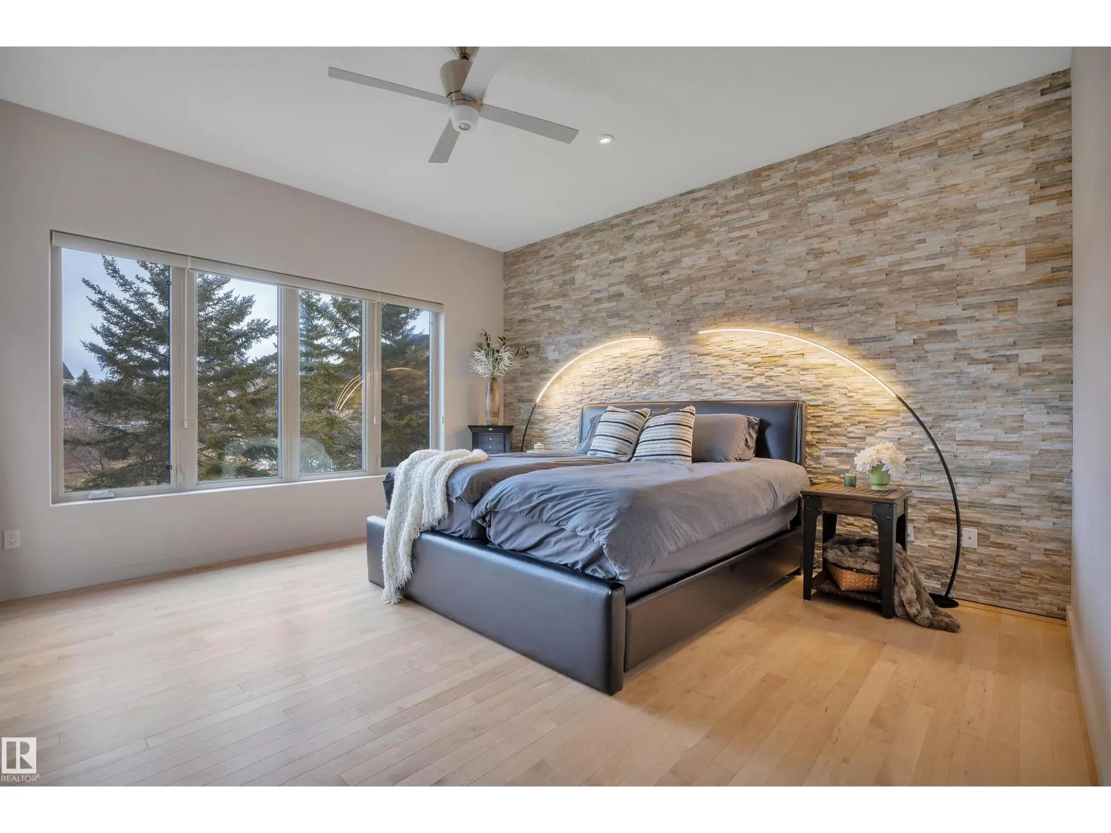Executive walkout bungalow on ½ acre lot in prestigious Lake Ridge Estates â where refined country living meets uncompromising luxury. Over 4,300 sq ft of masterfully finished space where soaring rock walls, towering windows & open-concept layout create a breathtaking first impression. The chef's kitchen stuns with quartz countertops, bamboo cabinetry, gas range & a huge eat-up island. Entertain in your formal dining area or on the huge deck with whole-home sound & smart home tech throughout. Watch the game on the 125 projector screen from the bar or over a game of pool! Then retreat to your spa-inspired master suite with double-sided fireplace designed for pure indulgence. In-floor heat on both levels, triple-pane windows & R60 insulation ensure year-round comfort. The triple heated garage features a drive-through door, dual floor drains & hot/cold taps. Approved shop development permit & full drawings in hand â truly rare. Exceptional inclusions. Flexible possession. Country prestige. City convenience. (id:27476)