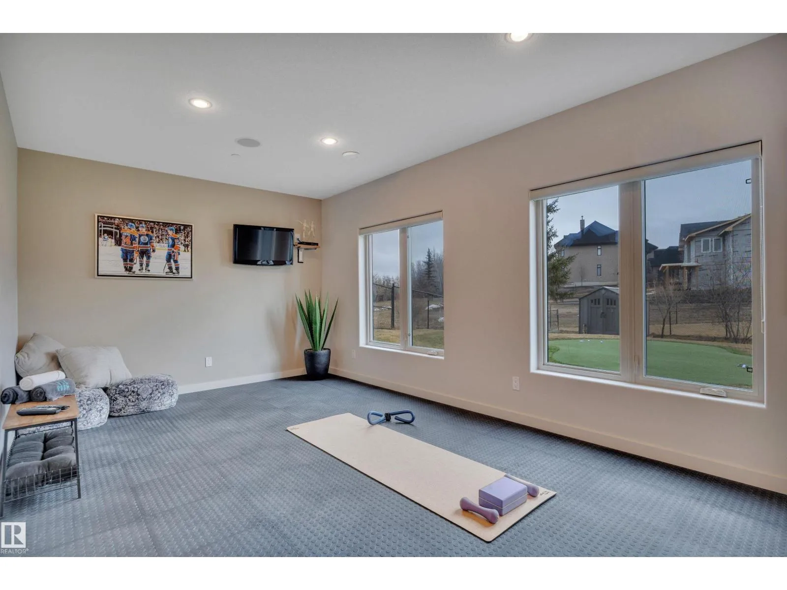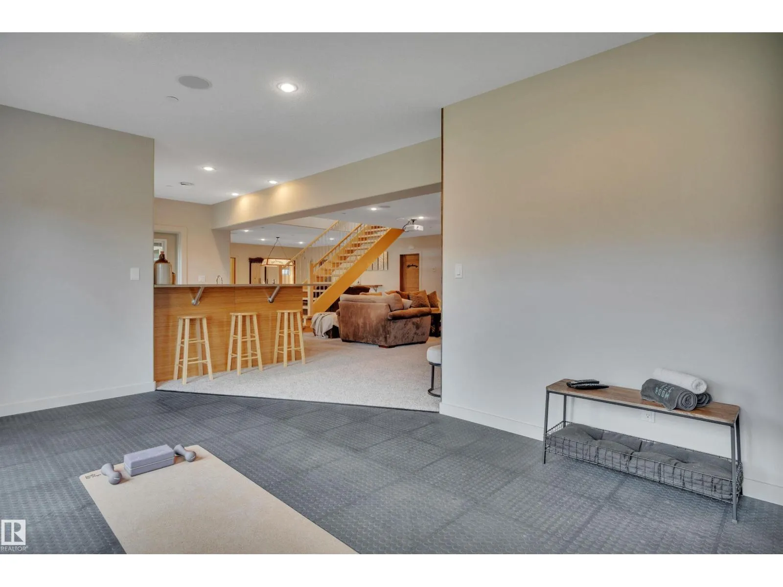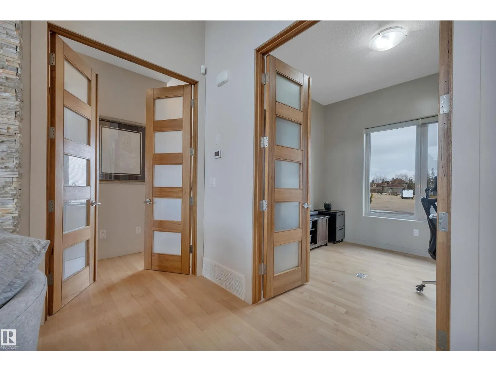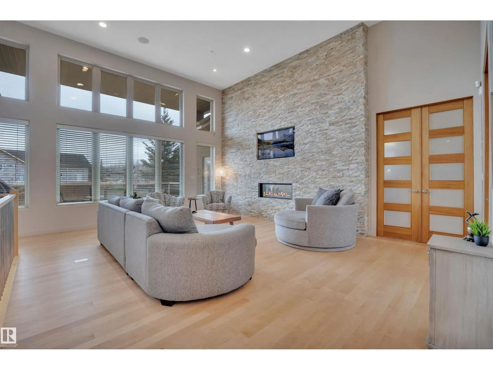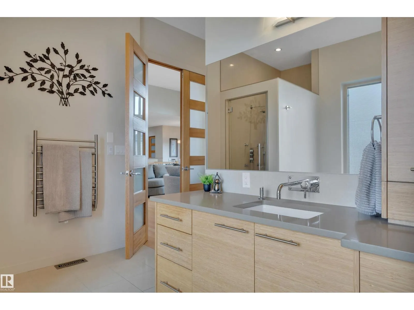 Executive walkout bungalow on ½ acre lot in prestigious Lake Ridge Estates â where refined country living meets uncompromising luxury. Over 4,300 sq ft of masterfully finished space where soaring rock walls, towering windows & open-concept layout create a breathtaking first impression. The chef's kitchen stuns with quartz countertops, bamboo cabinetry, gas range & a huge eat-up island. Entertain in your formal dining area or on the huge deck with whole-home sound & smart home tech throughout. Watch the game on the 125 projector screen from the bar or over a game of pool! Then retreat to your spa-inspired master suite with double-sided fireplace designed for pure indulgence. In-floor heat on both levels, triple-pane windows & R60 insulation ensure year-round comfort. The triple heated garage features a drive-through door, dual floor drains & hot/cold taps. Approved shop development permit & full drawings in hand â truly rare. Exceptional inclusions. Flexible possession. Country prestige. City convenience. (id:27476)