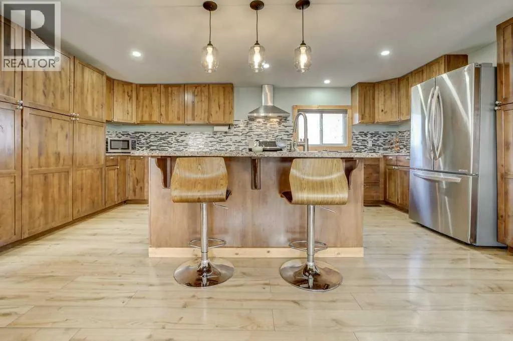 Welcome to a private 5.37-acre retreat where open land, thoughtful design, and mountain living come together. This 2,415 square foot residence blends natural textures and warm finishes, creating a home that feels grounded in its surroundings. The setting is peaceful and elevated, surrounded by soft mountain horizon lines and a sense of quiet that is increasingly rare. Arrival feels special. A concrete patio with a pergola creates an inviting outdoor living space, ideal for slow mornings, fireside evenings, and long summer meals. Inside, the remodeled kitchen features wood-grain cabinetry, upgraded finishes, and a functional connection to the formal dining room for effortless hosting. Two distinct family areas allow for both gathering and quiet moments. The great room rises to vaulted ceilings and is anchored by a wood burning stove, setting the stage for evenings spent tucked in with good company. A second wood burning stove adds warmth throughout the main level. With four bedrooms and two and a half baths, the layout supports both everyday living and extended stays. The loft level is home to the private primary suite and ensuite, offering a quiet place to wind down. Main floor laundry brings convenience to daily life. Beyond the home, the property is thoughtfully equipped. A heated 47 by 30 quonset houses a well fed 1,250-gallon water storage tank with UV purification, an incredible advantage for acreage living. A greenhouse, garden, chicken coop, and fenced pasture provide room for horses, hobby farming, or simply living closer to the land. Just minutes away, Lundbreck Falls and the surrounding provincial recreation area offer world-renowned fly fishing and access to endless adventure. Here, days are shaped by nature, space, and the freedom to live the way you choose. A rare opportunity to experience acreage living with comfort, function, and quiet mountain presence. This dream location offers stunning mountain views, waterfalls, hiking and ATV trails, fly fishing , skiing, and so much more. (id:27476)
