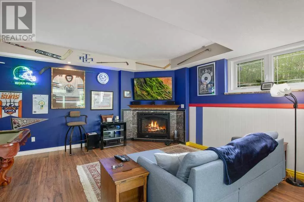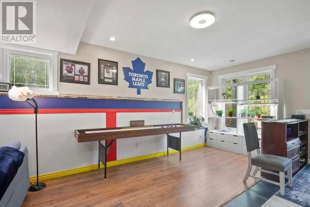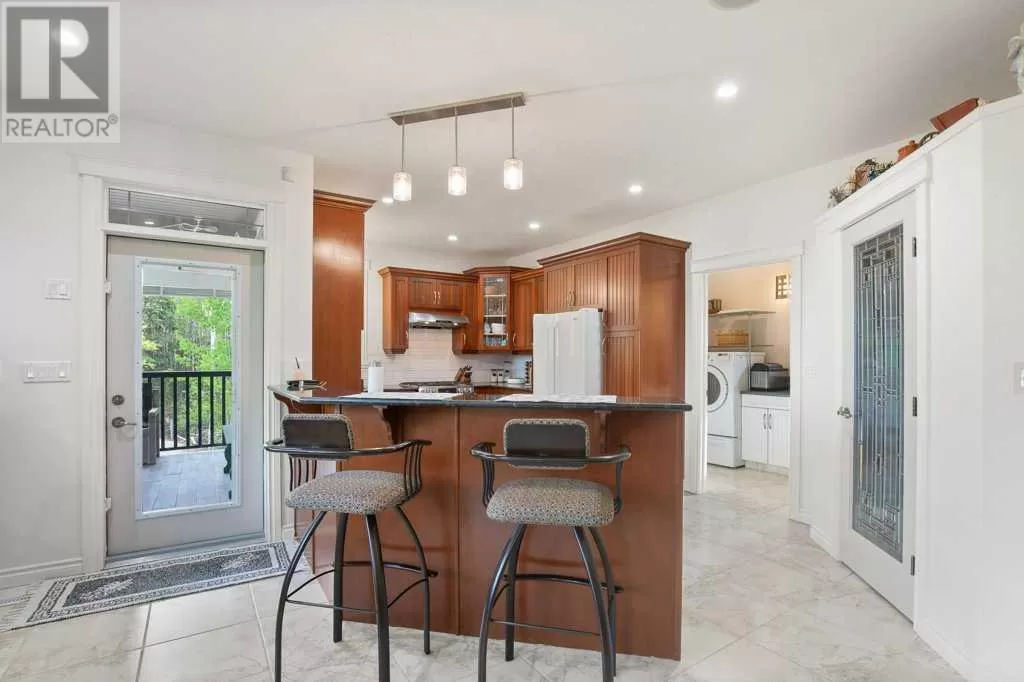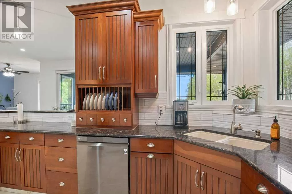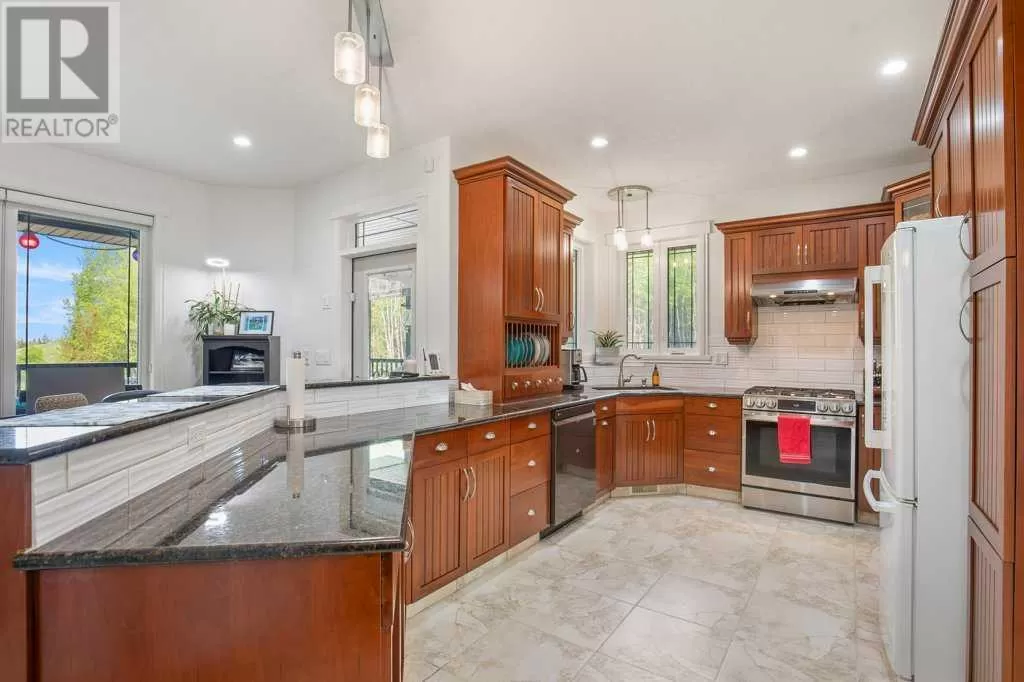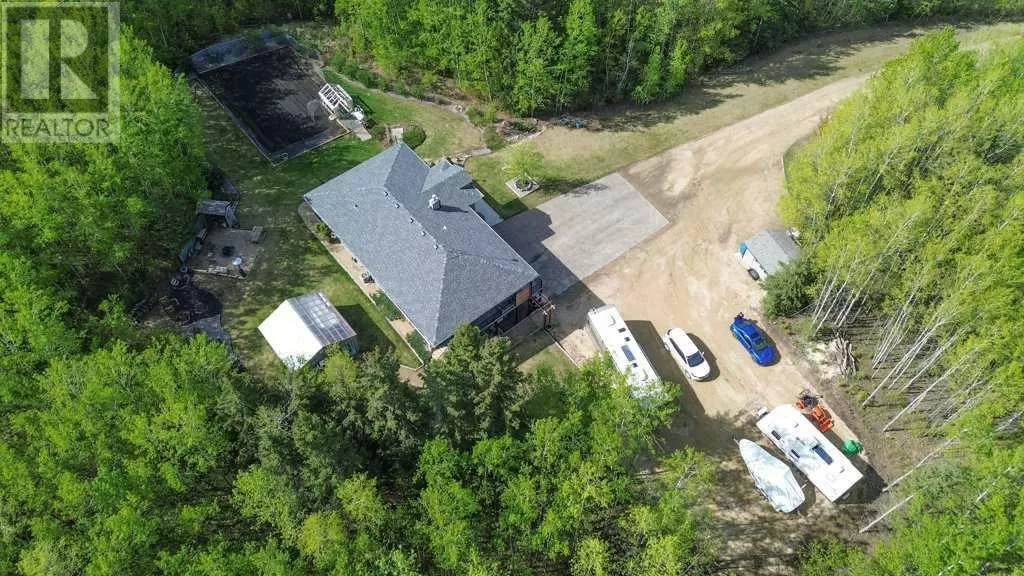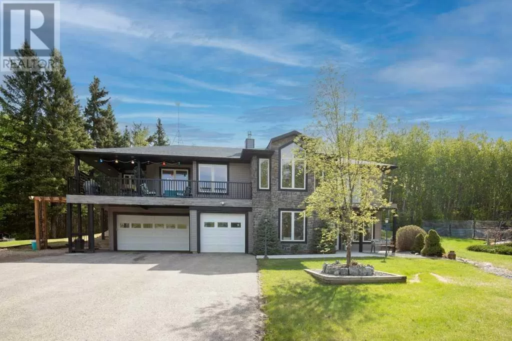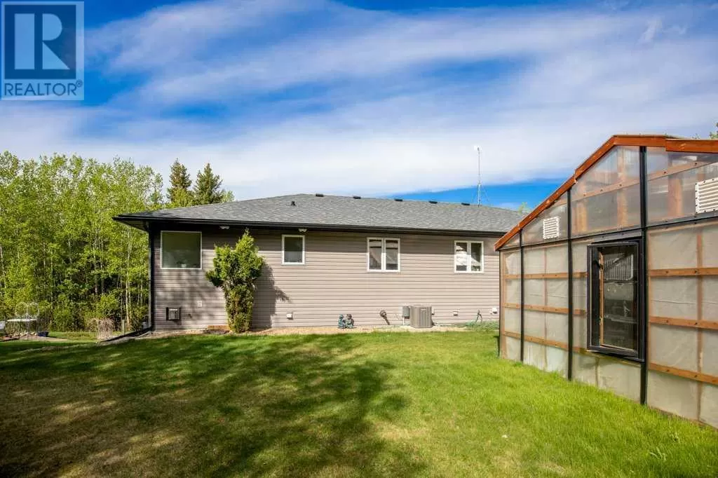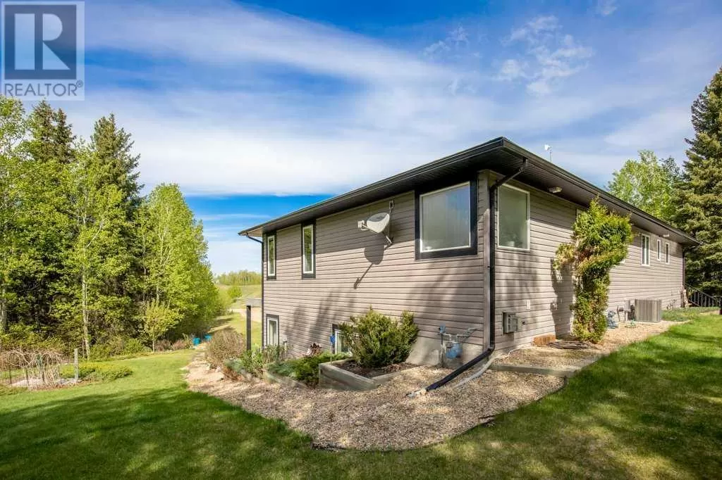 Acreage living at it's finest! A rare find with 10 secluded acres on pavement! Welcome to this stunning 1870 square foot bungalow nestled amongst towering trees on a 10 acre parcel zoned for a hobby farm with perimeter barbed wire fencing. If peace and quiet are what you are after look no further. You will appreciate the pride of ownership of this beautiful 4 bed 4 bath home with plenty of upgrades. From the moment you enter, the bright open feel will draw you in. The main level offers a fantastic kitchen with cherry wood cabinets and granite countertops with plenty of space to prepare those family meals or entertain friends. Gather around the dining room or take it outside to the large covered deck, wired for sound, with ceramic tile floor and overlooking the beautifully landscaped front yard. Enjoy reading a book or cuddling up on those winter nights by the two sided natural gas fireplace in the living room. After a long day you will feel pampered in the primary bedroom offering a beautiful ensuite with double doors leading out to the deck and soaker corner tub to relax in. Two additional large bedrooms, main floor laundry with mud room, and a half bath complete the main level. Downstairs is designed for the growing family or entertaining family and friends with underfloor heat, wet bar, and a games area. An additional corner fireplace becomes the focal point of the well designed space with a bedroom (with walk in closet) and a 4 piece bath to complete the finishing touches. Parking will not be an issue in your oversized fully finished triple attached garage with underfloor heating and tons of storage. Take a walk outside and discover what this property has to offer. 10 acres of treed privacy with walking, biking, or quadding trails all over the property and a seasonal pond for extra enjoyment. Gardens, a firepit area and a large greenhouse for the gardeners offers so much for the whole family. Some other features to consider: Double Panel, On demand Renai System , Set up for a Generac Generator, Central Vac, Sonos System wired throughout, RV parking with power, Underground power ran for future shop. Some recent updates include: New shingles 2025, new backsplash 2025, new pot lights 2025, new paint 2025. This one is MOVE IN READY! Put your feet up, the work has been done. (id:27476)