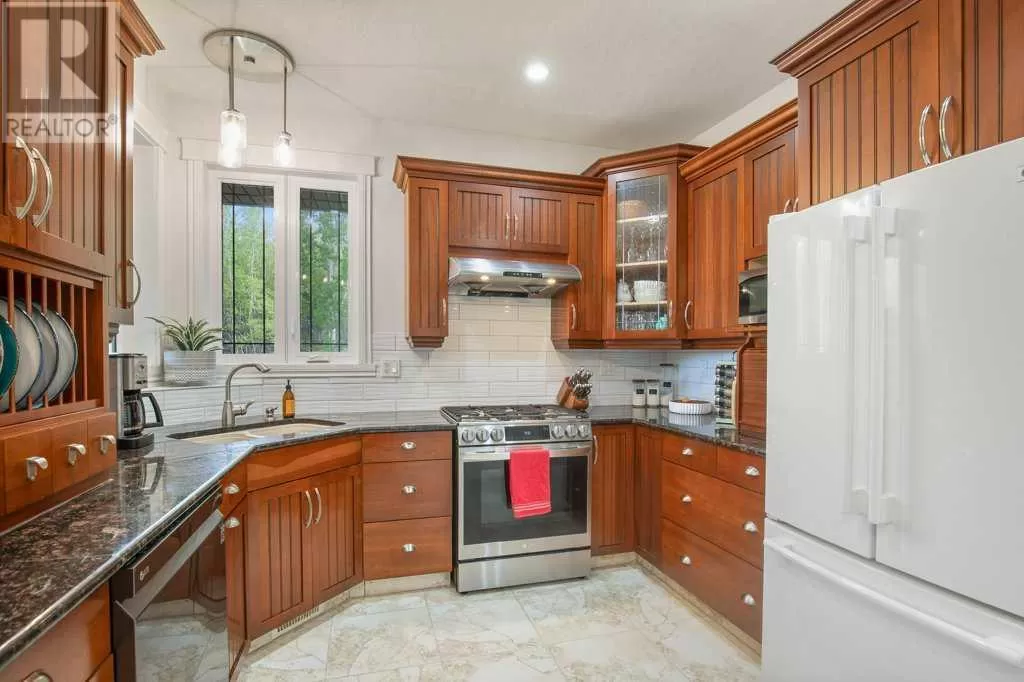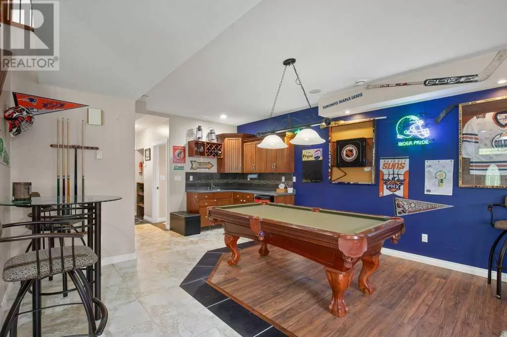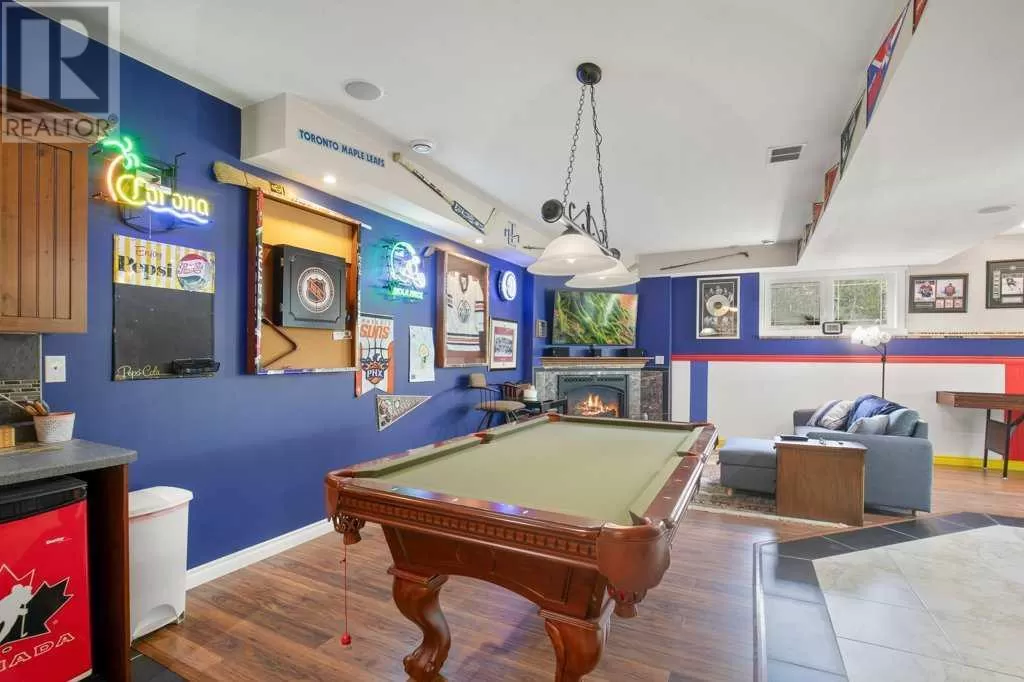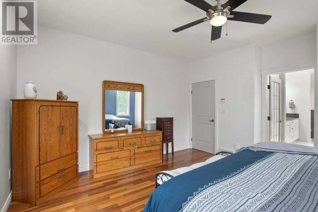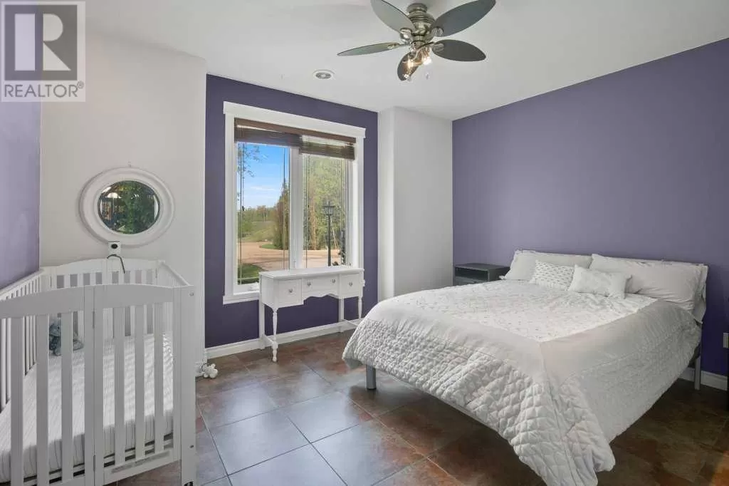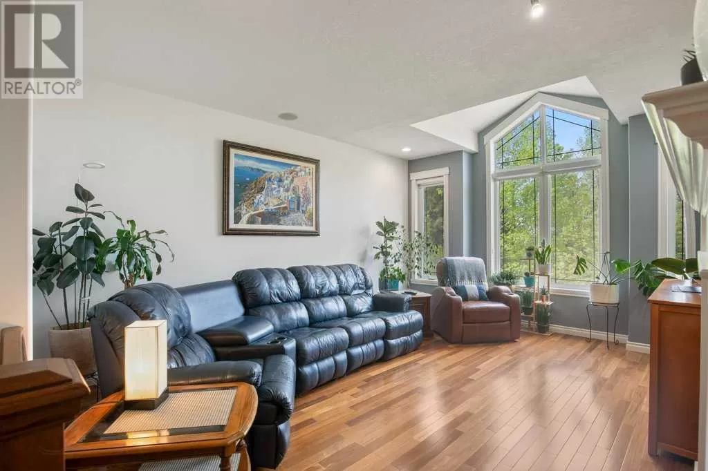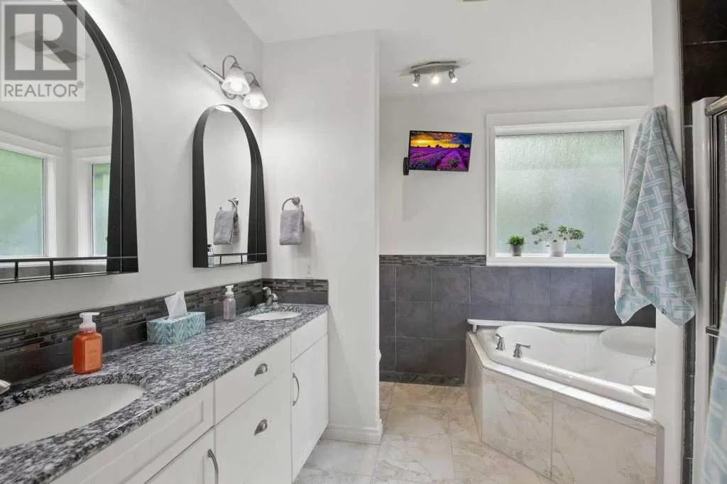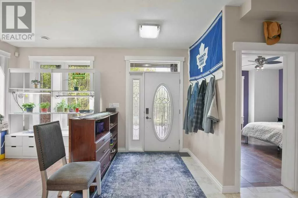Acreage living at it's finest! A rare find with 10 secluded acres on pavement! Welcome to this stunning 1870 square foot bungalow nestled amongst towering trees on a 10 acre parcel zoned for a hobby farm with perimeter barbed wire fencing. If peace and quiet are what you are after look no further. You will appreciate the pride of ownership of this beautiful 4 bed 4 bath home with plenty of upgrades. From the moment you enter, the bright open feel will draw you in. The main level offers a fantastic kitchen with cherry wood cabinets and granite countertops with plenty of space to prepare those family meals or entertain friends. Gather around the dining room or take it outside to the large covered deck, wired for sound, with ceramic tile floor and overlooking the beautifully landscaped front yard. Enjoy reading a book or cuddling up on those winter nights by the two sided natural gas fireplace in the living room. After a long day you will feel pampered in the primary bedroom offering a beautiful ensuite with double doors leading out to the deck and soaker corner tub to relax in. Two additional large bedrooms, main floor laundry with mud room, and a half bath complete the main level. Downstairs is designed for the growing family or entertaining family and friends with underfloor heat, wet bar, and a games area. An additional corner fireplace becomes the focal point of the well designed space with a bedroom (with walk in closet) and a 4 piece bath to complete the finishing touches. Parking will not be an issue in your oversized fully finished triple attached garage with underfloor heating and tons of storage. Take a walk outside and discover what this property has to offer. 10 acres of treed privacy with walking, biking, or quadding trails all over the property and a seasonal pond for extra enjoyment. Gardens, a firepit area and a large greenhouse for the gardeners offers so much for the whole family. Some other features to consider: Double Panel, On demand Renai System , Set up for a Generac Generator, Central Vac, Sonos System wired throughout, RV parking with power, Underground power ran for future shop. Some recent updates include: New shingles 2025, new backsplash 2025, new pot lights 2025, new paint 2025. This one is MOVE IN READY! Put your feet up, the work has been done. (id:27476)