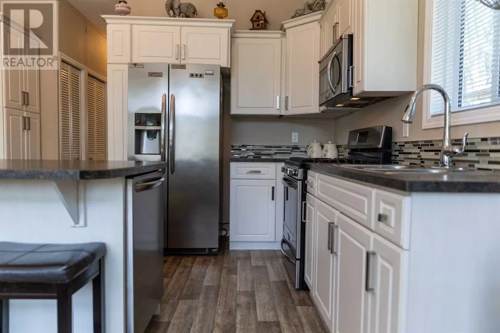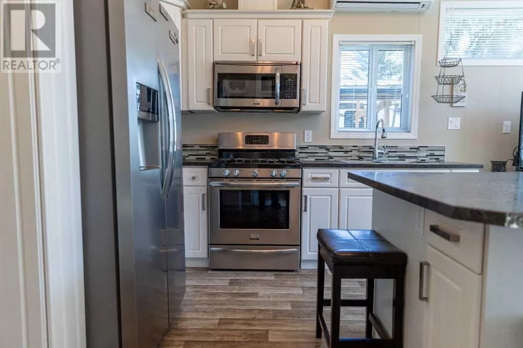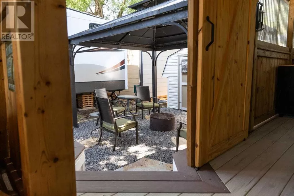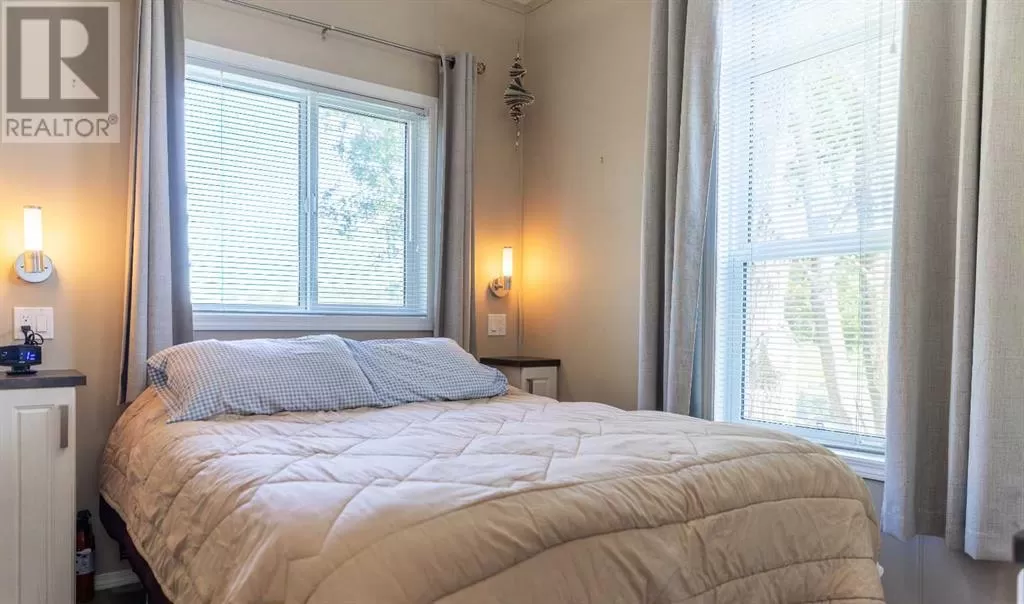 Affordable Family Retreat! Gull Lake, Parkland Beach, Marina, Community Events, Playgrounds, Nature Trails, Fishing, Swimming - all within steps of your summer home! Rain or shine, this is where relaxation starts. The newly finished (2021) tin roof deck is where rustic comfort and low maintenance charm meet. Through the beautiful side barn door, get cozy around the campfire. The gazebo and powered shed with lights make it easy to entertain with food and drinks. Follow the landscaped rock work around back for shaded privacy or use as additional storage. Inside, the tall ceilings and ample natural sunlight transform the ambiance to a luxurious nautical feel. Well built for all weather; 6â walls and air conditioning are sure to keep you cool on those hot summer days. The low maintenance charm continues with fingerprint proof stainless steel package featuring gas stove and dishwasher. Down the spacious hall, find the washer, dryer and more storage. The first bedroom features a great sized bunk bed and large soft close closet. The primary bedroom takes advantage of built in storage features as well. Coming off the lake is a breeze as the park modelâs back door is closest to the full 4 piece bathroom with tub/shower combo and tiled backsplash. Easily accommodating a crew of 6, start planning your summer adventures today! (id:27476)