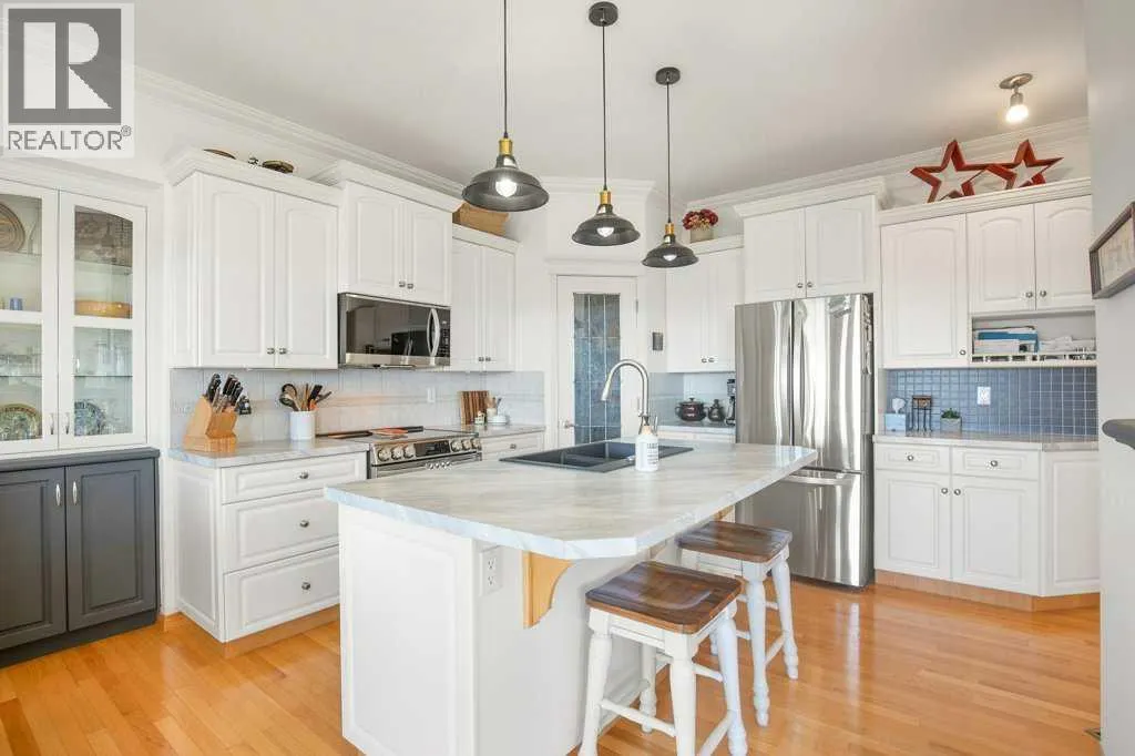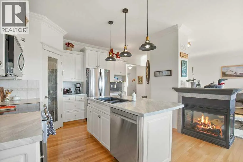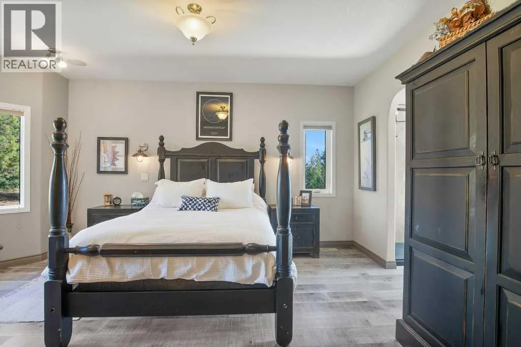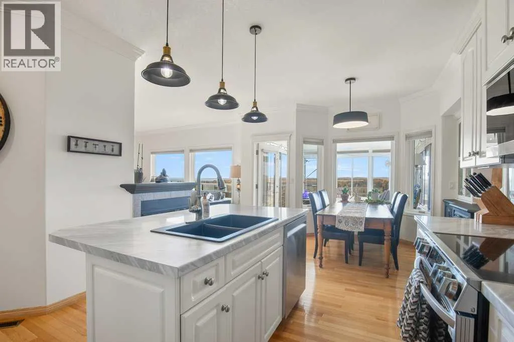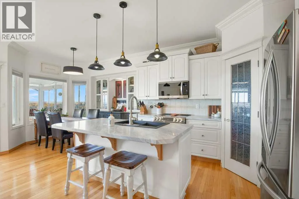 Discover the tranquility of this BEAUTIFUL WALKOUT BUNGALOW, perched on 3.51 acres of a pristine property. Settle in for stunning views of both Gull Lake and the gorgeous countryside. The earthy tones of stucco and stonework are accented with archways of Spanish flair. The triple car garage provides plenty of indoor parking. Warm hardwood floors lead you thru the hub of the home. Walls of windows allow for ample natural light, along with picture perfect scenery in every season. The kitchen features crisp white cabinetry, stainless steel appliances, and an island for additional seating and prep work. The dining room boasts beautiful built ins, perfect for displaying treasured items. Step thru the garden door to lounge in the three season sun room. Glass doors lead to the expansive patio. Bask in the sunshine or the shade under the retractable awning. Later on, escape to the recently renovated primary bedroom, boasting double vanities, granite countertops, and a gorgeous glass shower. Main level laundry and a large mudroom are an added luxury. The walkout basement lends itself to entertaining with the wet bar and easy access to the back patio and yard. Two additional bedrooms and 3-piece bathroom offer perfect accommodations for children or company. Storage will never be an issue with this floorplan, including a 7 x 10 cold room for your fall harvest. The backyard is beautifully landscaped with mature shrubs, pretty perennials, and tall bordering trees. You will enjoy the expansive area for outdoor activities, gardening, or simply taking in the stunning views. The 16' x 20' shop has power and provides ample space for toys and tinkering. A parking pad is perfect for your RV or your guests' trailer. 2025 Upgrades: Primary Bedroom Renovation including new LUX windows. 2024 Upgrades: NEW appliances, sink & countertop in kitchen, shingles on house and garden shed, eavestroughs, garage doors, and 50 gallon HWT. 2023 Upgrades: NEW washer & dryer. Conveniently close to a mari na, two boat launches, a golf course, and campgrounds. An acreage lifestyle offers the perfect blend of freedom, space, and connection - to both nature and family. Whether you are sipping coffee while watching the sunrise or hosting friends under the stars, this property offers the perfect blend of rural serenity and modern comfort. Treat yourself to a tour today! (id:27476)