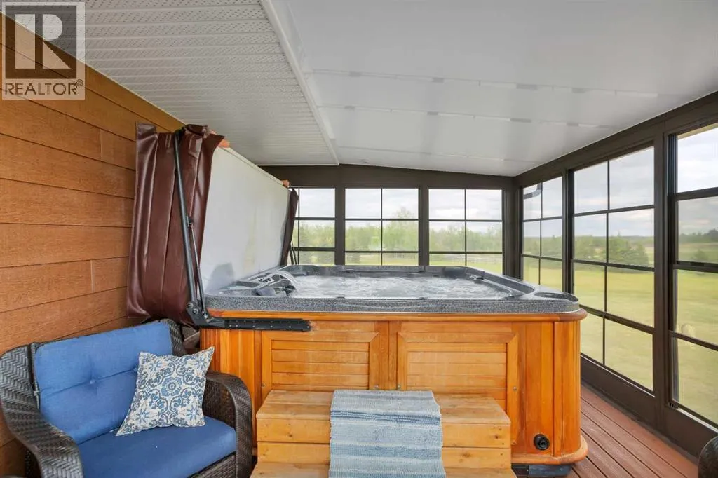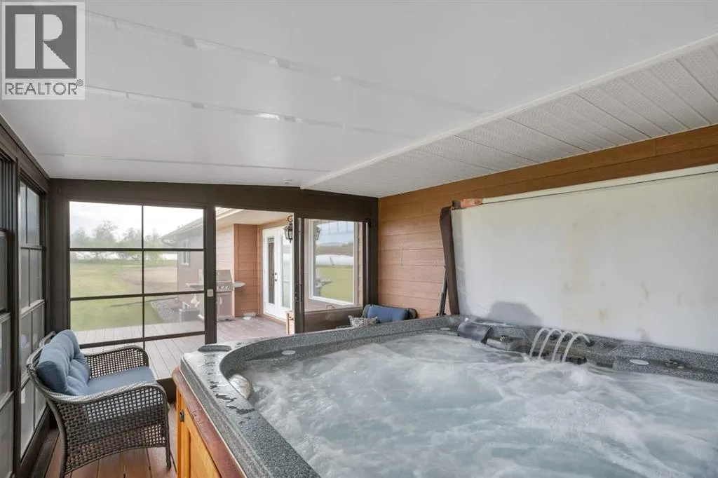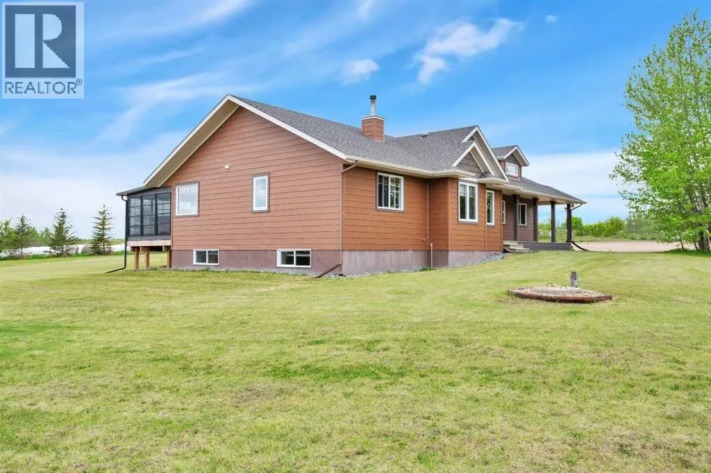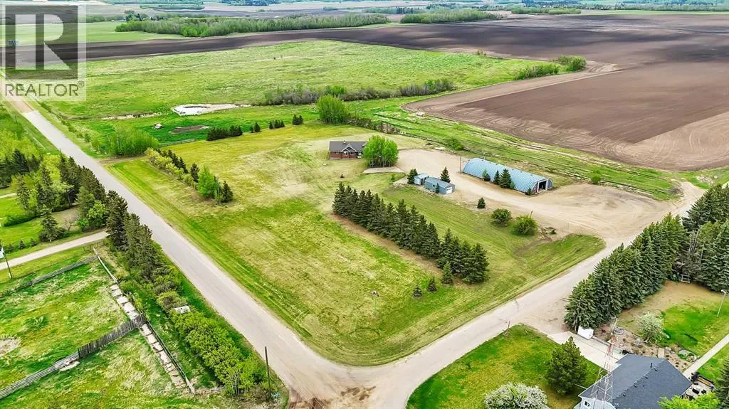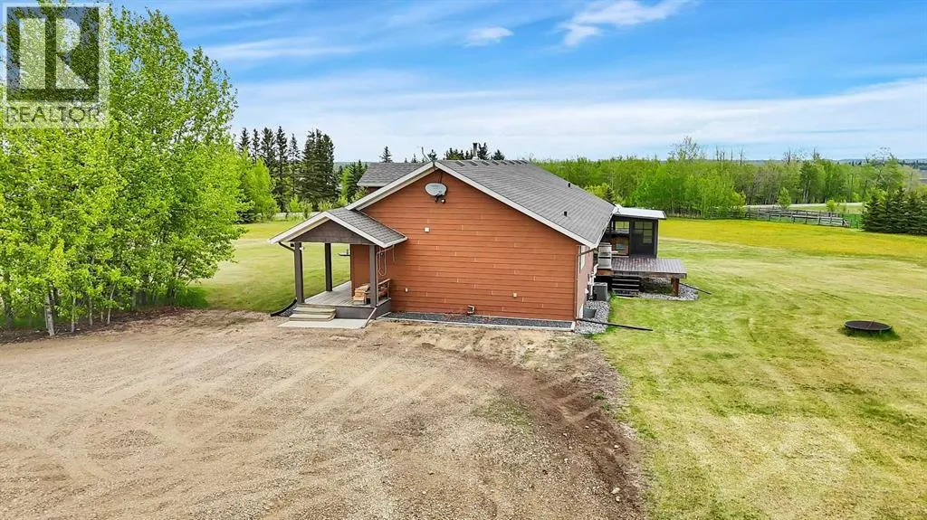 Welcome to your personal slice of peace and quiet with open spaces that will have you fall in love with this property from the moment you see it. Just 19 minutes to Lacombe, Ponoka or Rimbey and 10 minutes to Meridian Beach, this custom built bungalow is located on 5.93 acres. The roof lines, layout, quality of materials and craftsmanship are second to none. Designed with your family in mind, it combines functionality and elegance with a touch of simplicity. With more than 3758 sq ft of living space including a spectacular sunroom complete with hot tub, a massive 40 x 100 heated shop, open concept main floor and a design you wonât find anywhere else this home is everything you're looking for and more. The building materials include Canexcel board composite siding and Trex decking. Open your front door and escape from the real world while you bask in the sun on your west facing verandah. A practical foyer which is tastefully done for laundry leads into the kitchen featuring custom maple cabinets and inviting breakfast bar. The large living room with soaring ceilings is complimented by a wood stove to warm you on the chilly evenings. Off the living room is the large primary bedroom complete with a five piece ensuite and jacuzzi tub to relax and watch nature out the window plus a large walk in closet. The living room seamlessly flows into the dining room. Off the dining room are sliding doors to your composite deck and sunroom with 8 man 2018 Arctic spa hot tub where youâll sit and enjoy fresh air and sunshine with unmatched views. The kitchen features under-counter lighting, large island, walk in pantry and did we mention soft close drawers and cupboards. Enjoy sunsets or watch the kids from every room. Off the kitchen there are two spacious bedrooms one currently being used as an office and a 3 piece bath. There is a plug off the verandah for your RV as well. The stairs lead down to a bonus room, large enough for a pool table and/or games and a gorgeous barn door which open to tons of storage and boasts infloor heat. Down the hall is the two tiered theatre room plus two more bedrooms and the furnace/utility room. Now to the outdoors-every guys dream shop 40 x 100 and insulated and heated! Imagine what you could do with that! A single car garage with radiant heating and a large shed with cement floor. Tons of room for gardens or if youâd like to build a fence bring the horses or chickens. Looking for classy country living? This is 'THE ONE'! (id:27476)