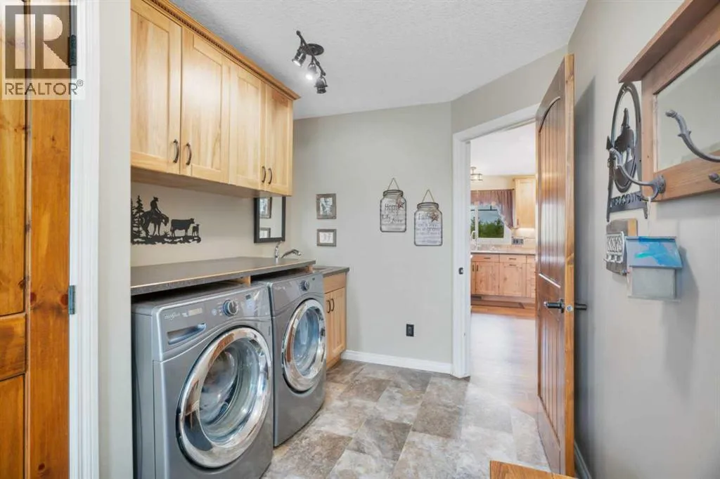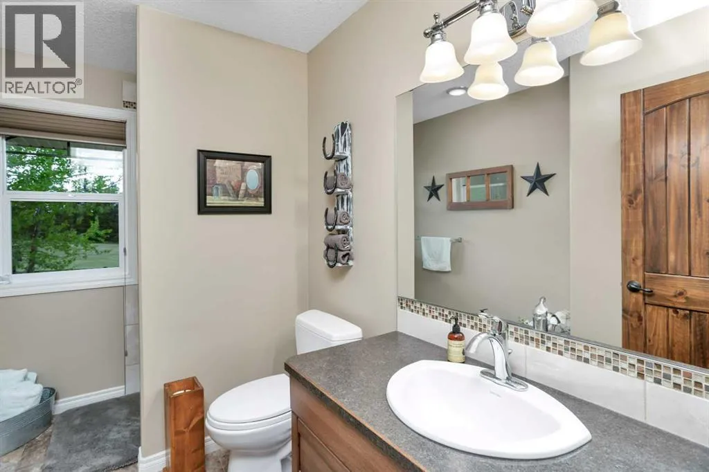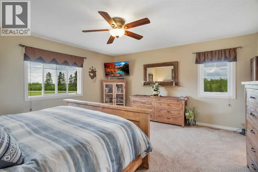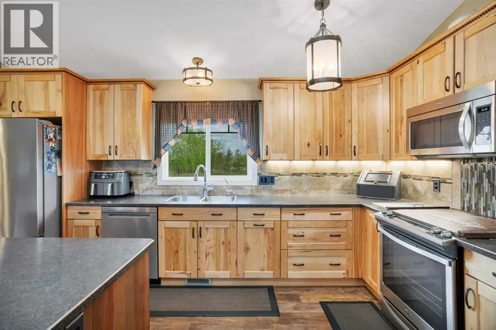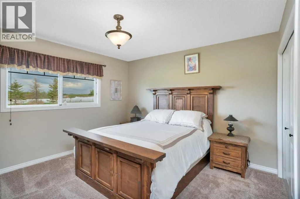 Welcome to your personal slice of peace and quiet with open spaces that will have you fall in love with this property from the moment you see it. Just 19 minutes to Lacombe, Ponoka or Rimbey and 10 minutes to Meridian Beach, this custom built bungalow is located on 5.93 acres. The roof lines, layout, quality of materials and craftsmanship are second to none. Designed with your family in mind, it combines functionality and elegance with a touch of simplicity. With more than 3758 sq ft of living space including a spectacular sunroom complete with hot tub, a massive 40 x 100 heated shop, open concept main floor and a design you wonât find anywhere else this home is everything you're looking for and more. The building materials include Canexcel board composite siding and Trex decking. Open your front door and escape from the real world while you bask in the sun on your west facing verandah. A practical foyer which is tastefully done for laundry leads into the kitchen featuring custom maple cabinets and inviting breakfast bar. The large living room with soaring ceilings is complimented by a wood stove to warm you on the chilly evenings. Off the living room is the large primary bedroom complete with a five piece ensuite and jacuzzi tub to relax and watch nature out the window plus a large walk in closet. The living room seamlessly flows into the dining room. Off the dining room are sliding doors to your composite deck and sunroom with 8 man 2018 Arctic spa hot tub where youâll sit and enjoy fresh air and sunshine with unmatched views. The kitchen features under-counter lighting, large island, walk in pantry and did we mention soft close drawers and cupboards. Enjoy sunsets or watch the kids from every room. Off the kitchen there are two spacious bedrooms one currently being used as an office and a 3 piece bath. There is a plug off the verandah for your RV as well. The stairs lead down to a bonus room, large enough for a pool table and/or games and a gorgeous barn door which open to tons of storage and boasts infloor heat. Down the hall is the two tiered theatre room plus two more bedrooms and the furnace/utility room. Now to the outdoors-every guys dream shop 40 x 100 and insulated and heated! Imagine what you could do with that! A single car garage with radiant heating and a large shed with cement floor. Tons of room for gardens or if youâd like to build a fence bring the horses or chickens. Looking for classy country living? This is 'THE ONE'! (id:27476)
