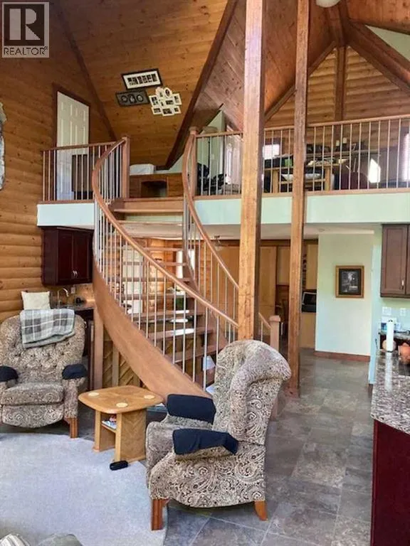 For more information, please click the "More Information" button. Welcome to your private sanctuary! This exceptional 2013-built Timberblock home is nestled on a beautifully landscaped 0.64-acre treed lot in a quiet lake subdivision, offering the perfect blend of modern comfort and rustic charm. With thoughtfully designed living space, this open loft-style home features a bright and spacious main living area with a wood-burning fireplace, triple-pane windows, central air conditioning, and even a steam shower for year-round relaxation. The upgraded kitchen is a dream for entertainers, complete with a full-size fridge and freezer, wet bar, second sink, and beverage fridge. A dedicated office space with a Murphy bed adds versatility for remote work or guest stays, while the all-in-one washer/dryer maximizes convenience. The heated double-car garage includes a workbench and a dedicated dry storage roomâperfect for pantry items or preserves. Above the garage, a large bonus room offers endless possibilities as a hobby area, or recreational space. Step outside to enjoy the beautiful outdoor living features, including a stamped concrete patio with furniture and umbrella, a cozy deck for morning coffee, an 8-person hot tub tucked away for total privacy, and even an outdoor shower. The electric gate at the top of the driveway can be opened from inside the home, and thereâs a charming outhouse for outdoor gatherings. Additional outbuildings include two sheds (one powered with a full-size fridge and shelving), a wood/garden shed, and a cozy bunkhouse nestled in the treesâperfect for kids or guests. The landscaped grounds also feature a garden, greenhouse, fruit trees, flower beds, and a large fire pit area for unforgettable evenings under the stars. This home comes with incredible extras: Best of all, residents enjoy shared private access to the lakeâideal for kayaking, watching sunsets, or simply enjoying nature. Accessible year-round via a well-maintained hard-surfaced road , this is more than just a homeâitâs a lifestyle of peace, privacy, and connection to nature. Donât miss this rare opportunity to own a true retreat. (id:27476)