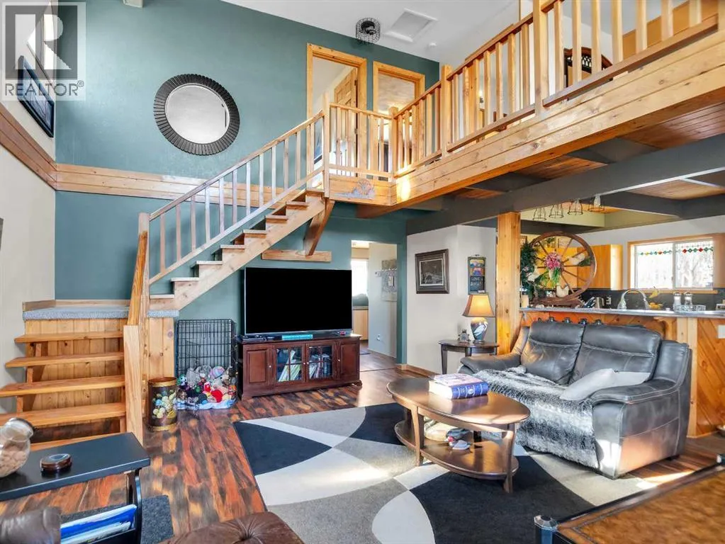 Wake up to beautiful views overlooking Gull Lake in this warm and inviting cottage-style home, tucked among the trees with the water just out front. This well-cared-for property features 3 bedrooms (2 up, 1 down), with the open loft overlooking the living room currently used as a cozy primary space. High ceilings, natural wood accents, and thoughtful improvements create a comfortable, relaxed lake home feel.The kitchen and dining area flow easily for everyday living, and the main bathroom showcases a classic clawfoot tub that perfectly suits the cottage charm. Step outside to enjoy the peaceful setting, lake views from the deck, and the beauty of the surrounding trees.The oversized heated garage includes a bonus bunkroom or games room above with a newer furnace. Three sheds provide excellent storage, including a workshop and a larger shed with power, lighting, and loft space. Close to the beach, boat launch, and golf course, and only minutes to Rimbey for amenities. (id:27476)