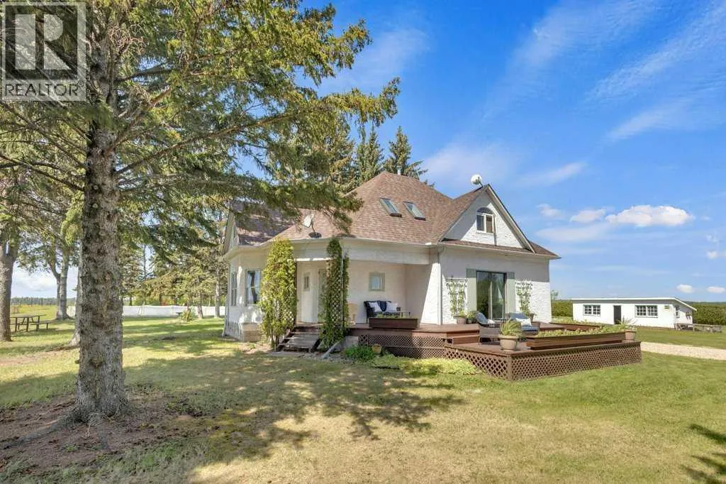 Welcome to a rare gem nestled just 2 minutes north of Rimbey â a beautifully preserved and thoughtfully updated 1909 farmhouse sitting on an expansive 19.56-acre property that effortlessly blends timeless charm with modern comfort. Step into a home where history meets contemporary living. This charming farmhouse features three spacious bedrooms upstairs and two and a half bathrooms, providing plenty of comfort and convenience for the whole family. The kitchen has been tastefully updated with stylish finishes and includes, stunning epoxy countertops, and brand-new appliances installed in 2024. Warmth and durability are ensured with the new flooring added in 2022, while in-floor heating in the basement keeps the home cozy during colder months. The home has been extensively updated throughout the years, with most recently a new hot water tank installed in April 2025, complemented by a second tank added in 2020. Throughout the home, you'll find abundant storage space, making it as practical as it is inviting. Outdoor enthusiasts and hobby farm lovers will find everything they need on this serene rural property. A large garden offers the perfect space to grow your own fresh produce, while a charming chicken coop provides daily farm-fresh eggs. The original hip roof barn stands as a proud and rare feature, full of character and still structurally sound. Adding to its uniqueness, the barn loft has been transformed into a private pickleball courtâideal for year-round fitness and fun. Nature lovers will appreciate the personal orchard filled with fruit-bearing trees and the romantic âLovers Lane,â a peaceful, tree-lined path that invites evening strolls toward breathtaking sunsets. After a day well spent, unwind in your private hot tub under a canopy of starsâthe perfect way to relax and enjoy the tranquility of this exceptional property.Whether you're looking for a peaceful family homestead, a hobby farm, or a one-of-a-kind rural retreat, this property delivers charm, fu nctionality, and unforgettable moments. This is more than a home â itâs a lifestyle. Located just minutes from Rimbey â the convenience of town, with the tranquility of country living. Come and step into a storybook setting ready for your next chapter. (id:27476)