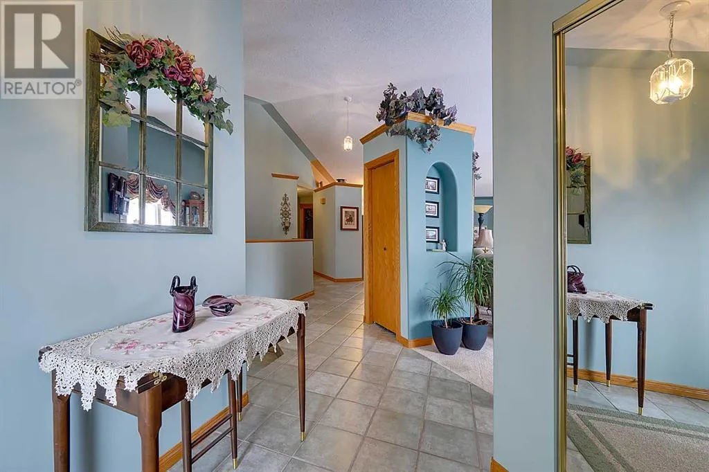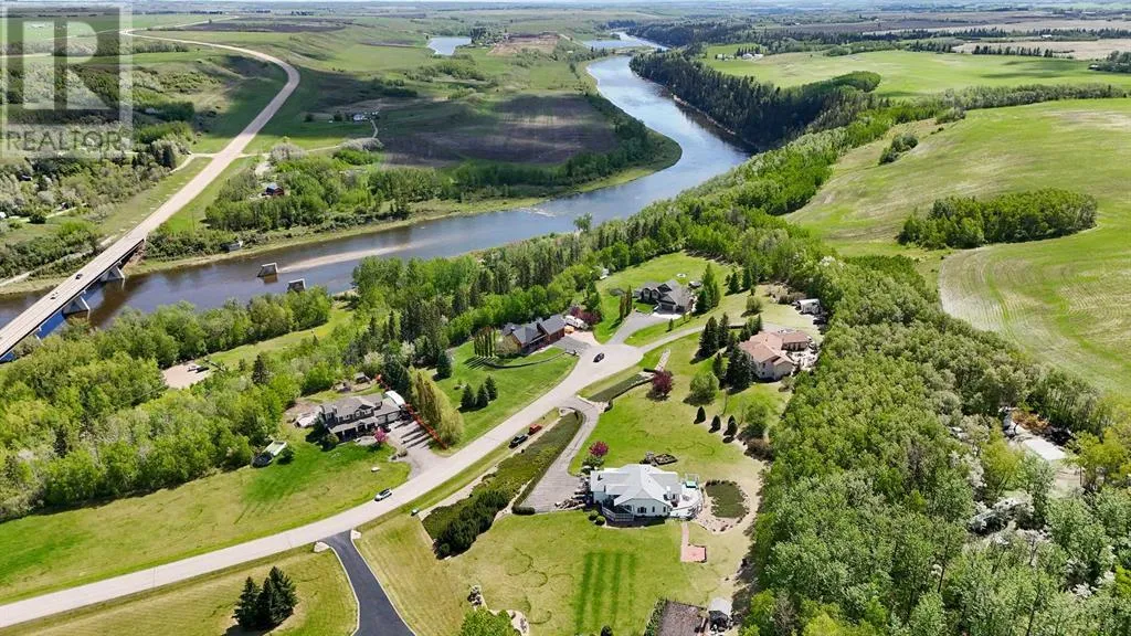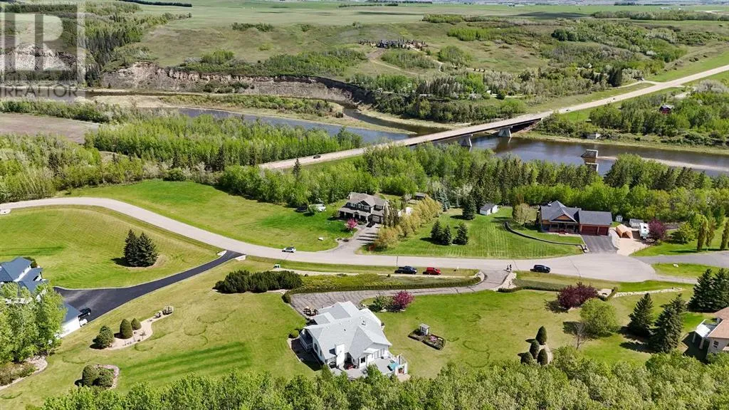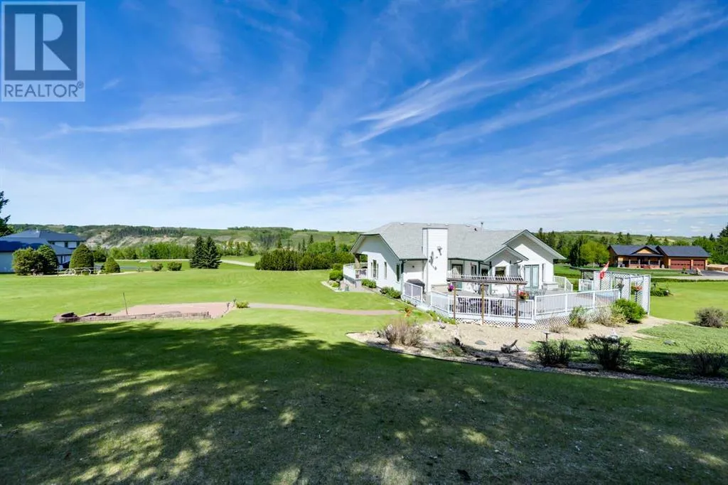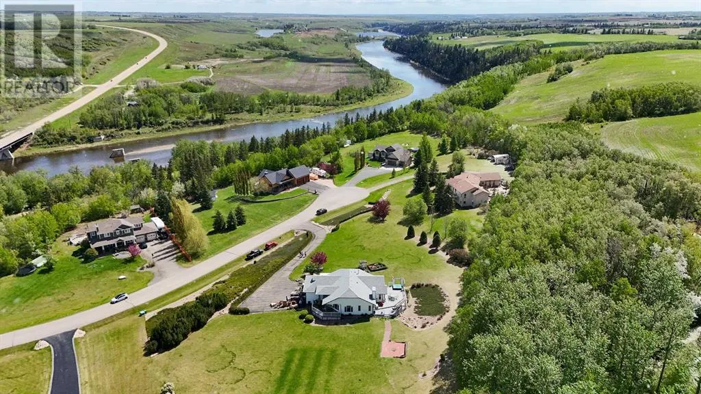 Stunning Acreage with Breathtaking River Valley Views â Just 7 Minutes from Red Deer!If you're looking for an acreage with a spectacular view of the Red Deer River Valley, this is it! This fully developed 1,600 sq. ft. bungalow offers the perfect blend of comfort, elegance, and space.Step onto the charming front veranda and take in the breathtaking scenery, or relax on the expansive two-tiered, treated deckâperfect for enjoying the peaceful surroundings. Inside, the vaulted ceilings in the living and dining rooms create an airy, open feel, while the kitchen boasts beautiful granite countertops and ample workspace.Convenience is key with main floor laundry, a spacious primary suite featuring a 3-piece ensuite, and a second generously sized bedroom. The warmth of in-floor heating runs throughout the entire home, ensuring even, cozy temperatures year-round.The fully developed basement is an entertainerâs dream, offering a massive family/games room with a fireplaceâideal for gatherings. You'll also find an additional large bedroom and a 3-piece bath, providing plenty of space for guests or family members.This incredible acreage combines tranquility, luxury, and convenienceâall just minutes from the city. Donât miss your chance to own this beautiful property! (id:27476)