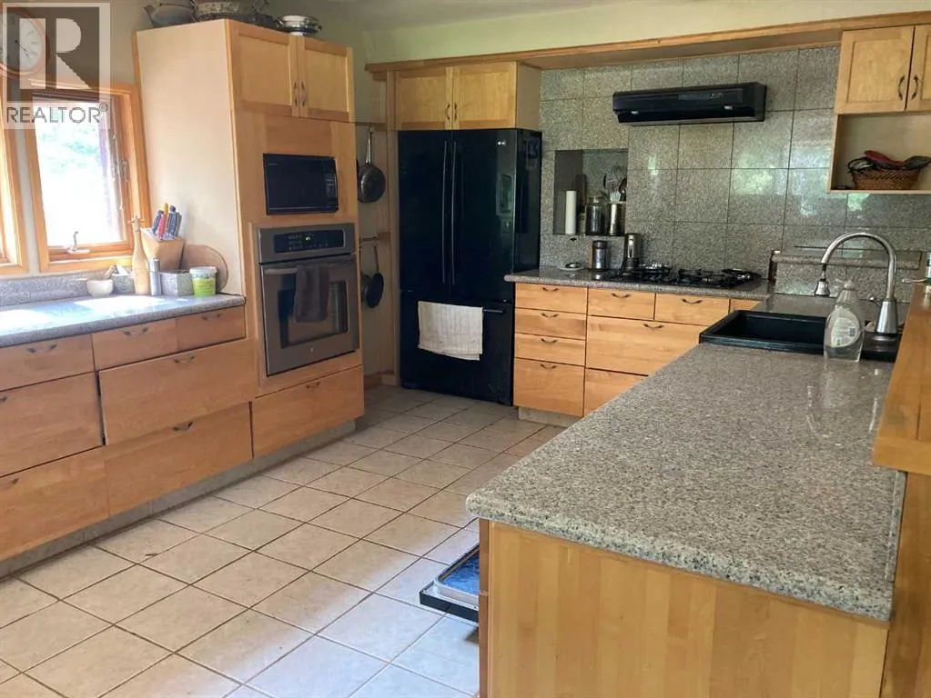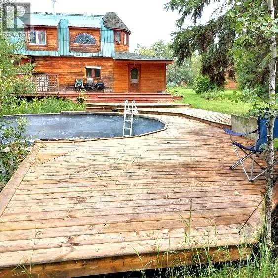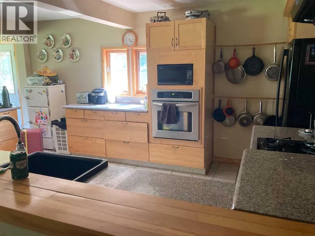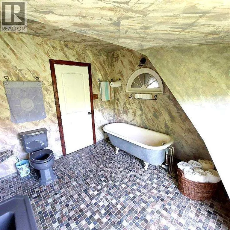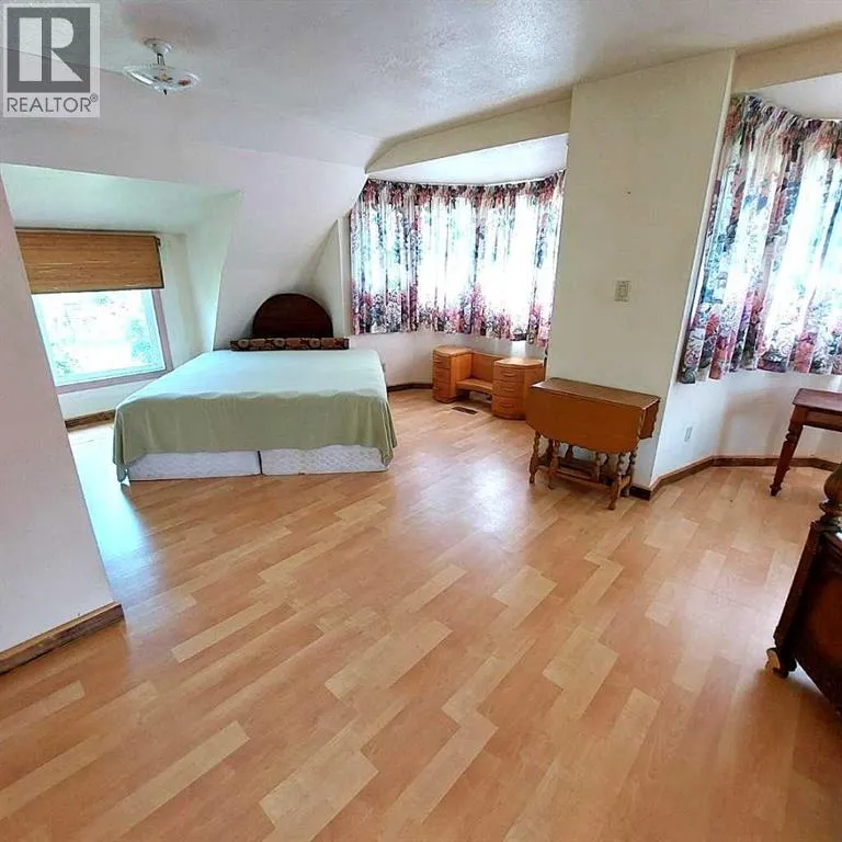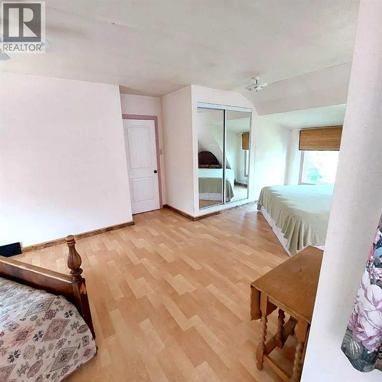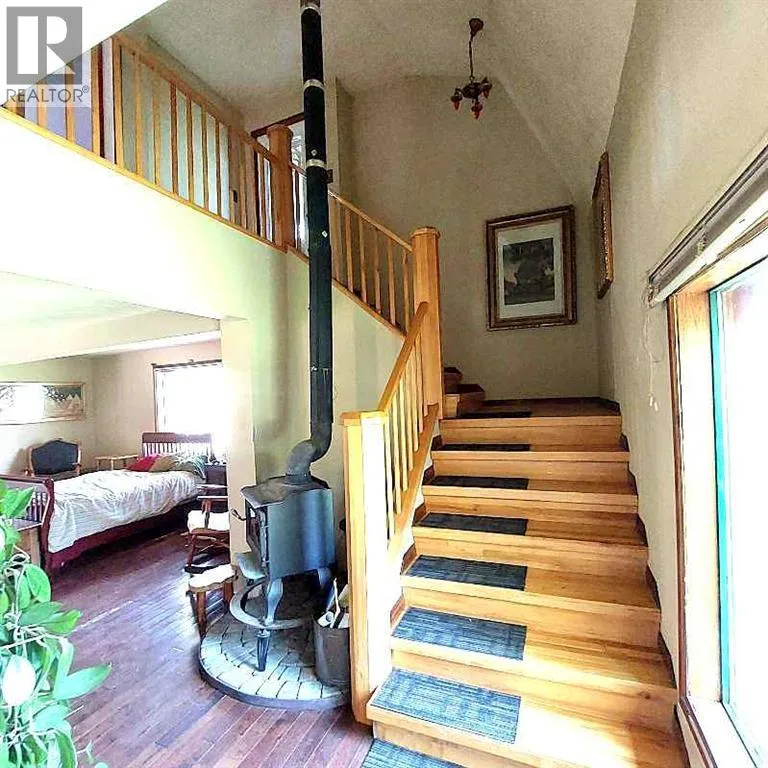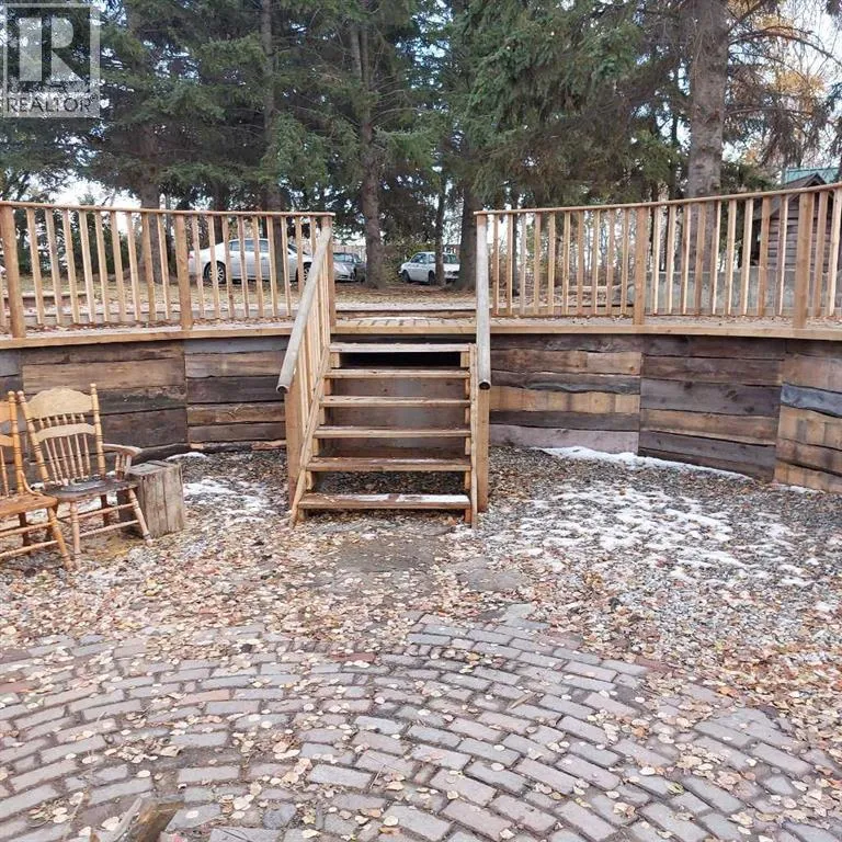 THIS SPACIOUS HOME HAS HAD NUMEROUS UPGRADES THROUGHOUT THE YEARS. This VERY UNIQUE HOME and outbuildings sit on 6.13 acres east of Bowden, just 15 minutes from both Innisfail and Olds. The spacious home offers a large kitchen with granite countertops, built-in oven, gas stove top, newer top line dishwasher, moveable island, and an adjoining sunroom with gas stove fireplace. There's a main floor laundry combined with a large pantry with lots of storage. The living room has a wood stove, and features a custom built wall unit. and has an adjoining wood room. There is a 3 piece bath with glass brick shower to complete the main floor. The second floor currently boasts 2 bedrooms, one large master that sits across the front of the home and includes the two turrets, and another bedroom that was once separated into two, and could be again. The second floor 3 piece bath has a clawfoot tub, large window and beautiful tile floor. The concrete walk-out basement is unfinished and could be used as another flex room or den. The basement utility room offers plenty of storage. The very large deck was built around a former above ground pool which has now been converted to a large outdoor entertainment area with a firepit.The landscaped yard is fully surrounded by trees and has a 24x35 foot shop/garage with brick floor and wood stove. It is plumbed for a gas heater as well. The very unique outbuildings include a church, a metal quonset that can hold 4 vehicles or more, an actual usable treehouse, AND possibly another cabin and a rough wood barn, if not removed before possession date. Plus assorted storage sheds.A few of these buildings are from the AMC series Wynonna Earp.The circular driveway makes access easy. (id:27476)